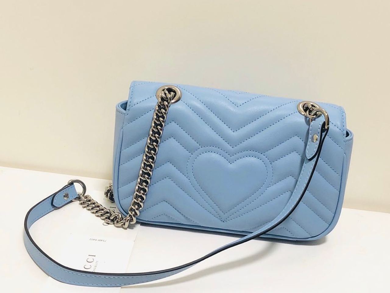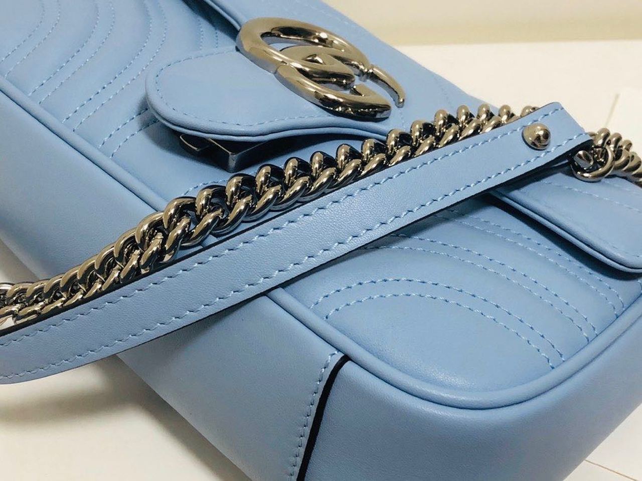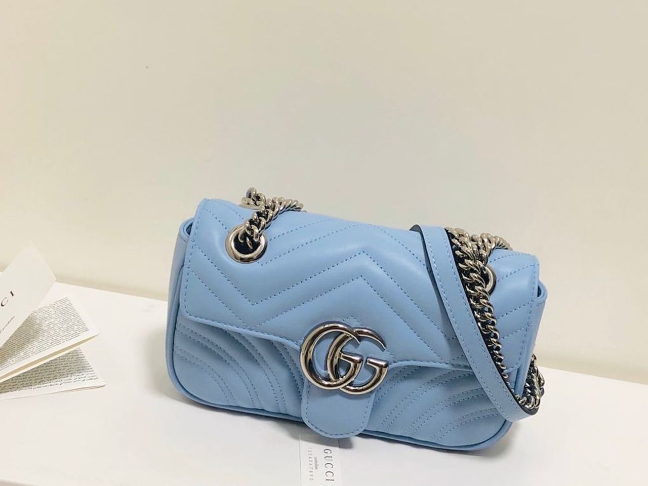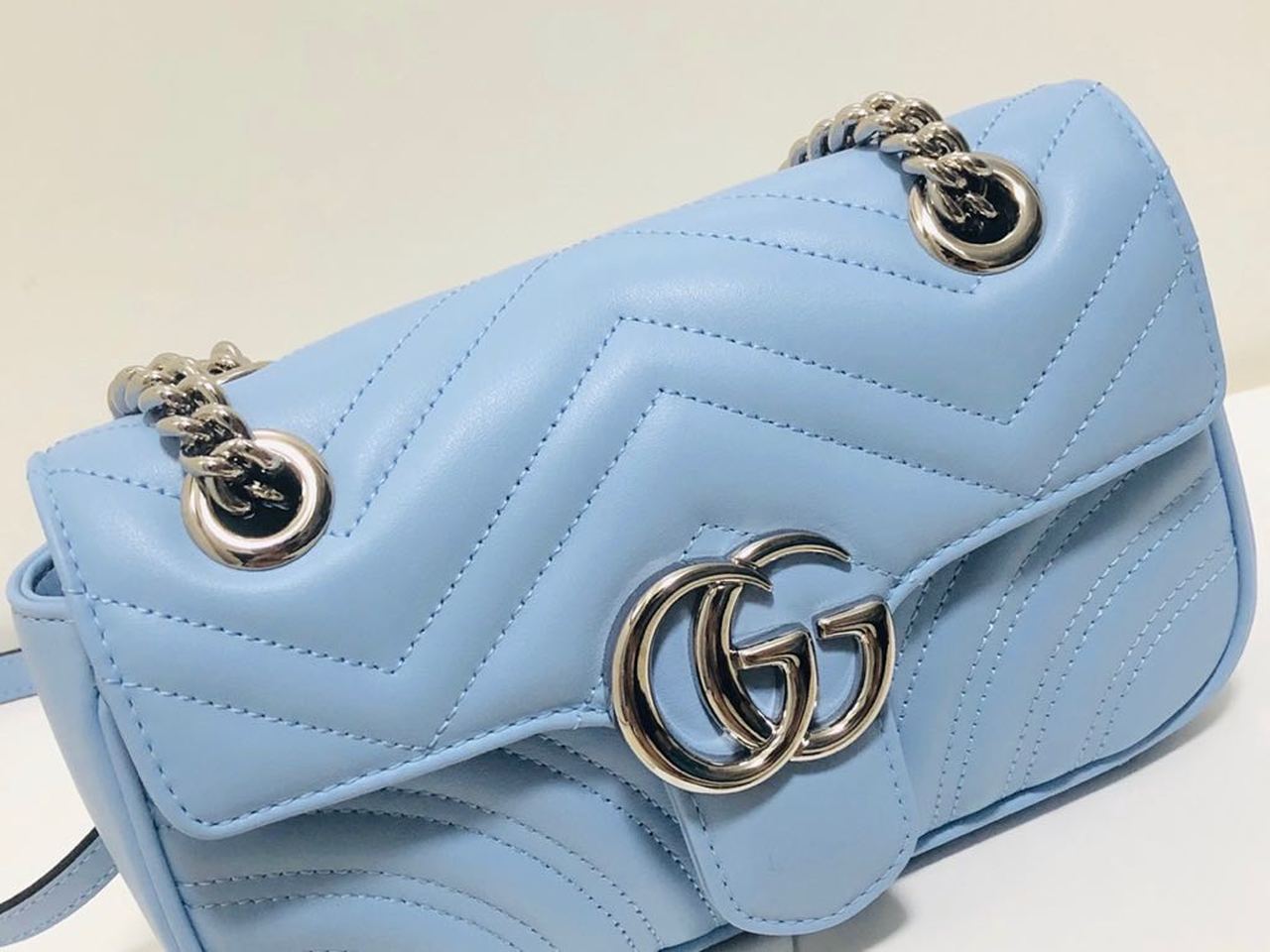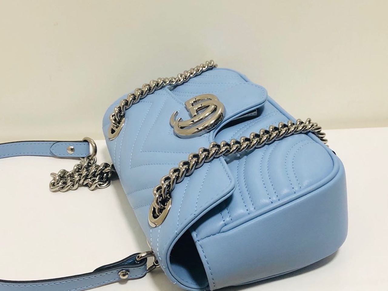 gg Marmont Matelassé Mini Bag Blue Sky Matelassé Chevron For Women 8.5in/22cm gg