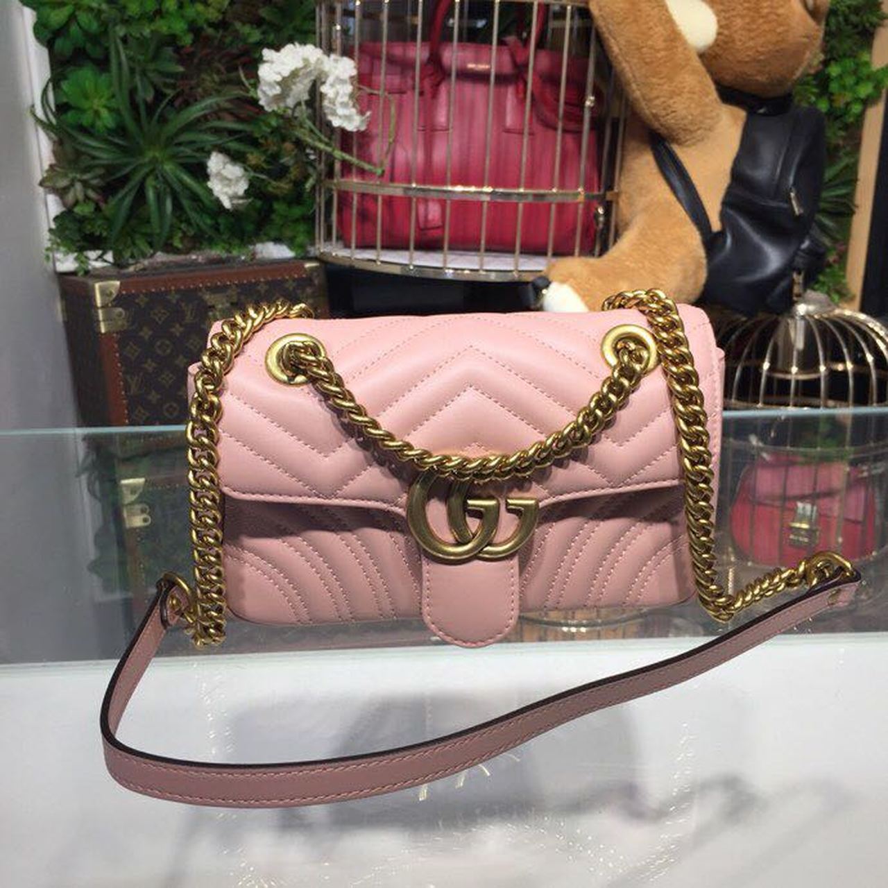gg Marmont Matelassé Mini Bag Dusty Pink Matelassé Chevron For Women 8.5in/22cm gg 446744