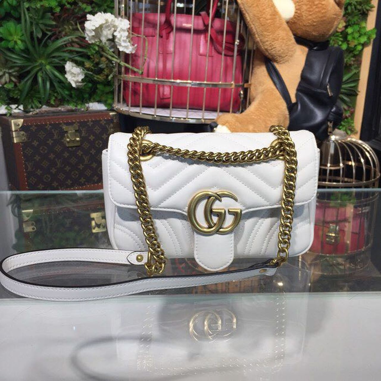 gg Marmont Matelassé Mini Bag White Matelassé Chevron For Women 8.5in/22cm gg 446744 DTDIT 9022