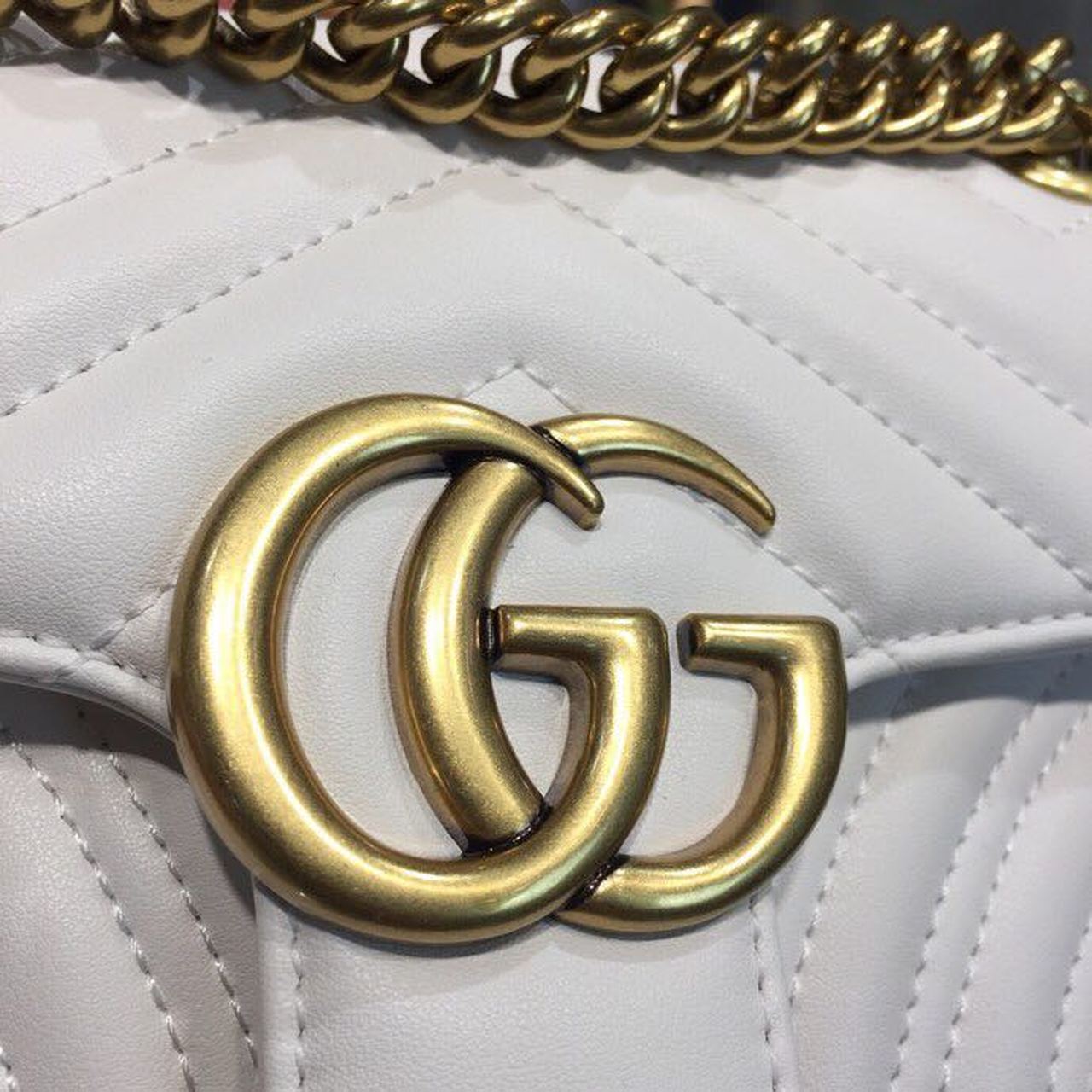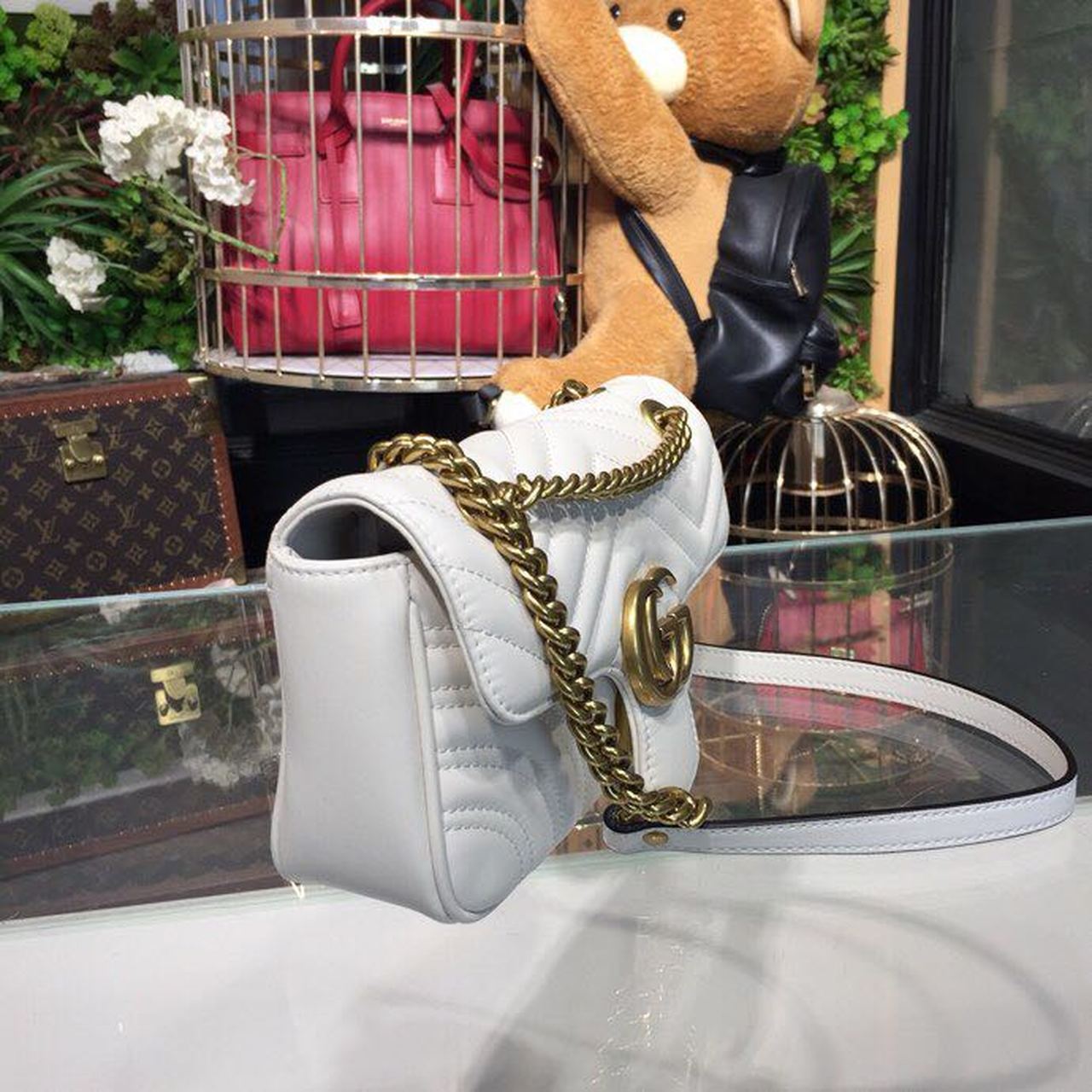 GG Marmont Matelassé Mini Bag White Matelassé Chevron For Women 8.5in/22cm GG 446744 DTDIT 9022