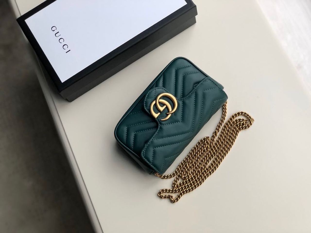 gg Marmont Matelassé Super Mini Bag Green Matelassé Chevron For Women 6.2in/16.5cm gg