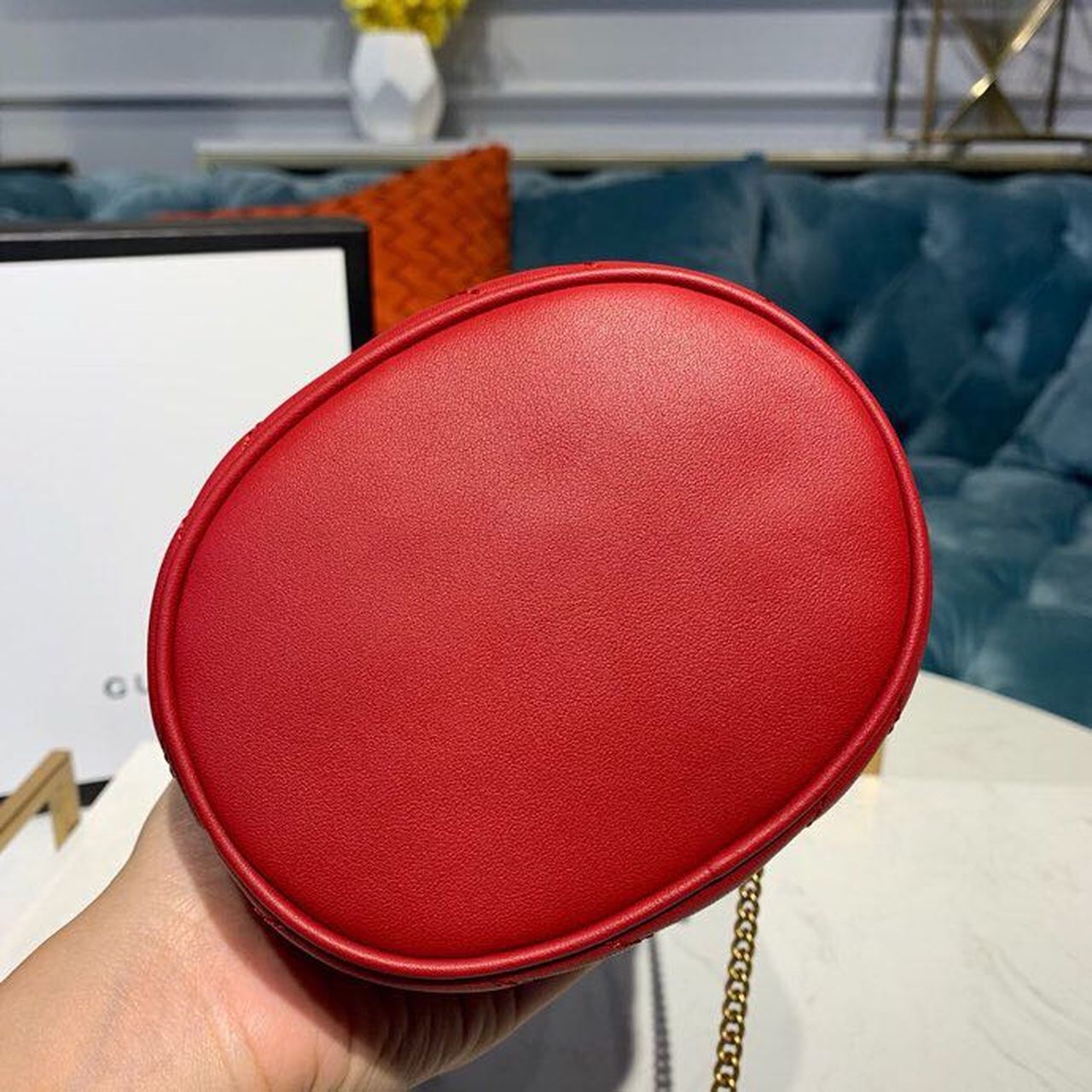 gg Marmont Mini Bucket Bag Hibiscus Red Matelassé Chevron For Women 6in/13cm gg 575163