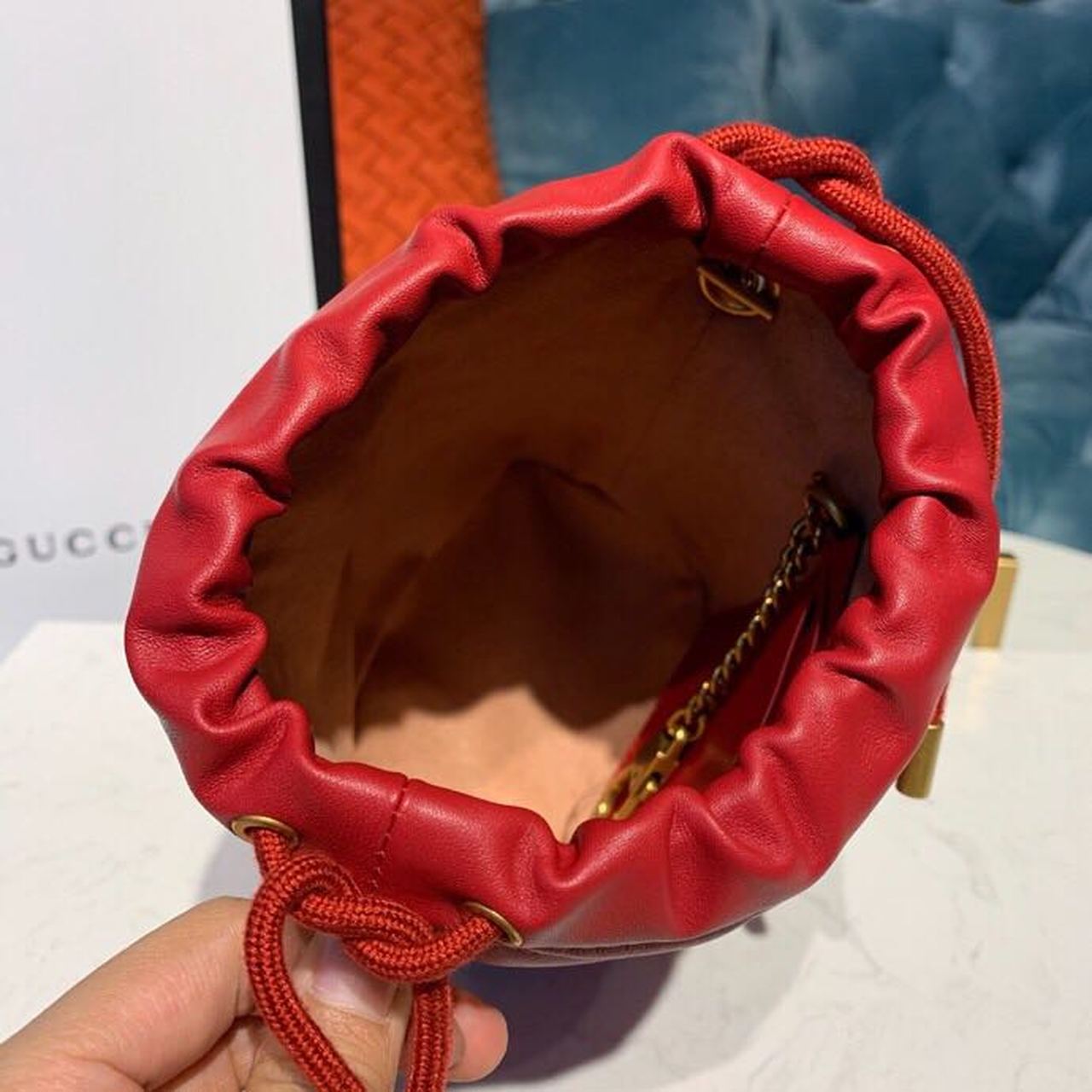 GG Marmont Mini Bucket Bag Hibiscus Red Matelassé Chevron For Women 6in/13cm GG 575163