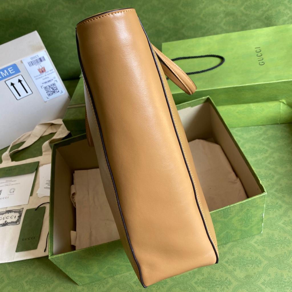 GG Medium Tote Bag With Double G And Web Brown For Women 13.8in/35cm GG