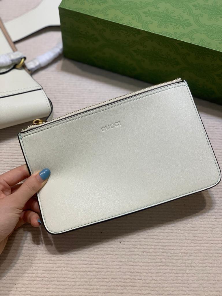 First introduced in the ’70s, the Double G decorates a softly structured leather tote bag. A favorite decade of the Creative Director, details from this time add a retro appeal throughout the Epilogue collection. Introduced in black leather, the style is enhanced by the addition of an internal pouch.