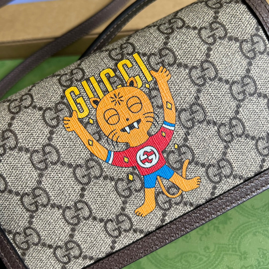gg Mini Kitten Printed Monogrammed Coated-Canvas Messenger Bag Beige And Ebony gg Supreme Canvas, An Eco-Friendly Material For Women 7.1in/18cm gg