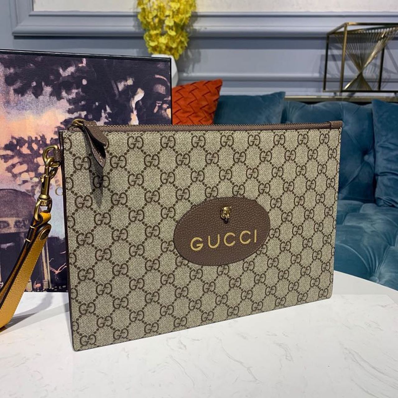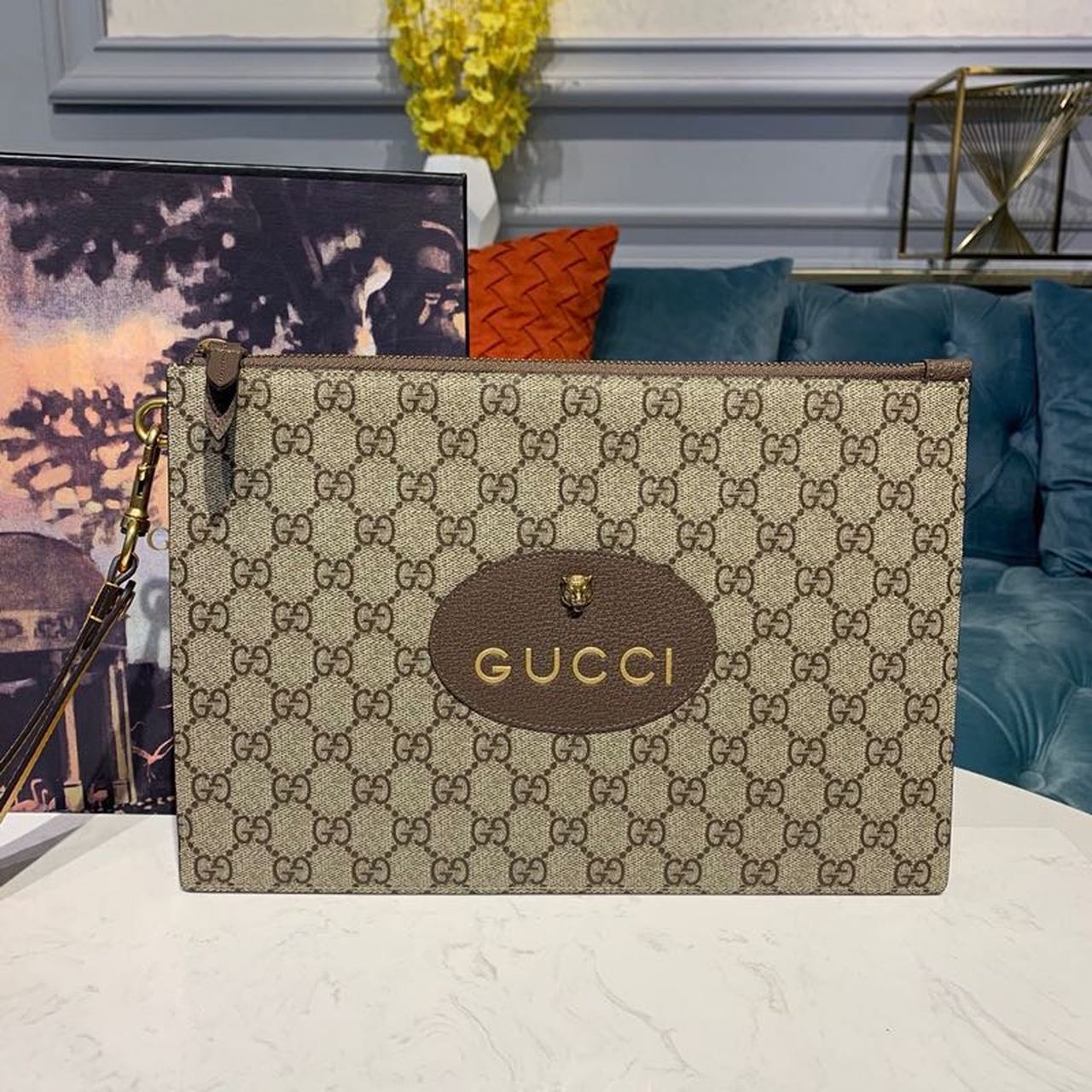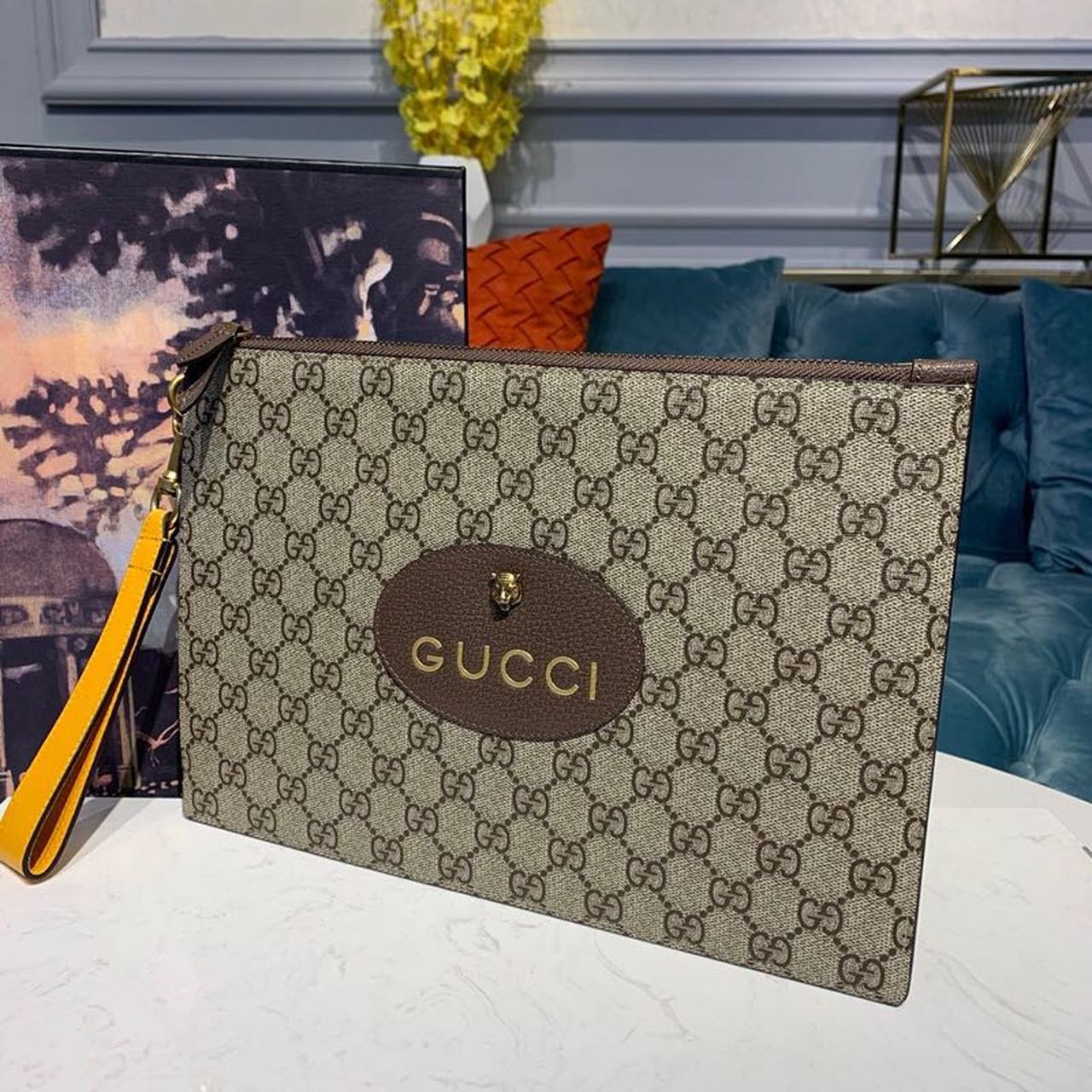 GG Neo Vintage GG Supreme Pouch Brown/Beige GG Supreme Canvas For Men 12in/30cm GG 473956 K9GOT 8861