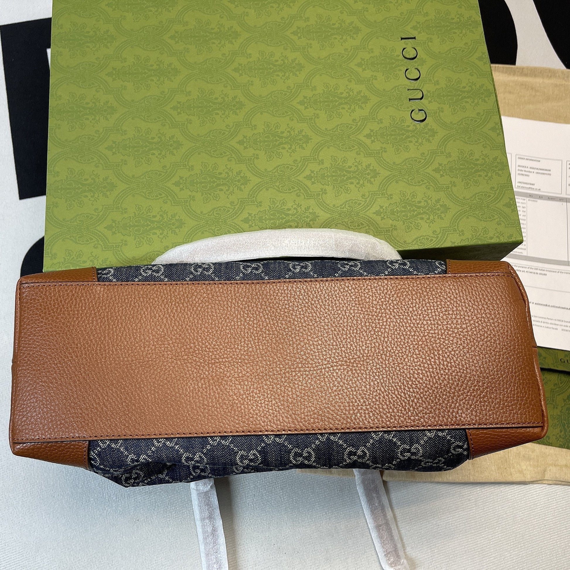 GG Ophidia GG Medium Tote Dark Blue And Ivory Eco Washed Organic GG Jacquard Denim For Women 15in/38cm GG 631685 2KQGG 8375