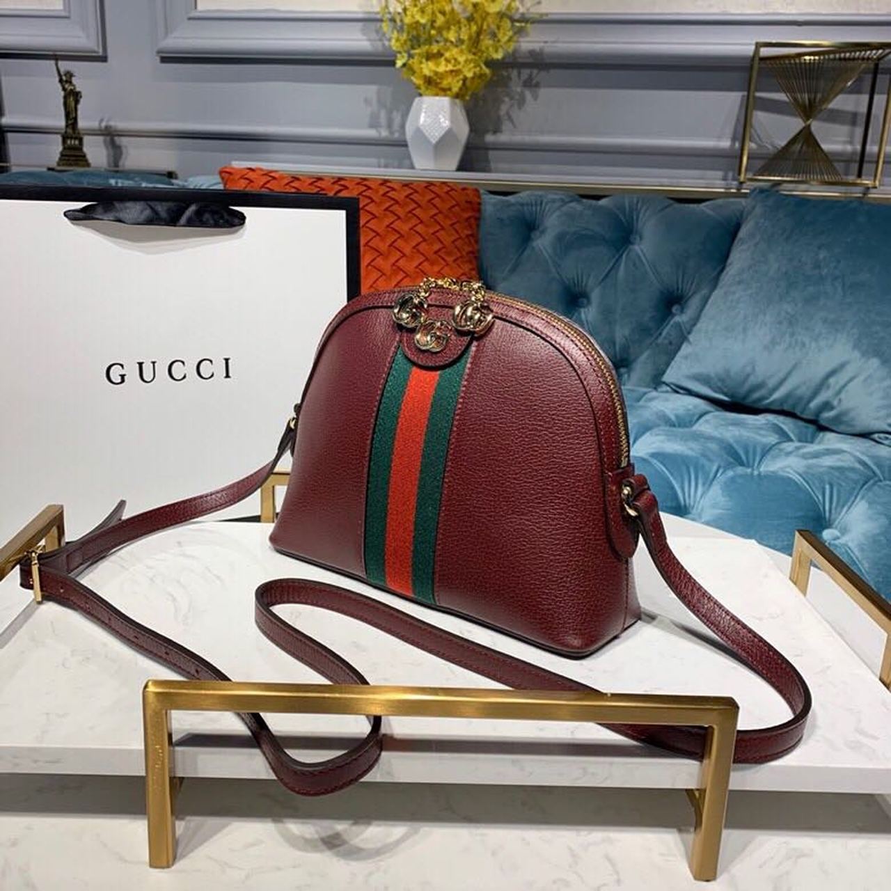 gg Ophidia gg Small Shoulder Bag Burgundy For Women 9in/24cm gg 499621