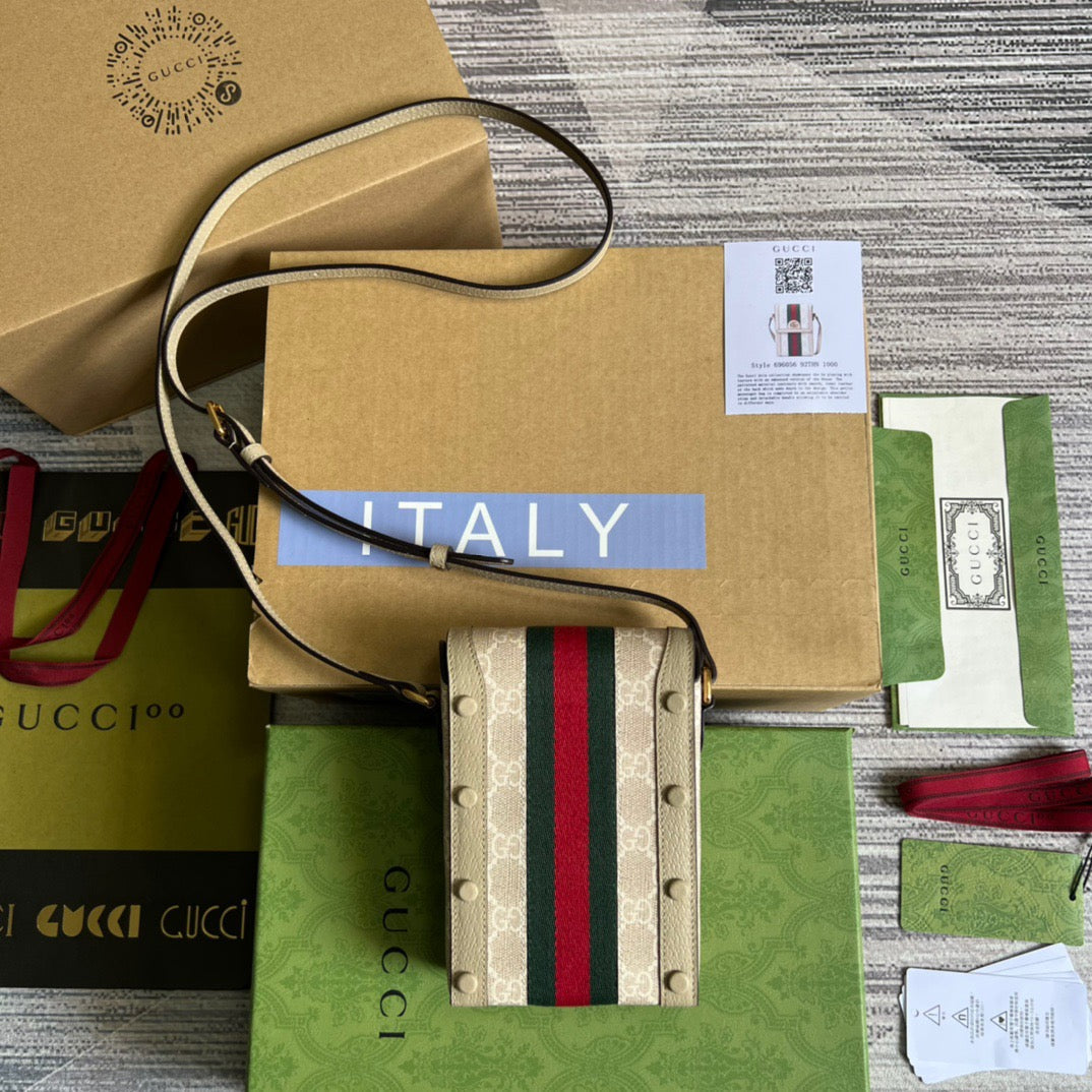 GG Ophidia Mini Bag Beige And White GG Supreme Canvas For Women 7in/17.5cm GG