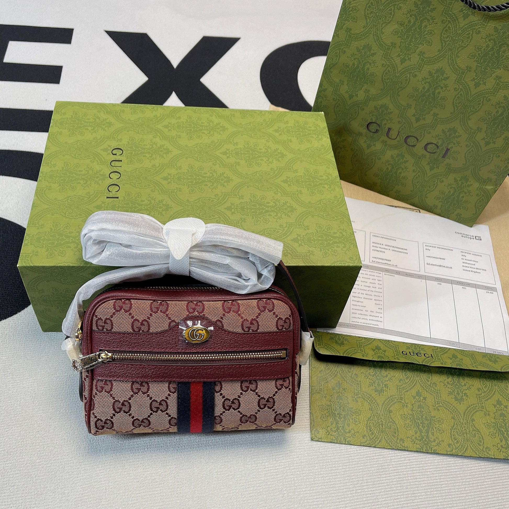 gg Ophidia Mini gg Bag Beige And Burgundy gg Supreme Canvas For Women 7in/17.5cm gg 517350-9Y9MS-9864