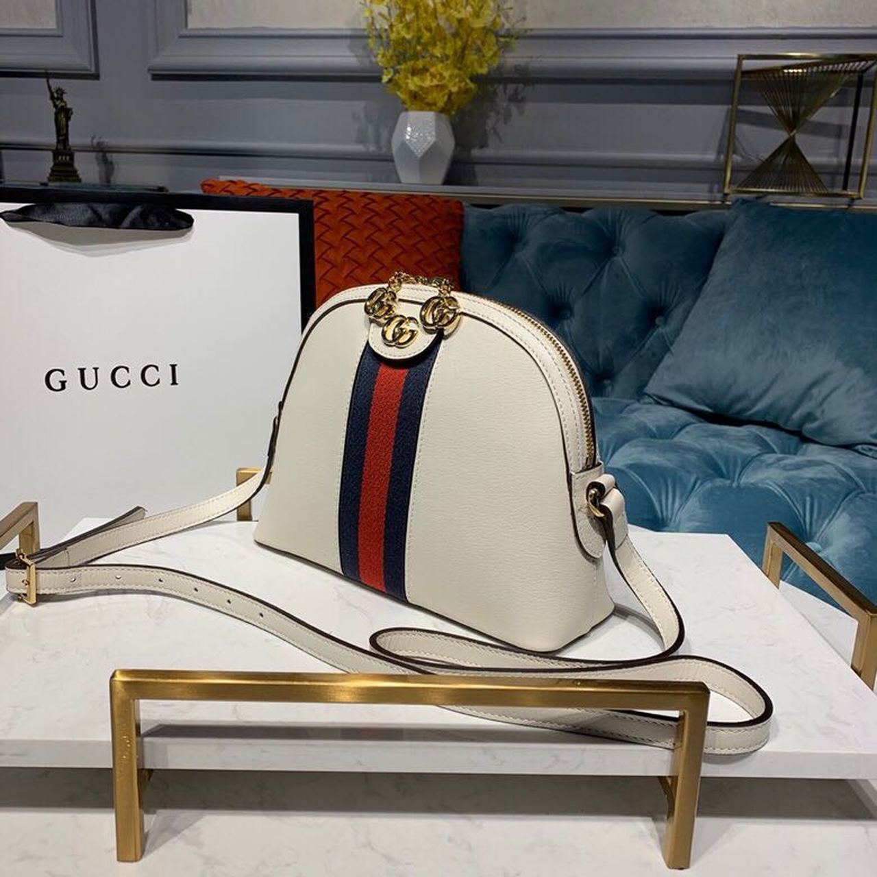 GG Ophidia Shoulder Bag White 9in/24cm