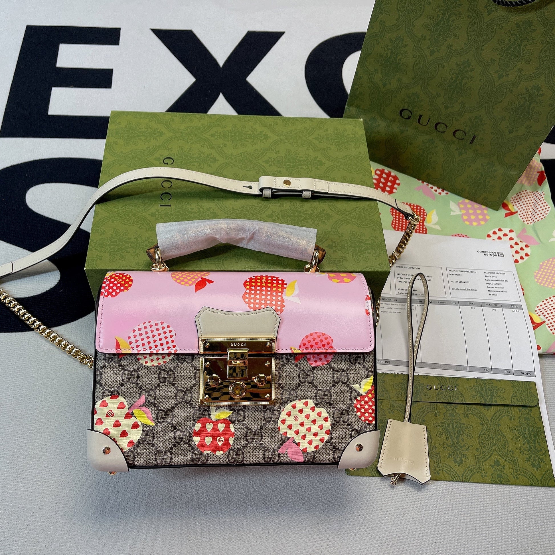 GG Padlock GG Small amboo Strawberry Shoulder Bag Beige For Women, Women’s Bags 9.5in/24cm GG