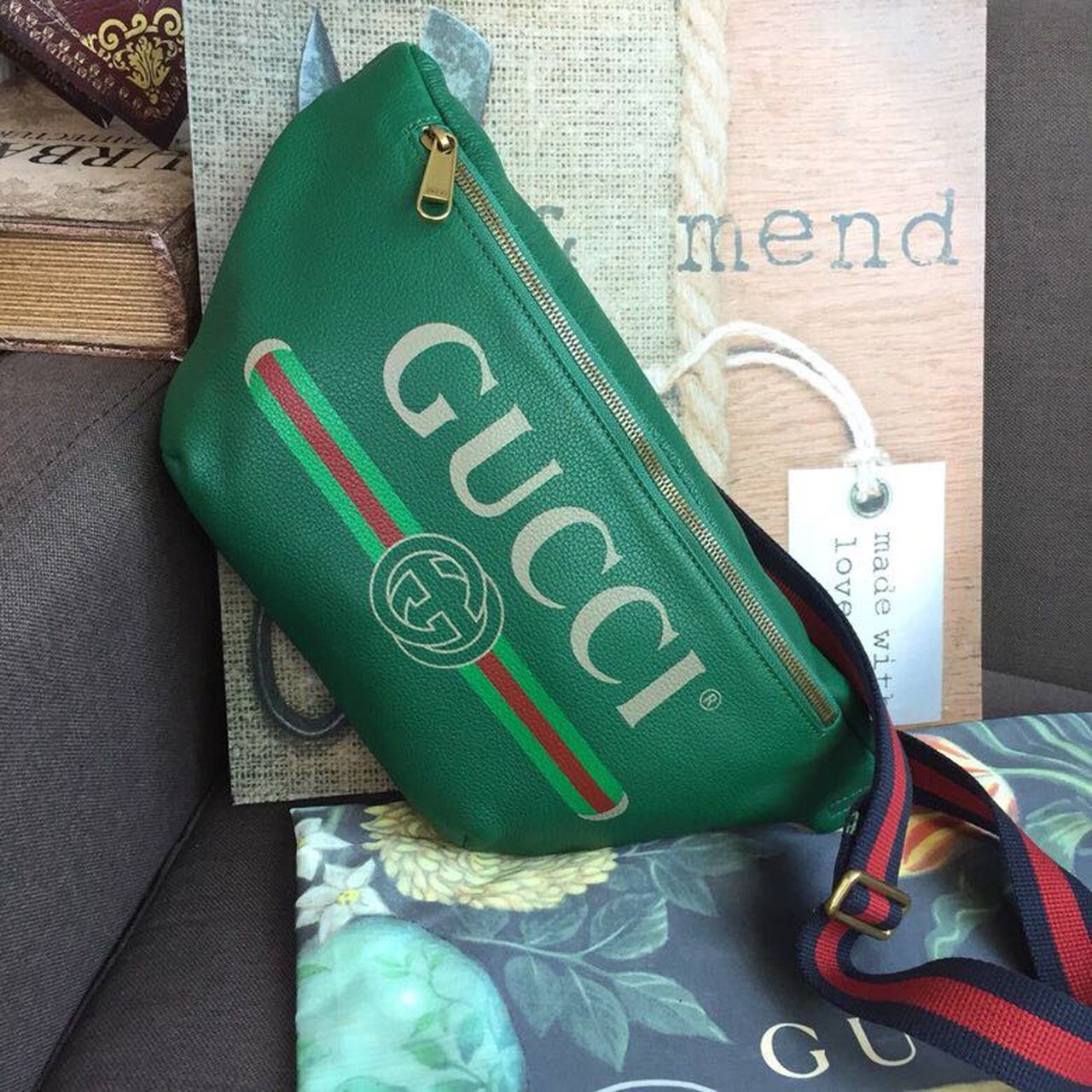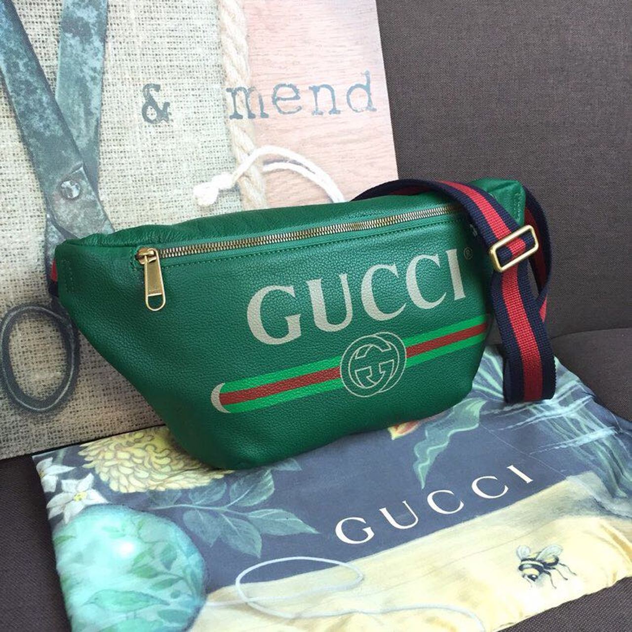 gg Print Waist Belt Bag Green For Women And Men 15in/39cm gg 530412