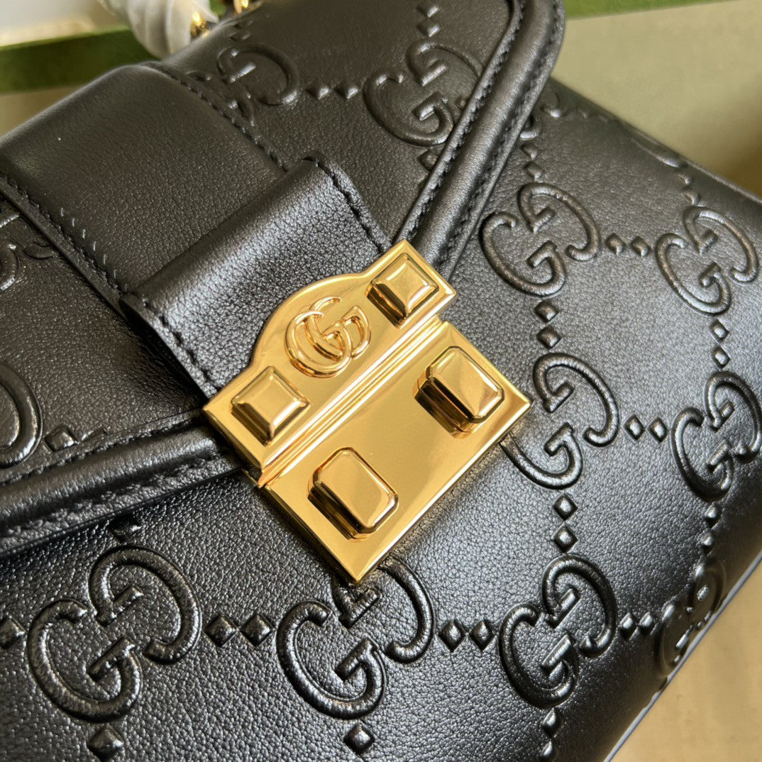GG Small GG Top Handle Bag Black Debossed For Women 11in/29cm GG 675791 UD9AG 1000