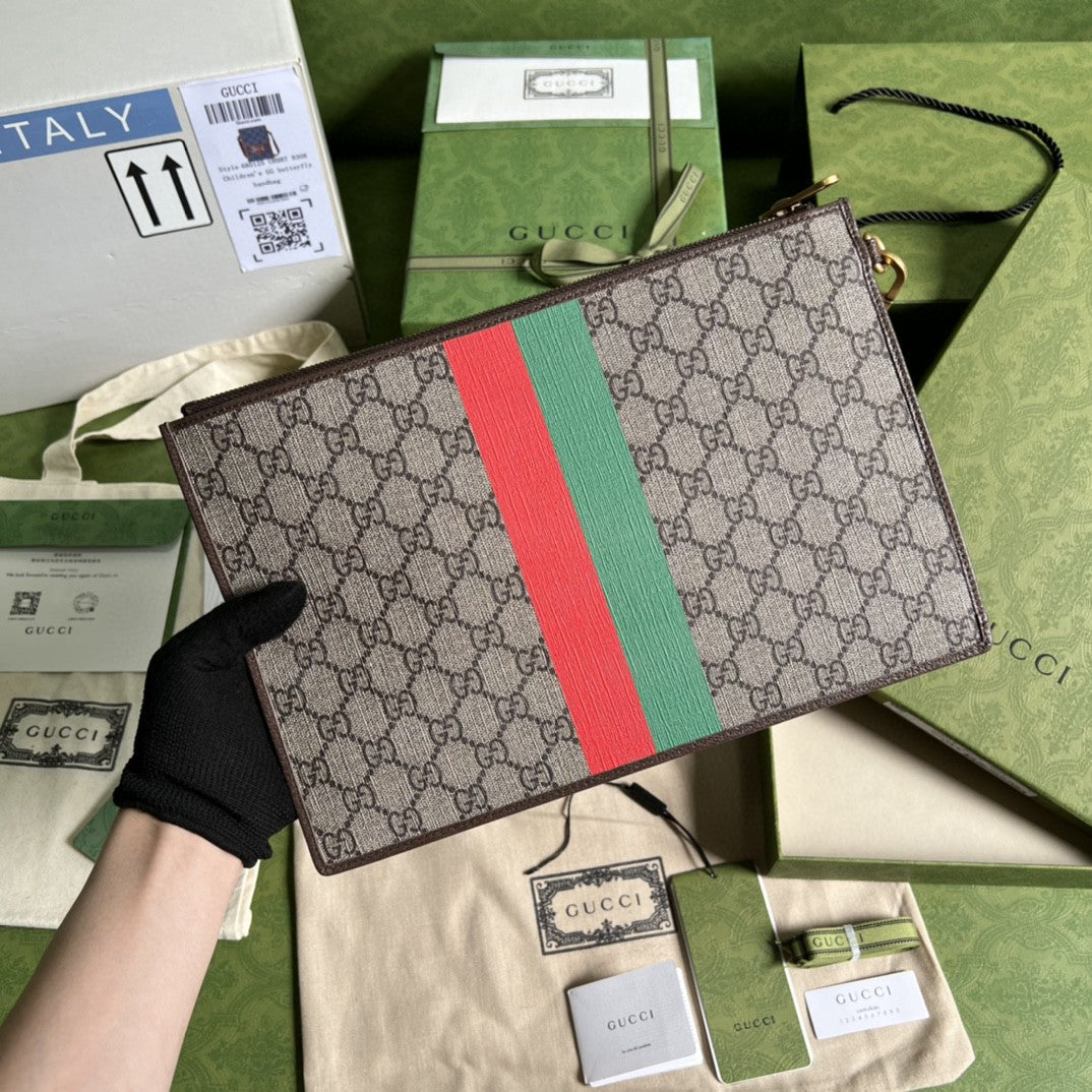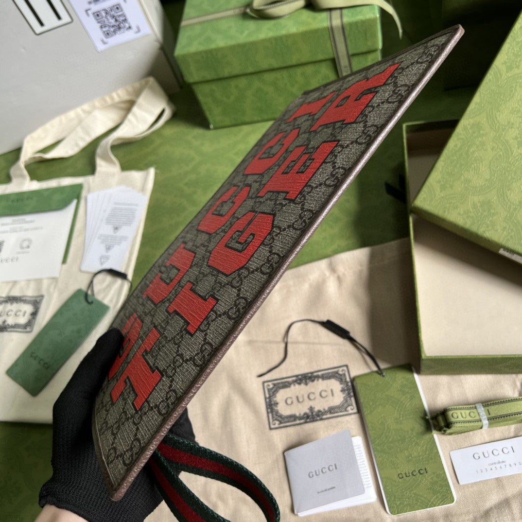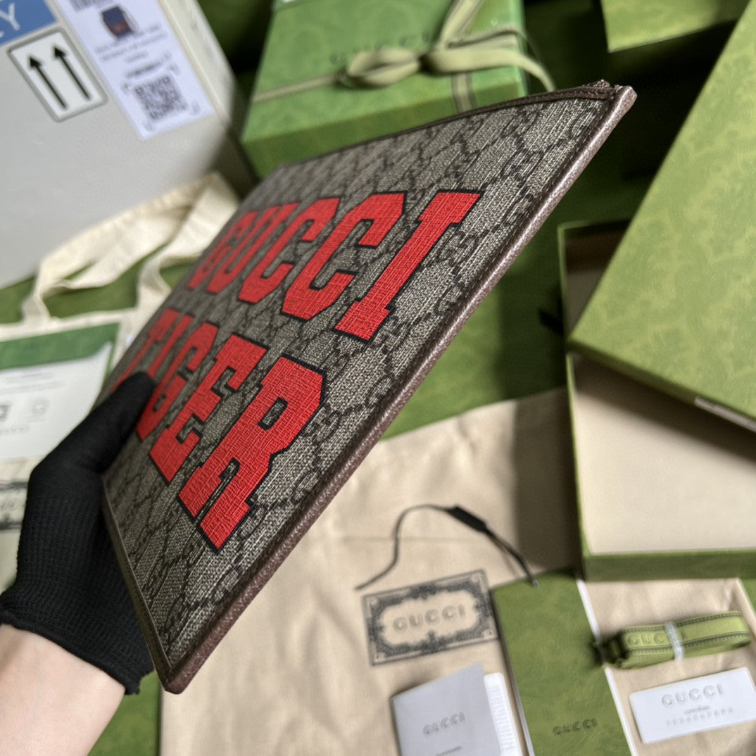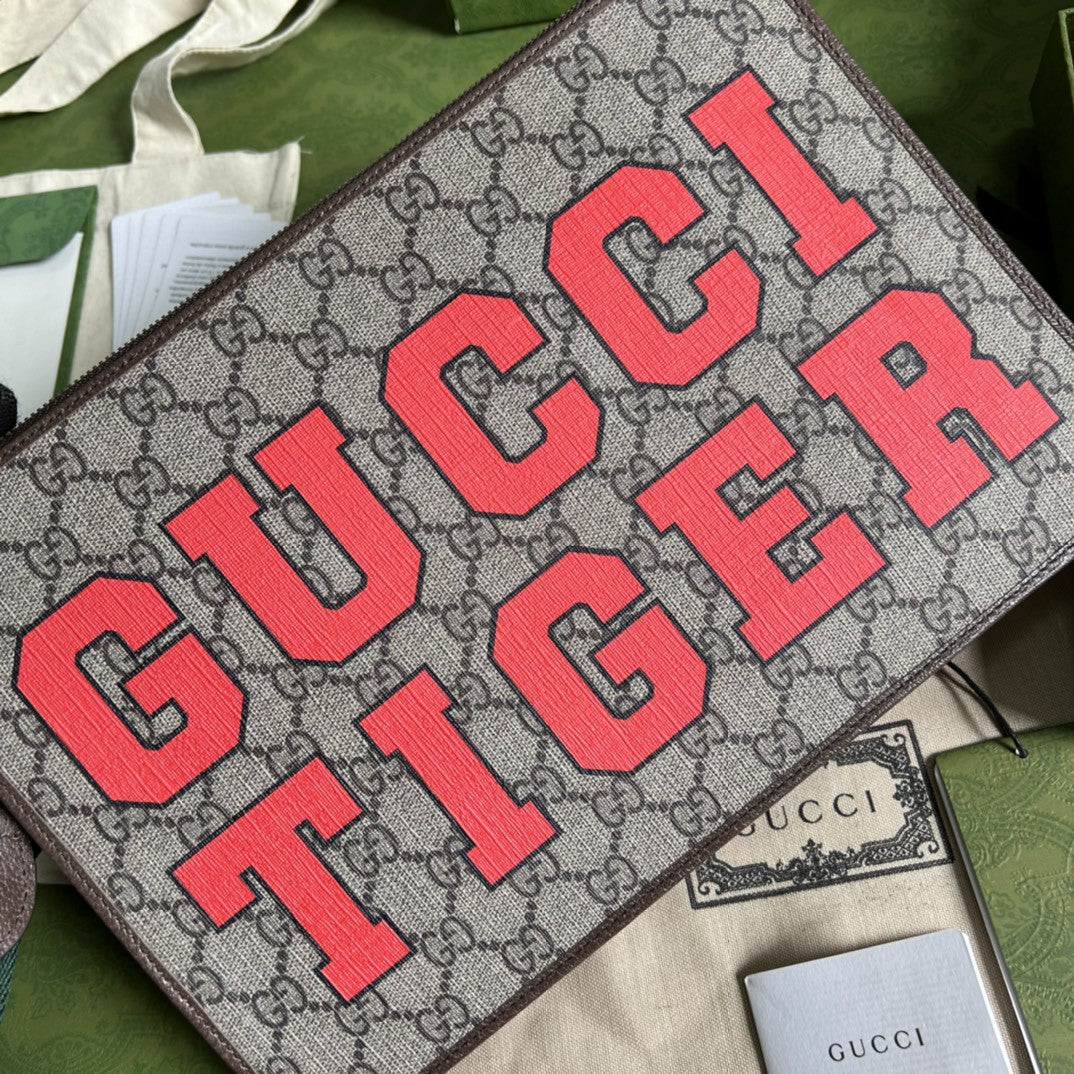 gg Tiger Clutch Supreme Canvas Brown For Women 11in/28cm gg