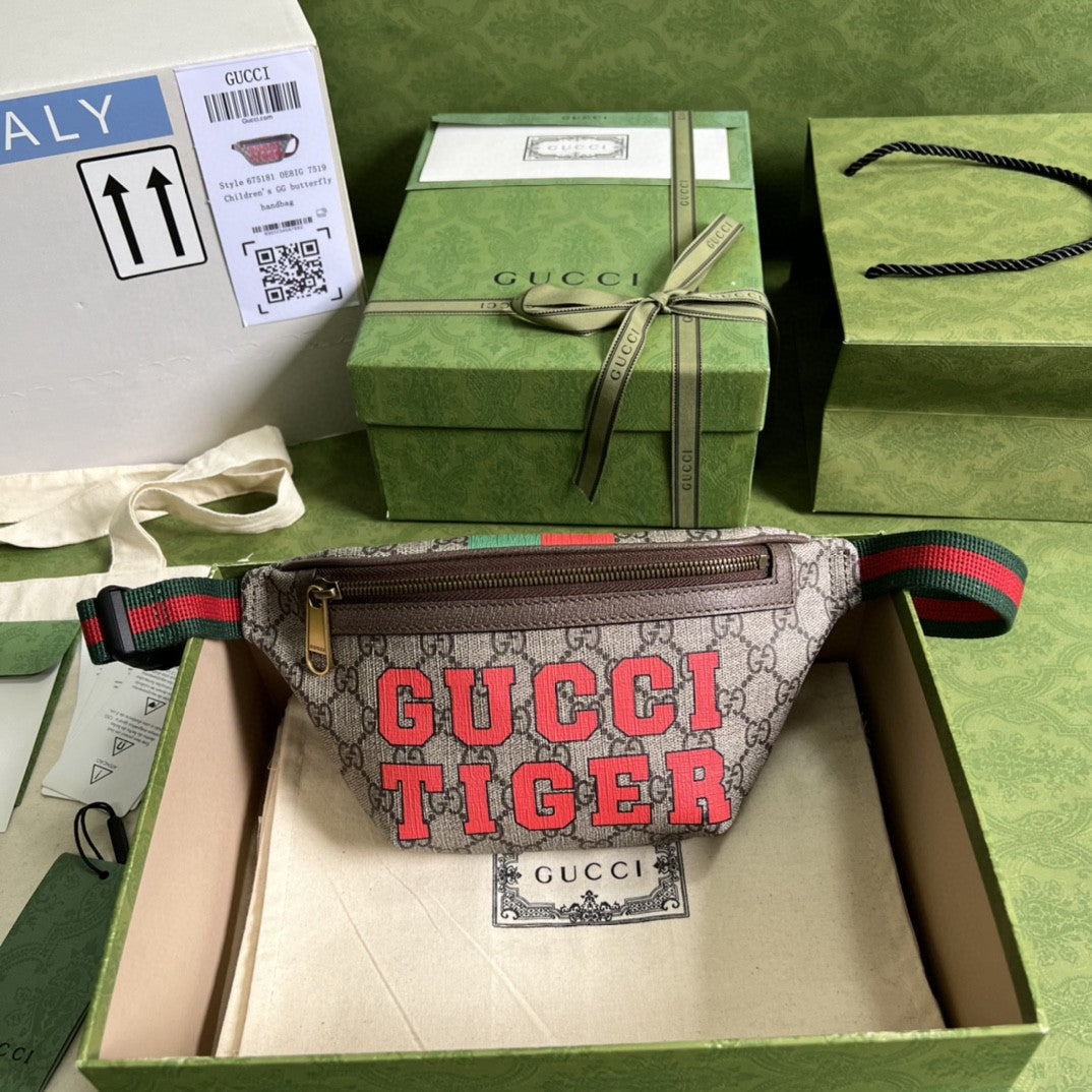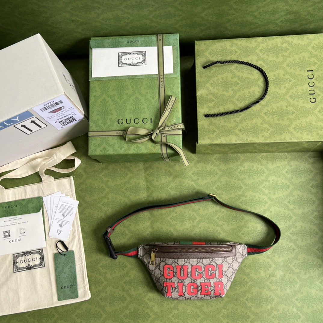 GG Tiger GG Belt Bag Beige And Ebony GG Supreme Canvas For Women And Men 6in/16cm 675181 US7DC 9395