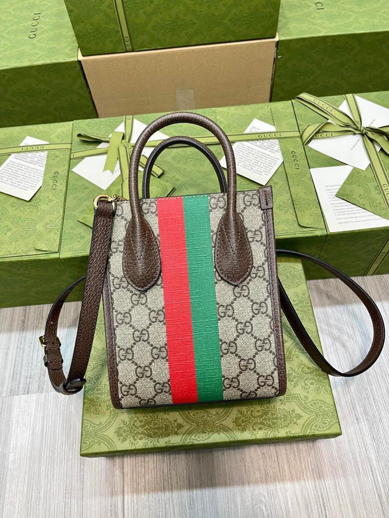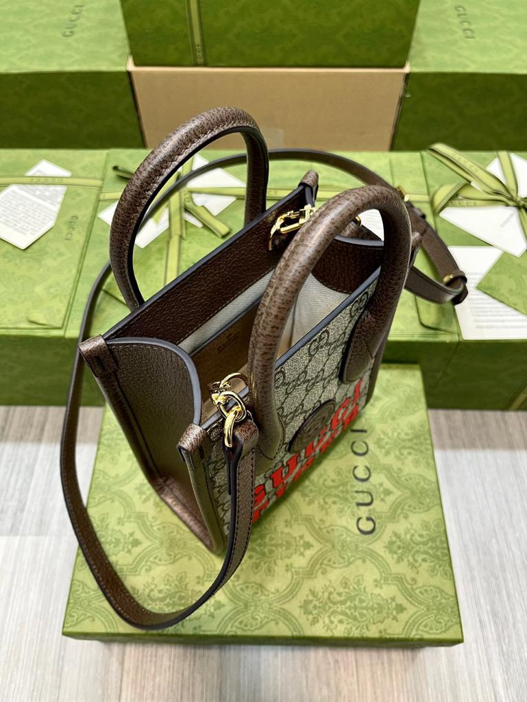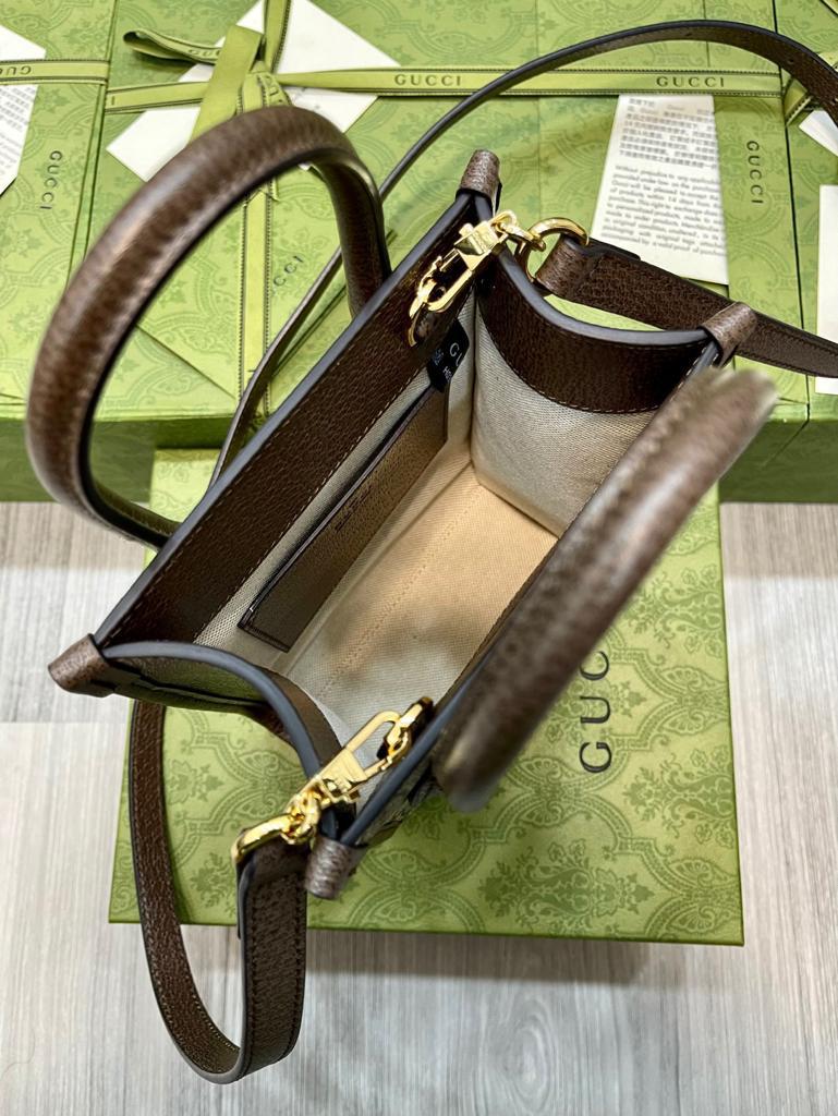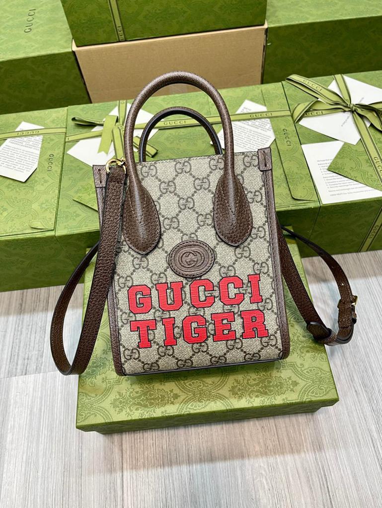GG Tiger GG Mini Tote Bag Beige And Ebony GG Supreme Canvas Brown For Women 7.8in/20cm GG 671623 US7EC 9396