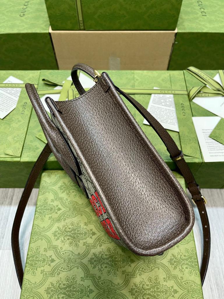 This mini GG tote bag is characterized by the printed motto ‘GG Tiger.’ References to the feline are often seen throughout the Creative Director’s collections as an expression of the House’s fascination with the wild beauty of the natural world.