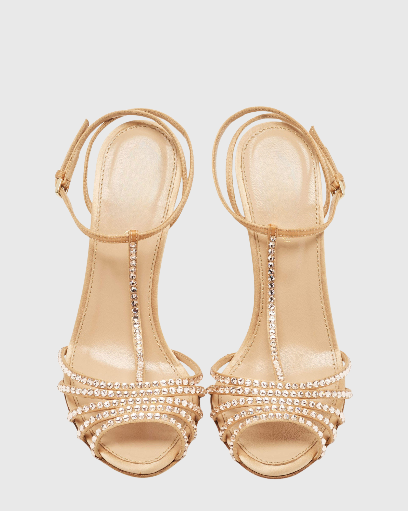Step into elegance with the Giannina Rhinestone T Strap Sandals. Featuring sparkling rhinestone detailing along the T-strap, these sandals add a touch of glamour to any outfit. Their sleek design offers both style and comfort, making them perfect for special occasions or elevating your everyday look. Make a statement with every step in these dazzling, eye-catching sandals.