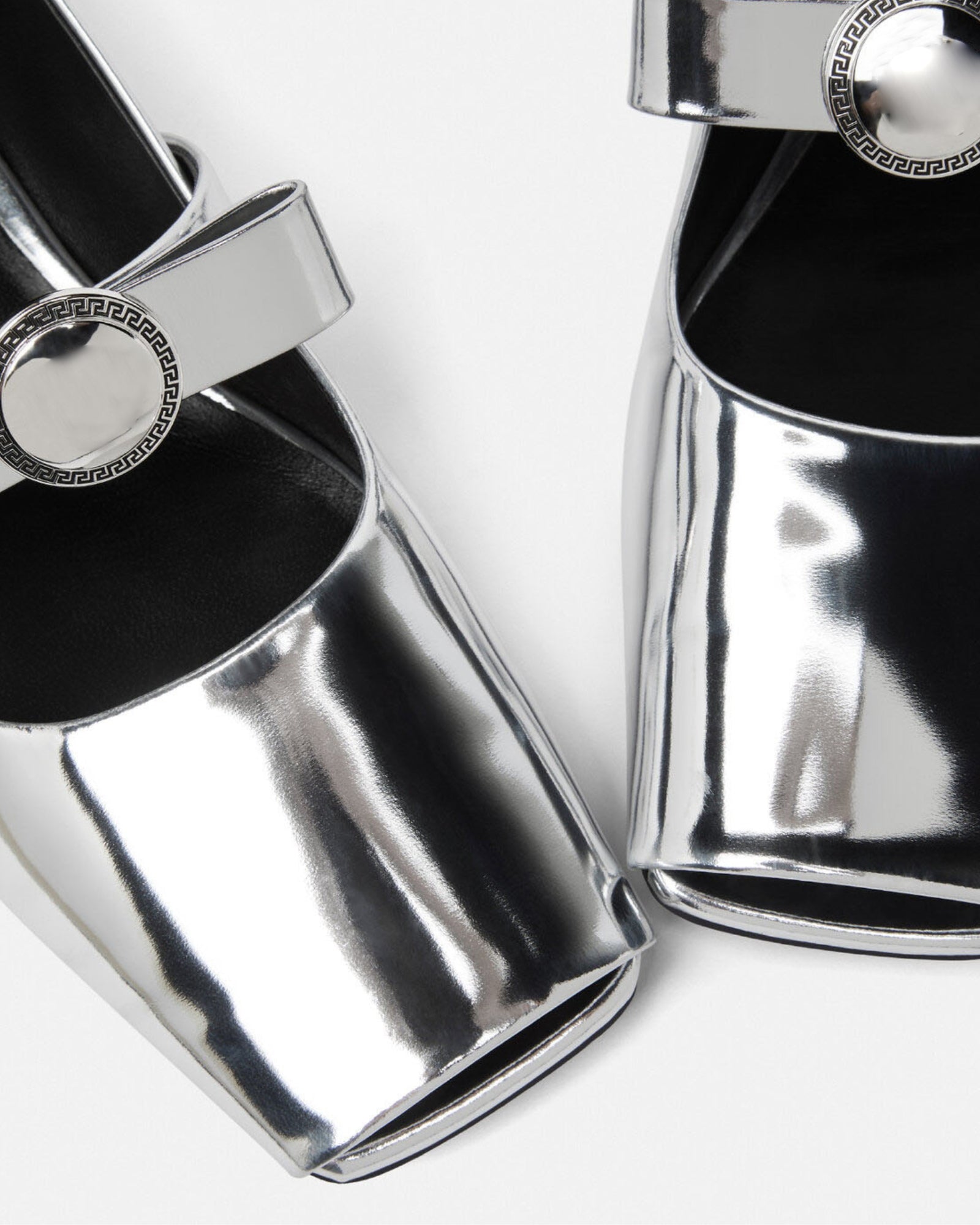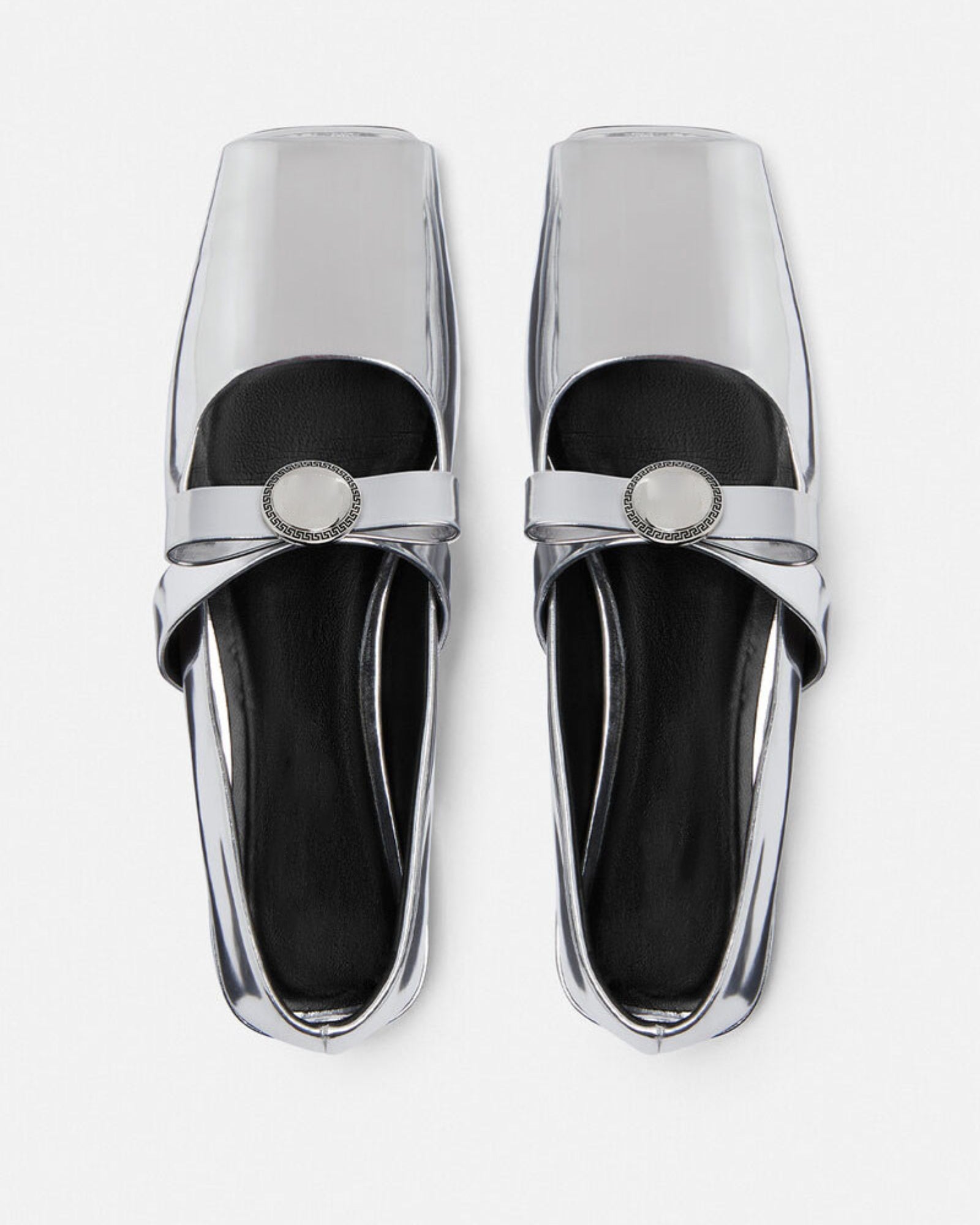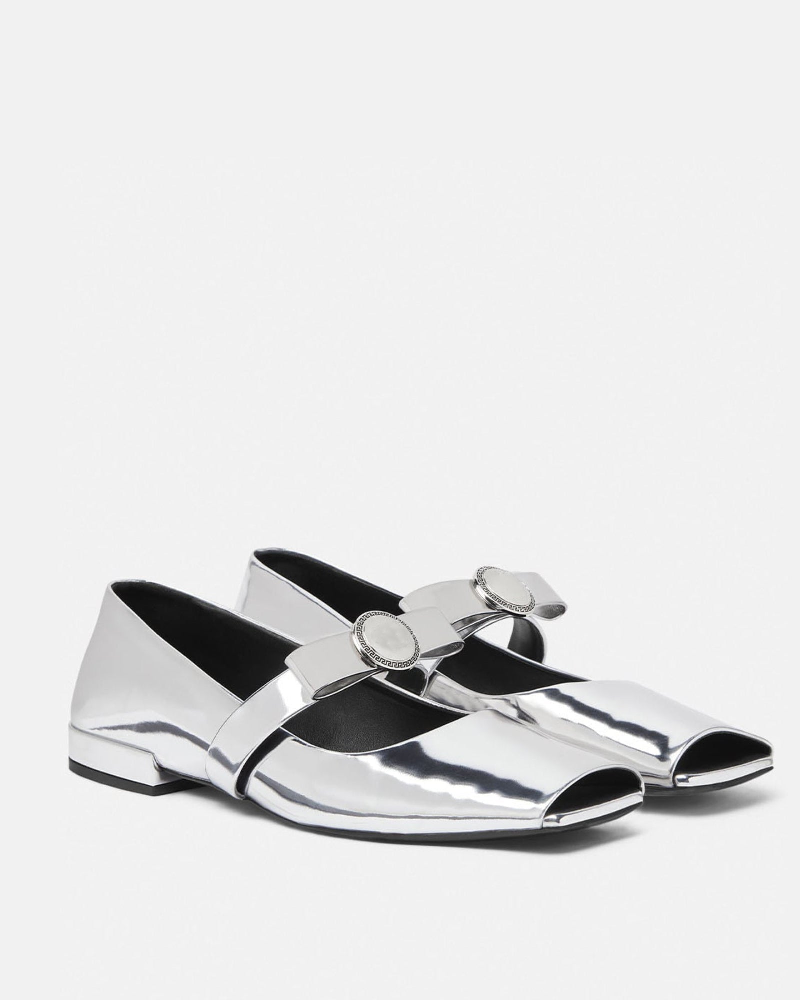 Giulia Fish Mouth Leather Ballet Flats In Silver