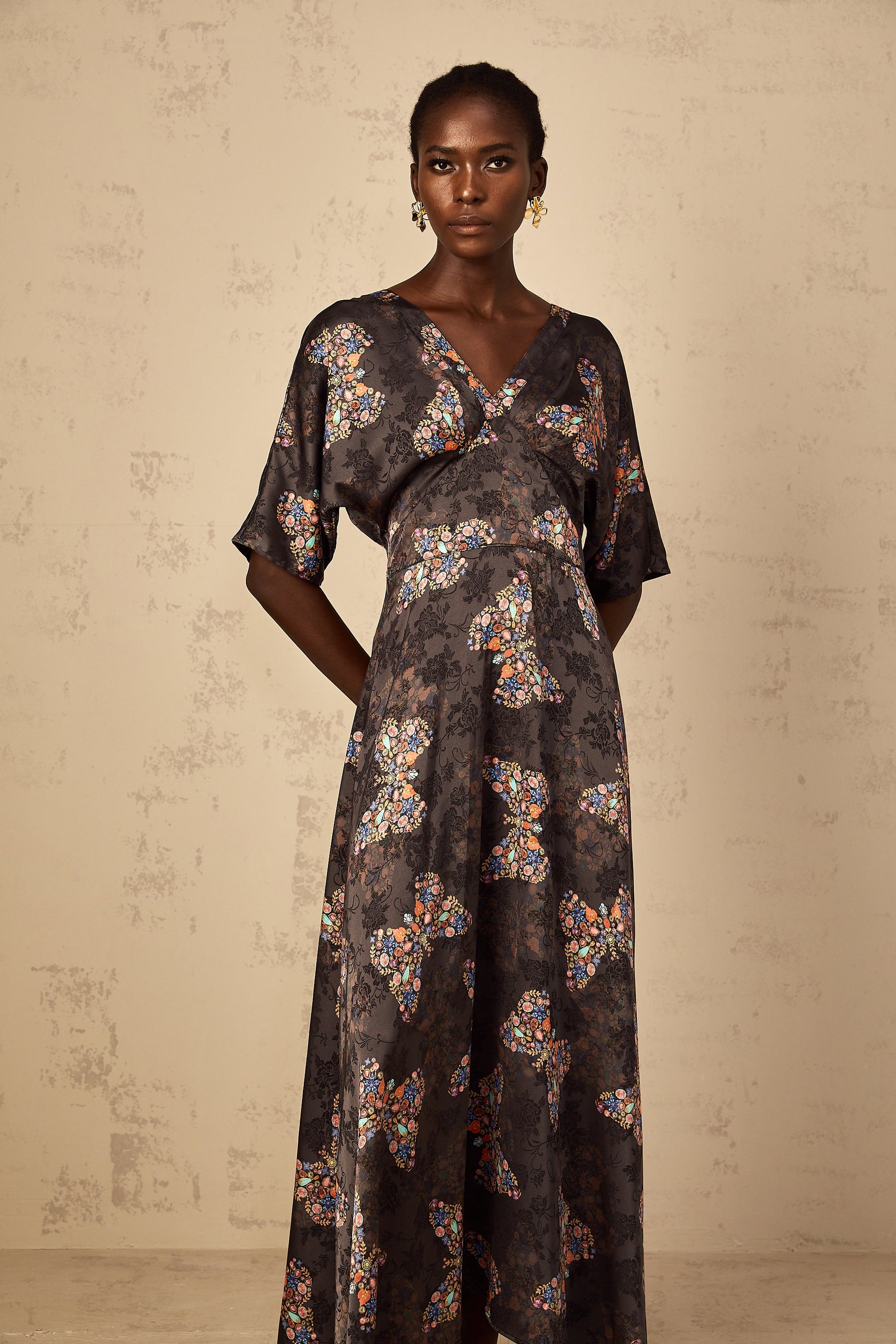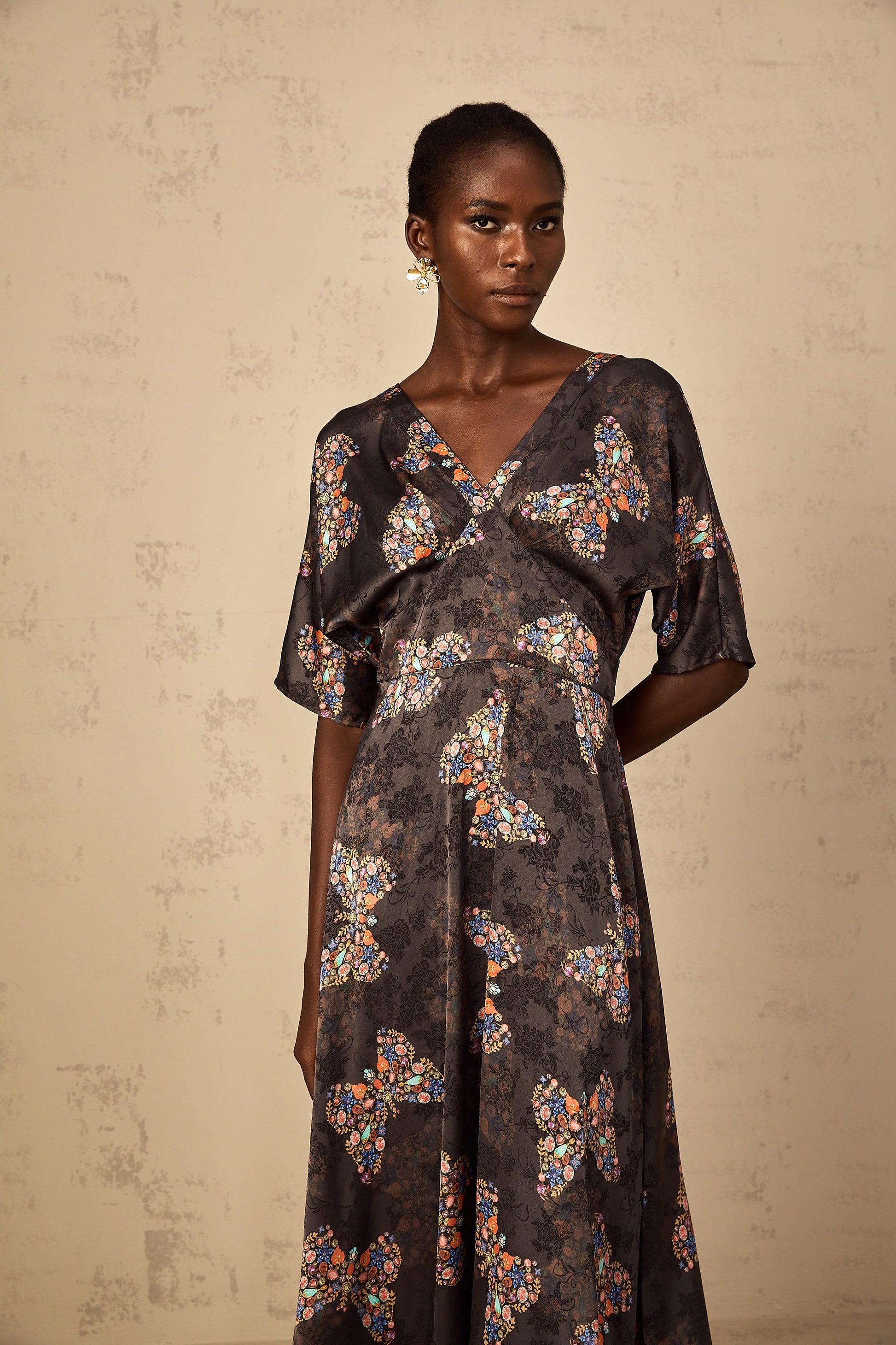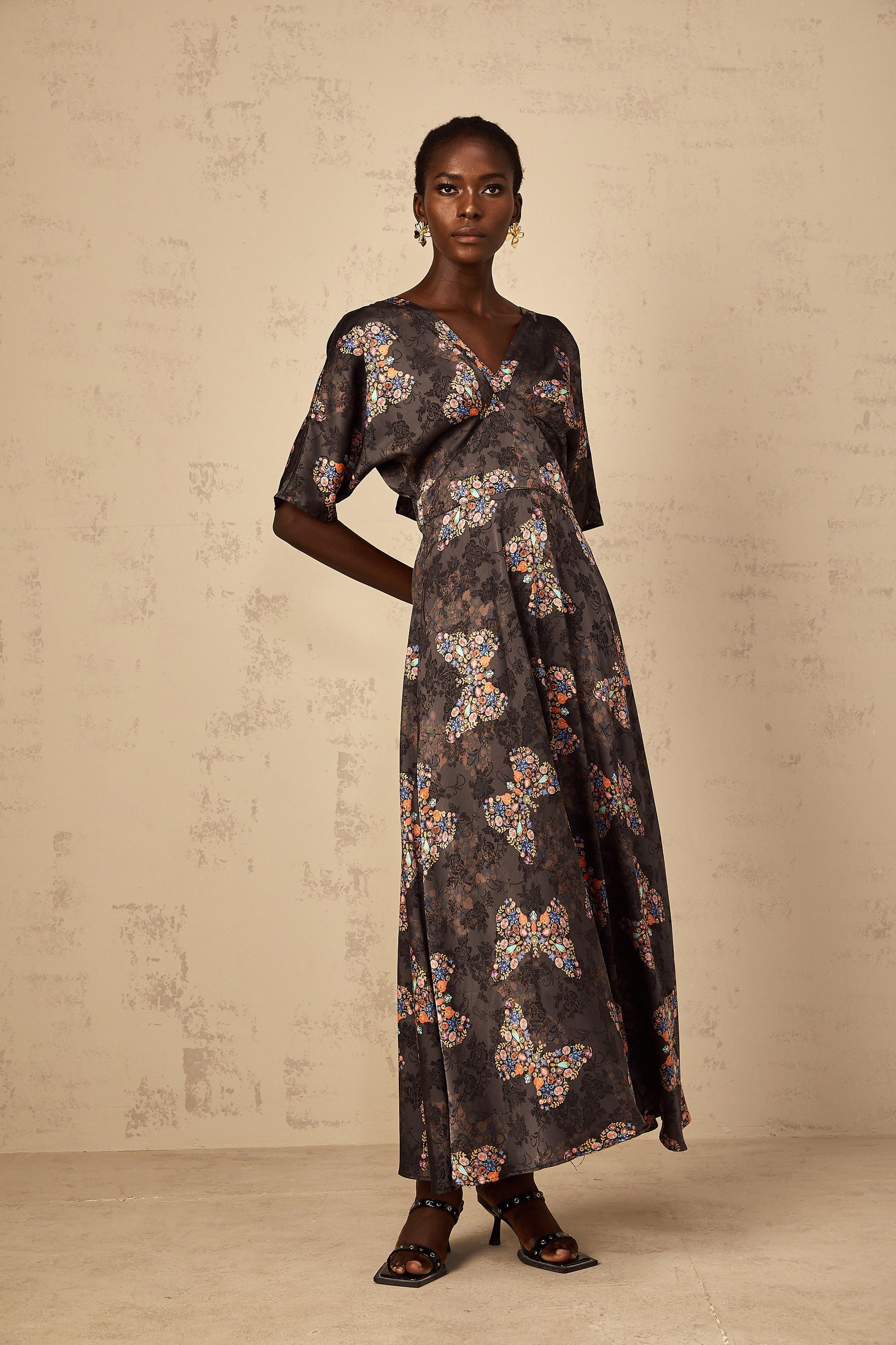Glannon Black Self-Tie Butterfly Print Maxi Dress