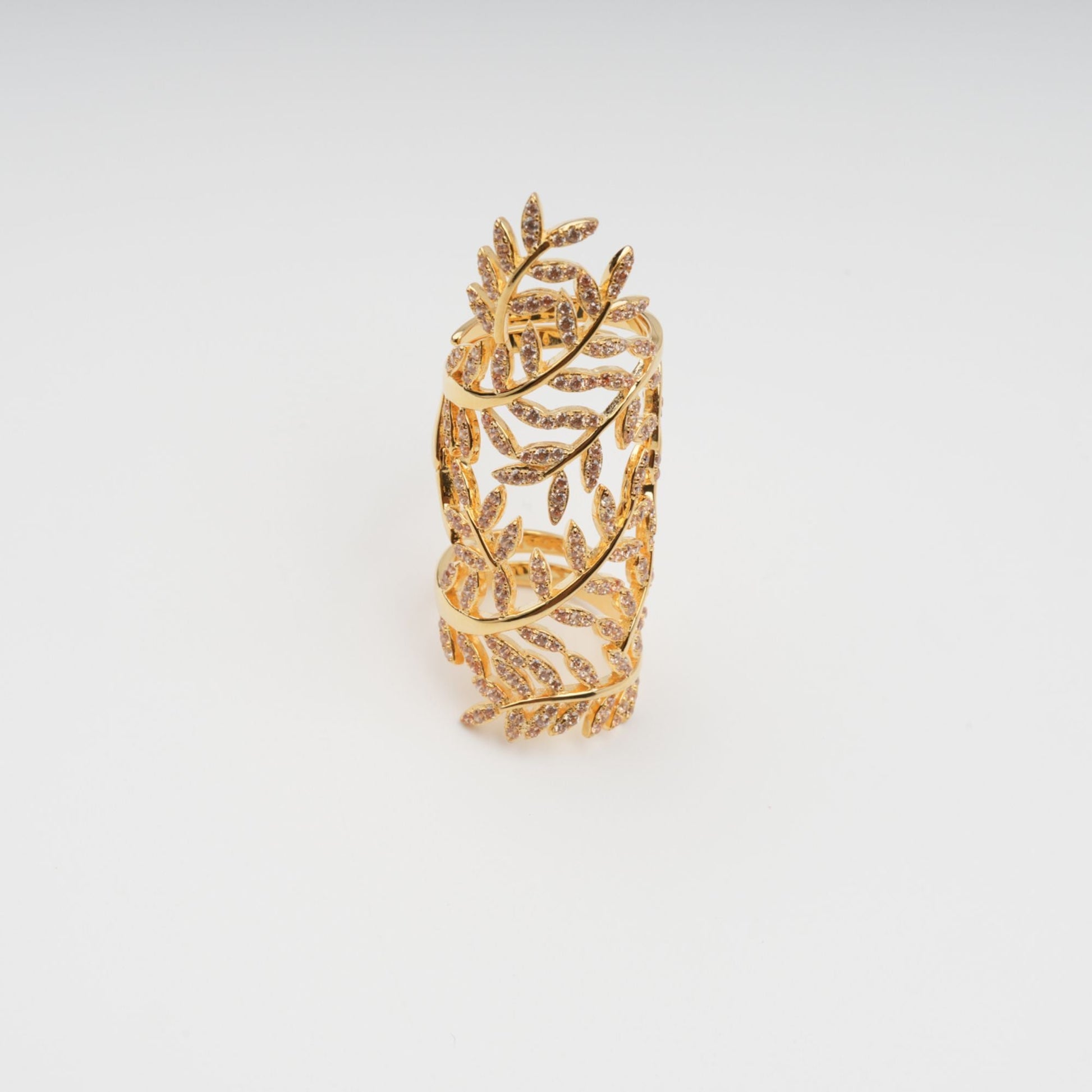 Glyphe Gold Tone Palm Leaf Adjustable Sterling Silver Ring
