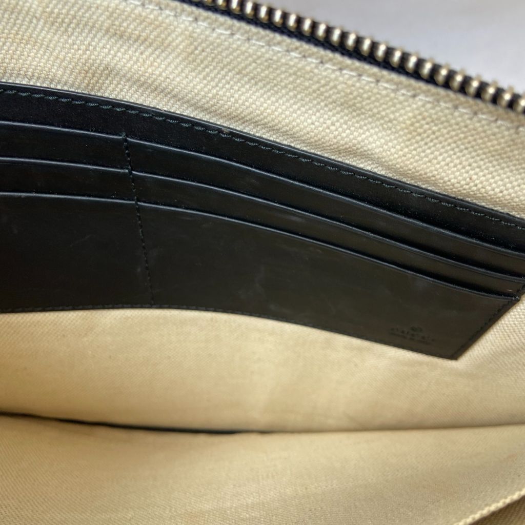 Fine Gucci collectable. Tiger face print and script 'L'Aveugle Par Amour' lettering on the front side of the pouch potraying a strong expression. Comes with zipper and detachable handle with black and beige interior.