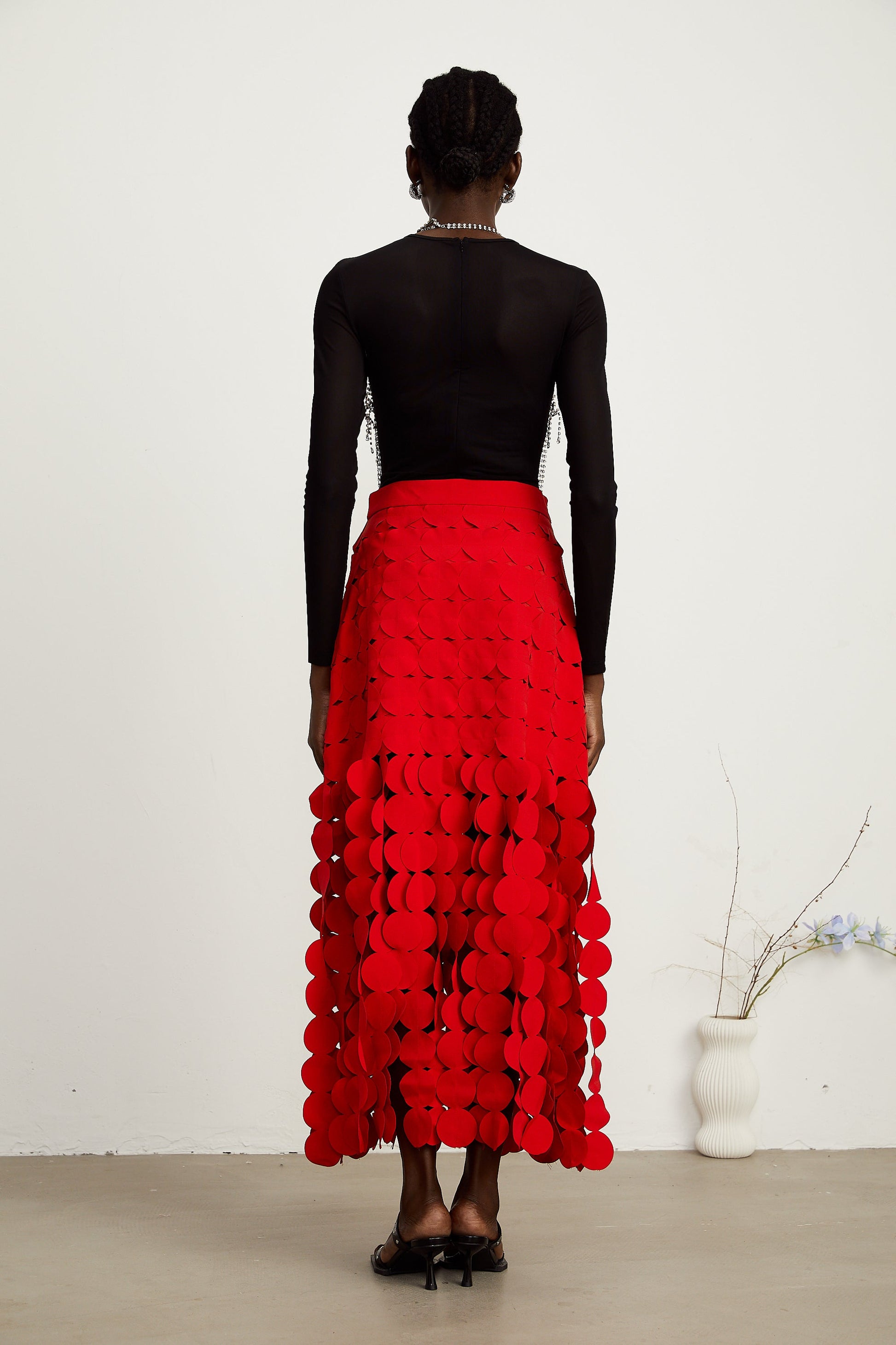 Hanna disc-design fringed maxi skirt in Red