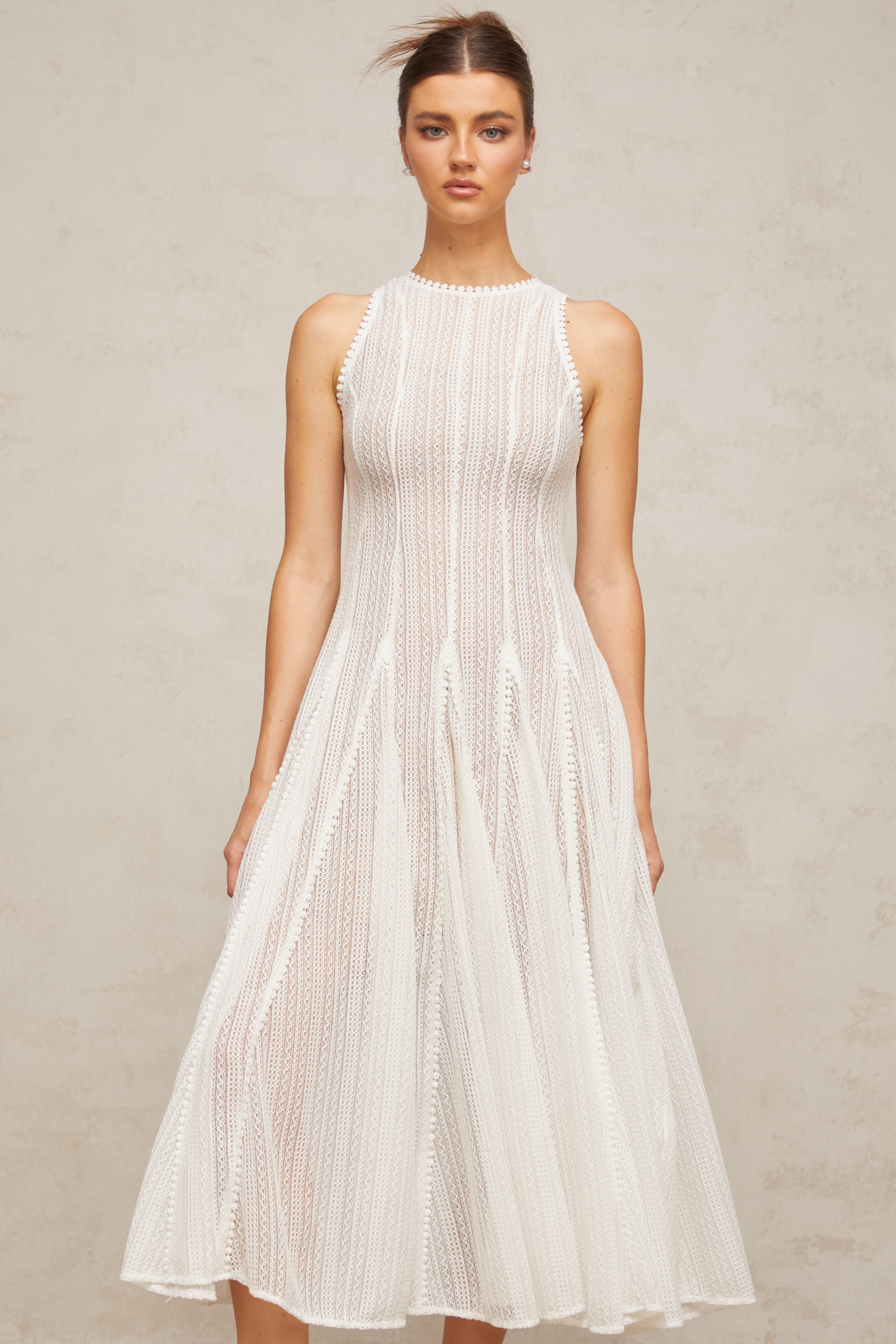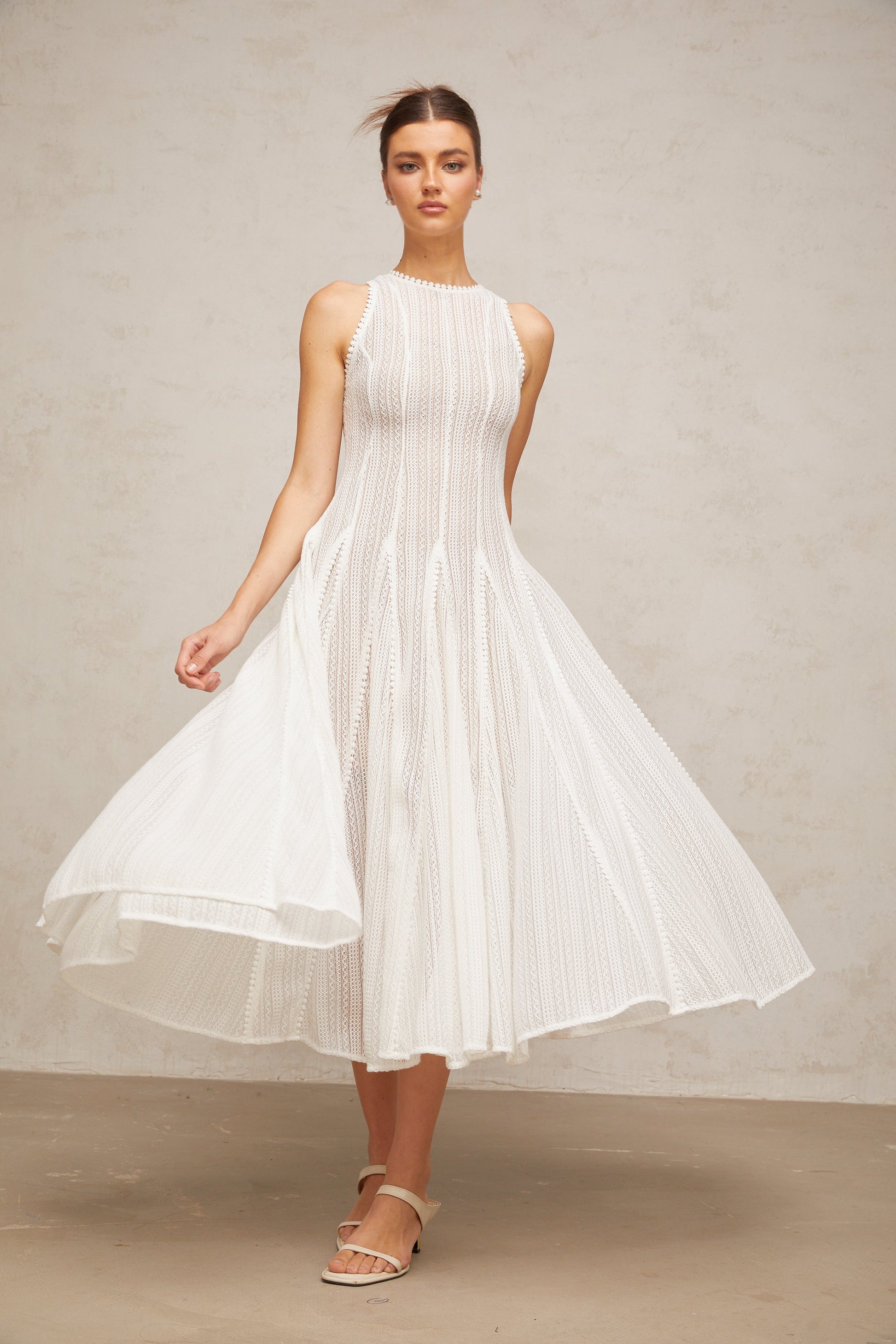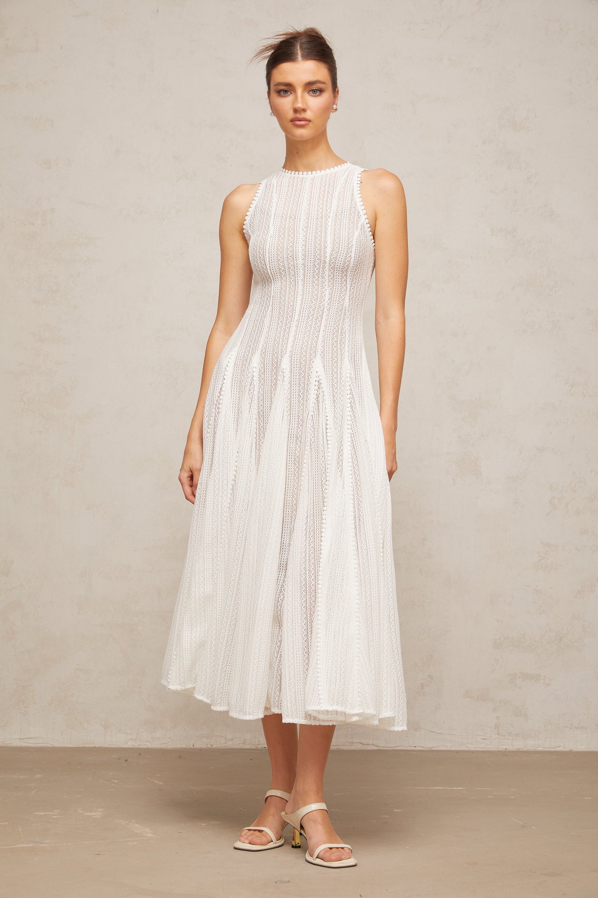 Hélène white pointelle puff midi dress