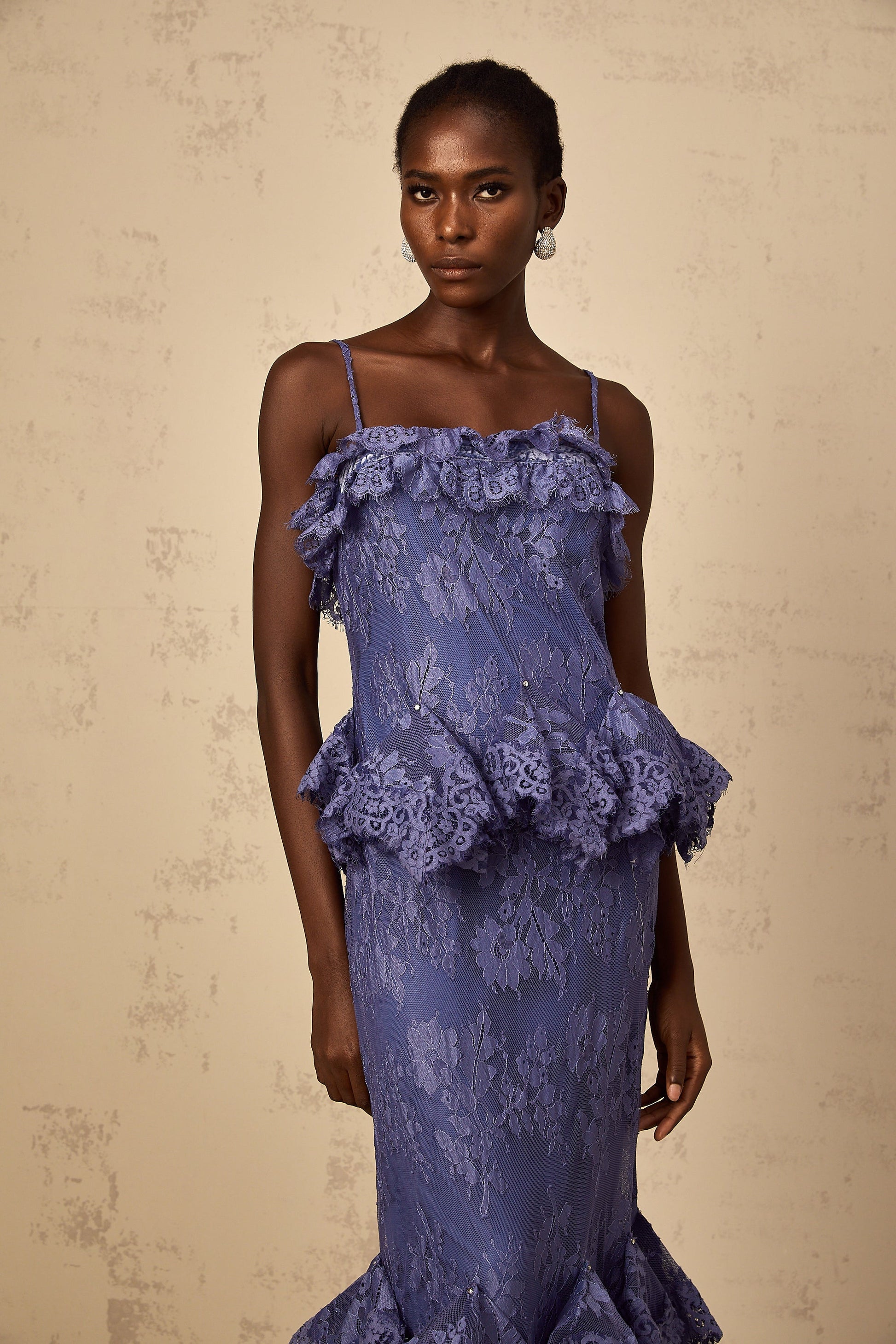Héloïse Purple Floral Lace Ruffled Maxi Dress