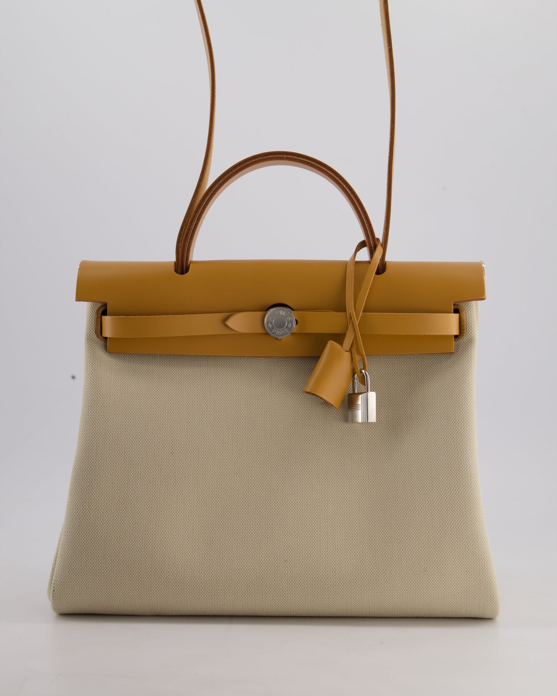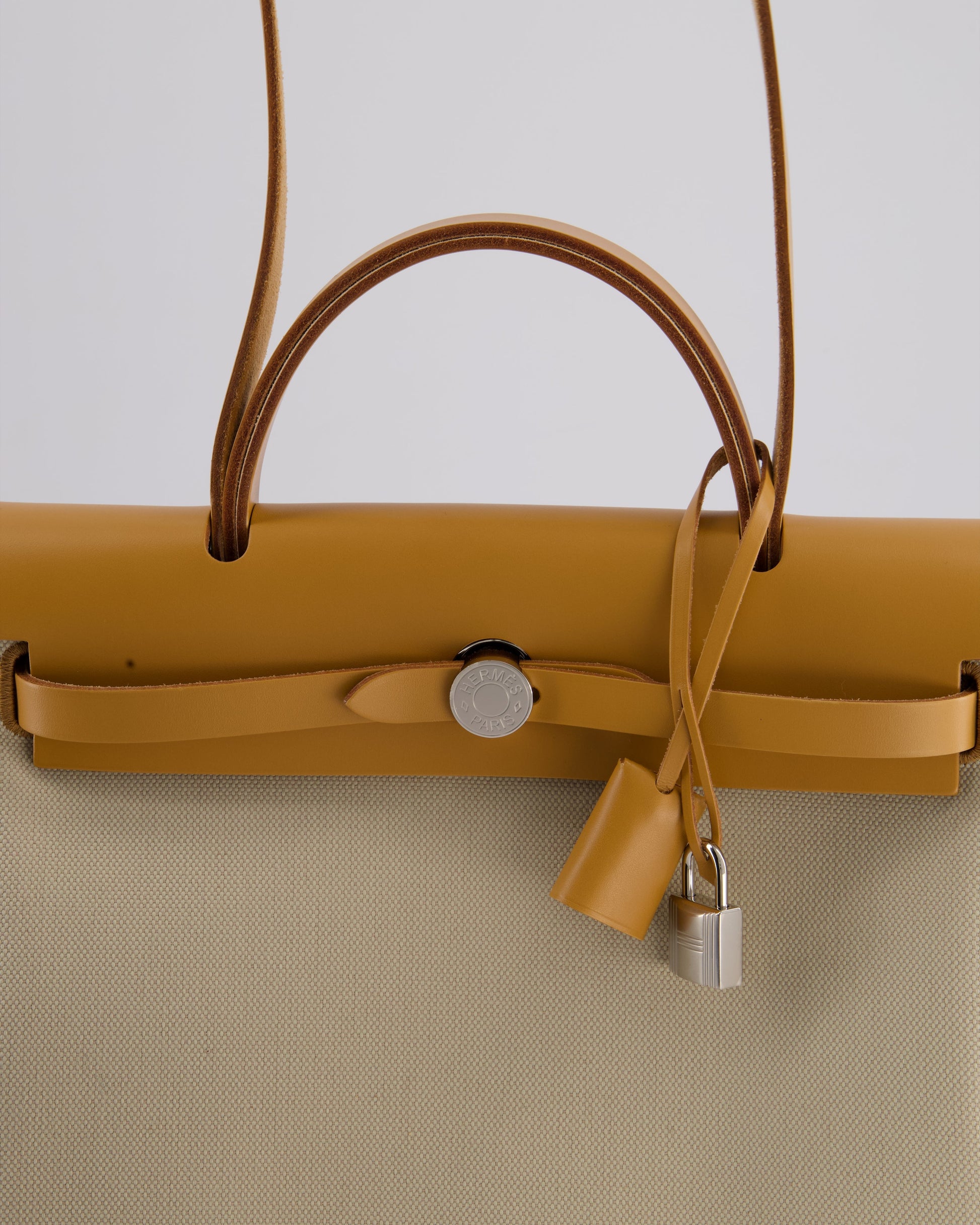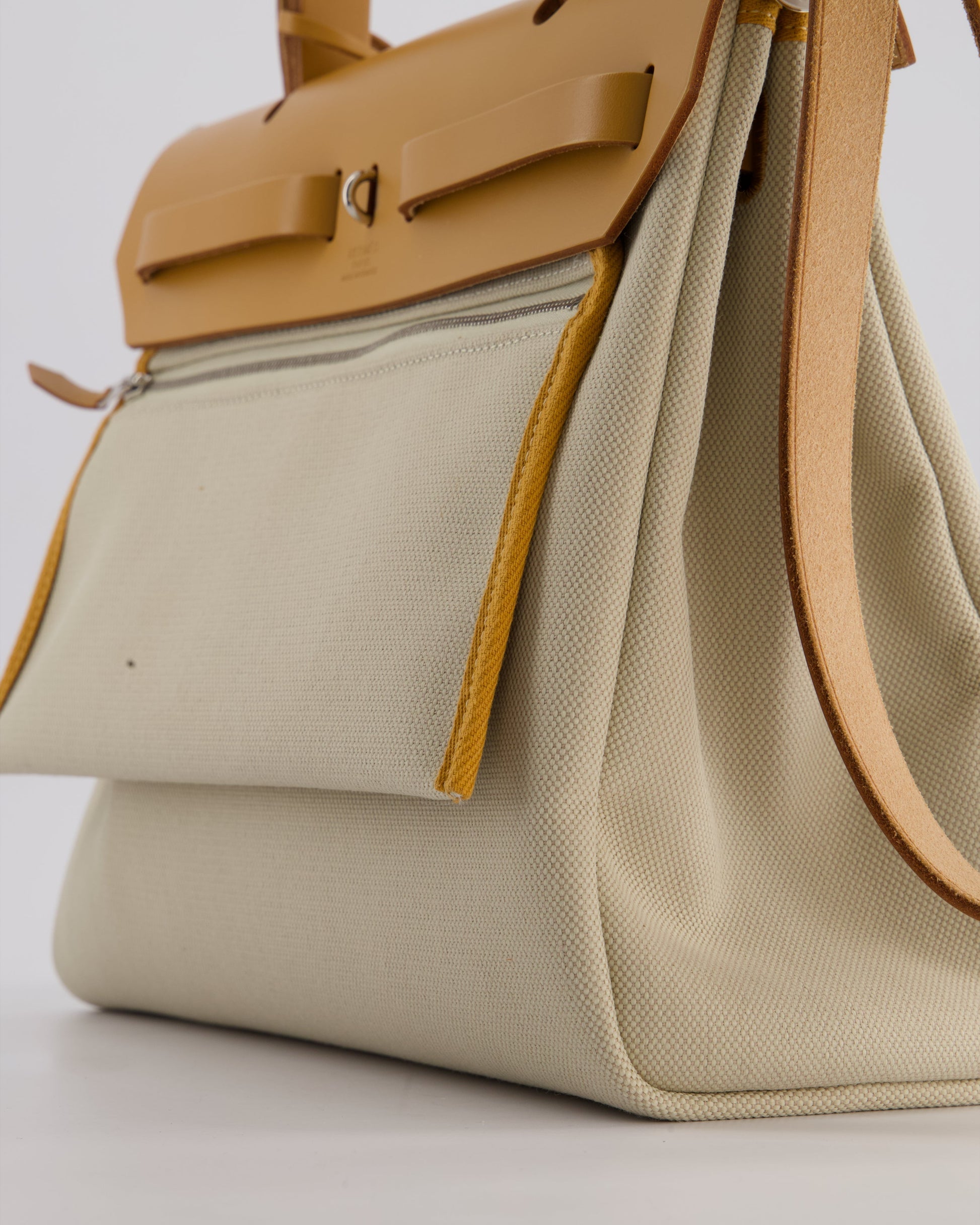 Hermès Herbag Zip Retourne 31 Bag in Ecru Toille H Canvas, Naturel Vache Hunter Leather with Palladium Hardware