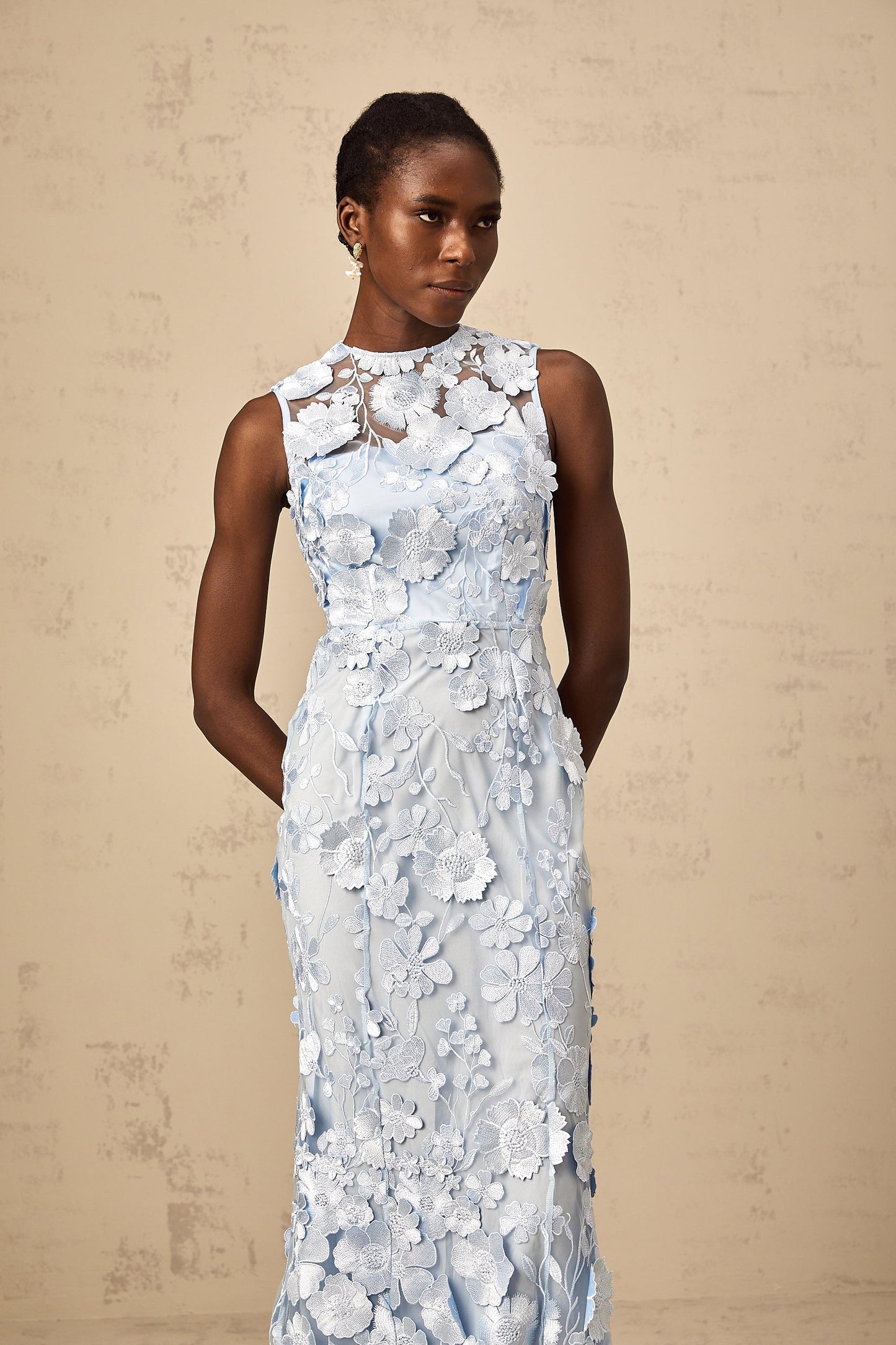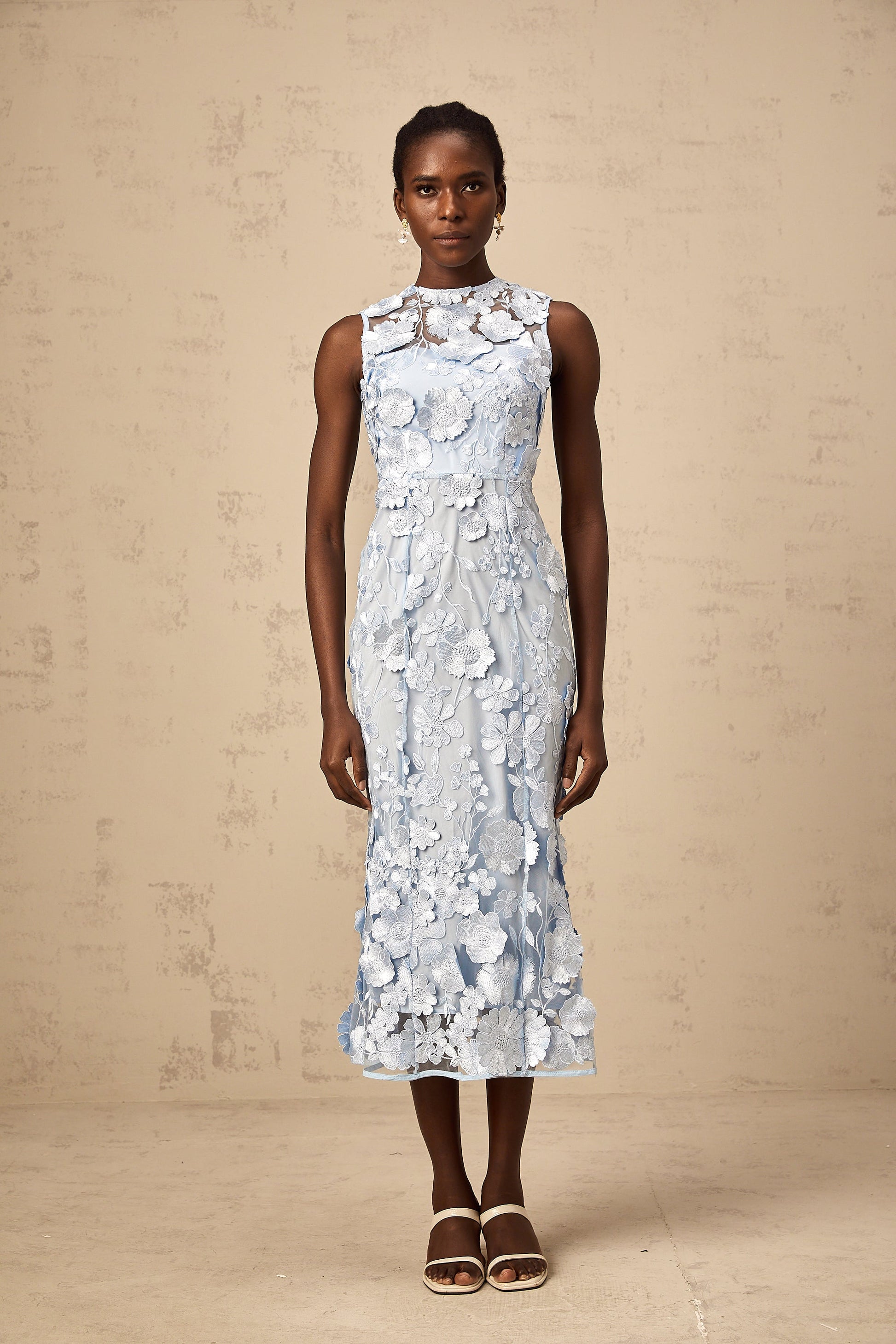 Herta blue floral-appliqué midi dress