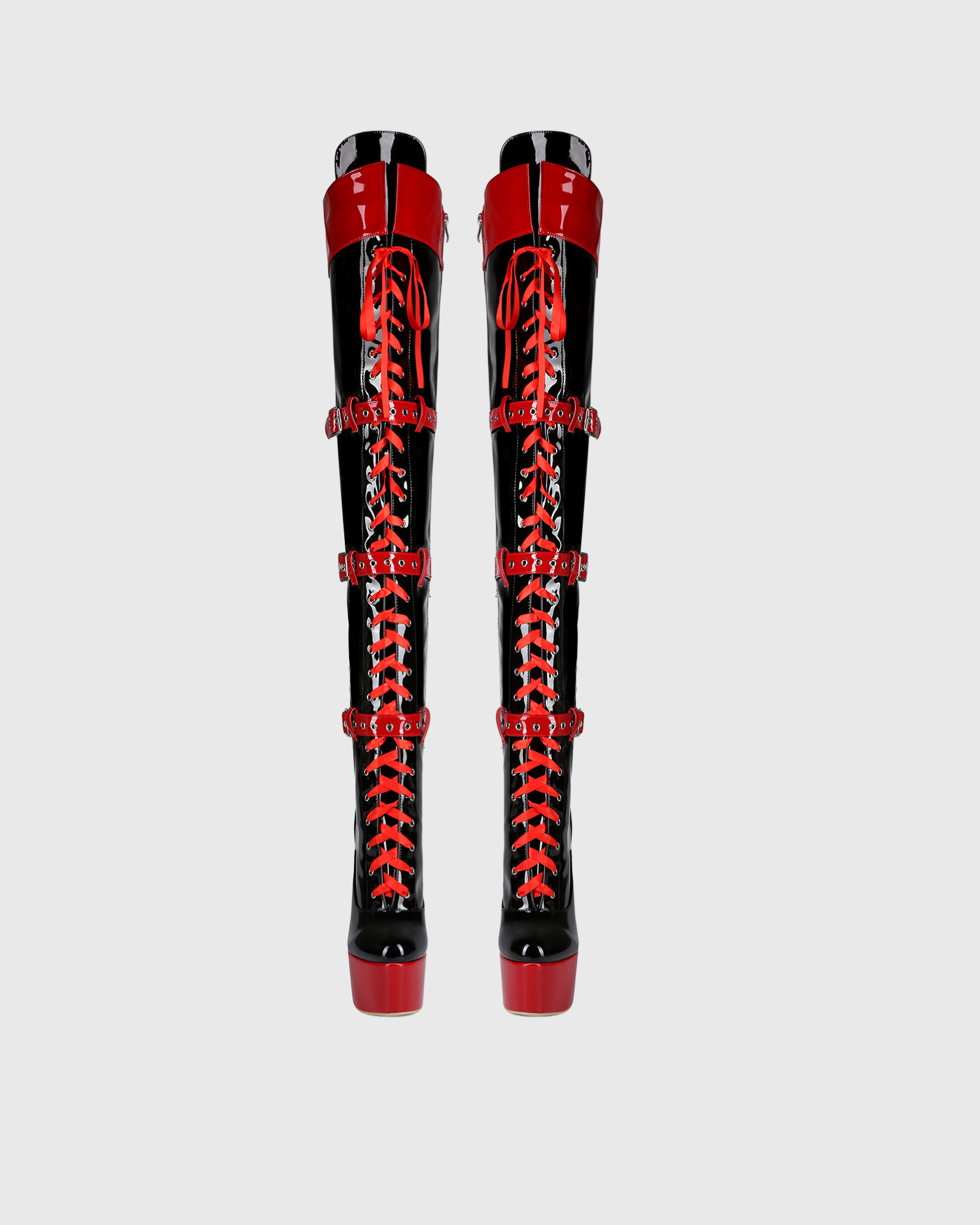 Hollis Buckle Lace Up Platform Over The knee Boots
