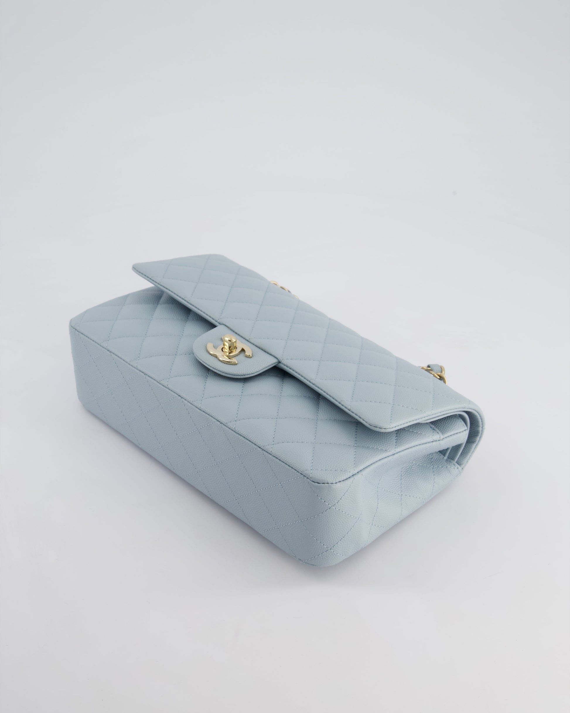 *HOT* Chanel Baby Blue Medium Classic Double Flap Bag in Caviar Leather with Champagne Gold Hardware