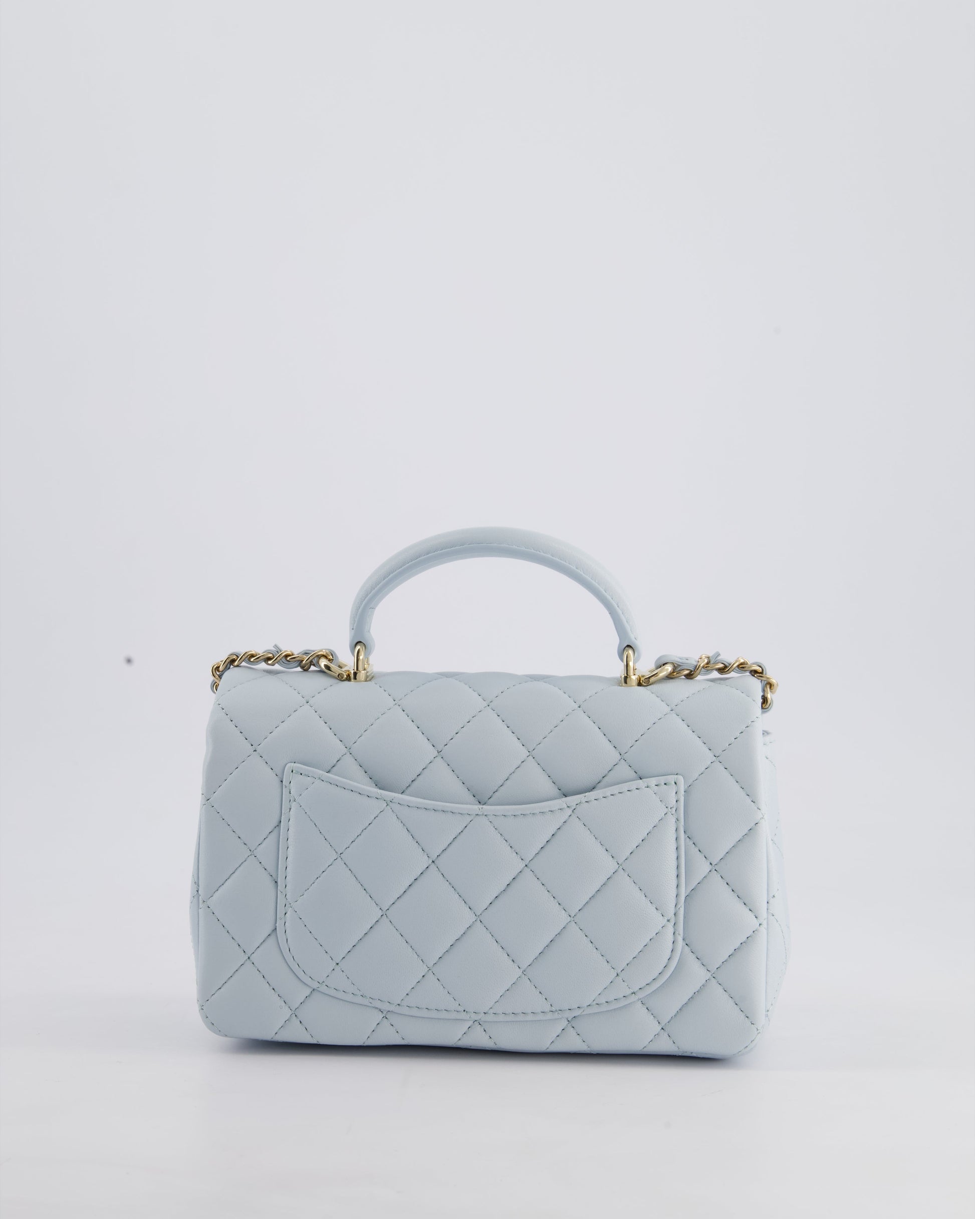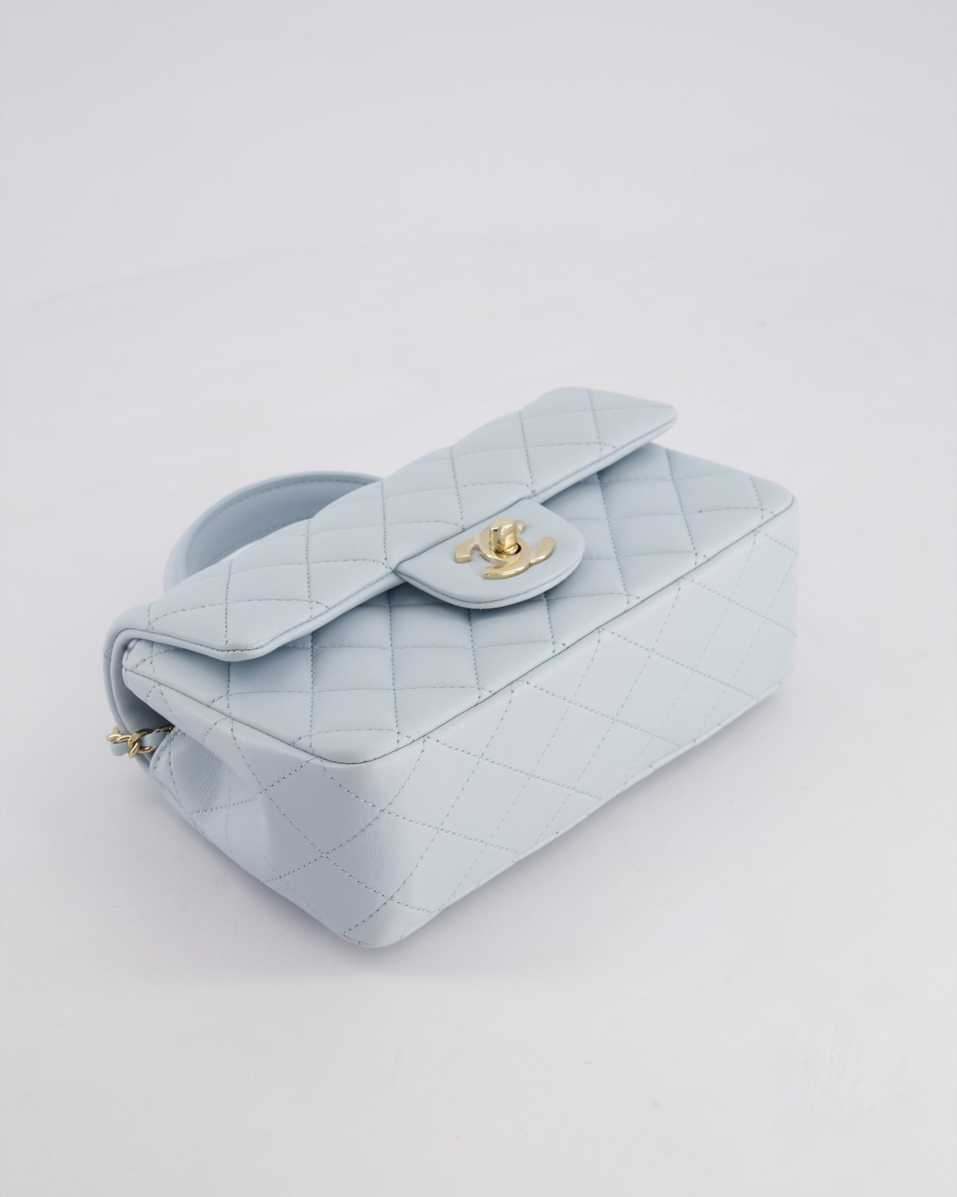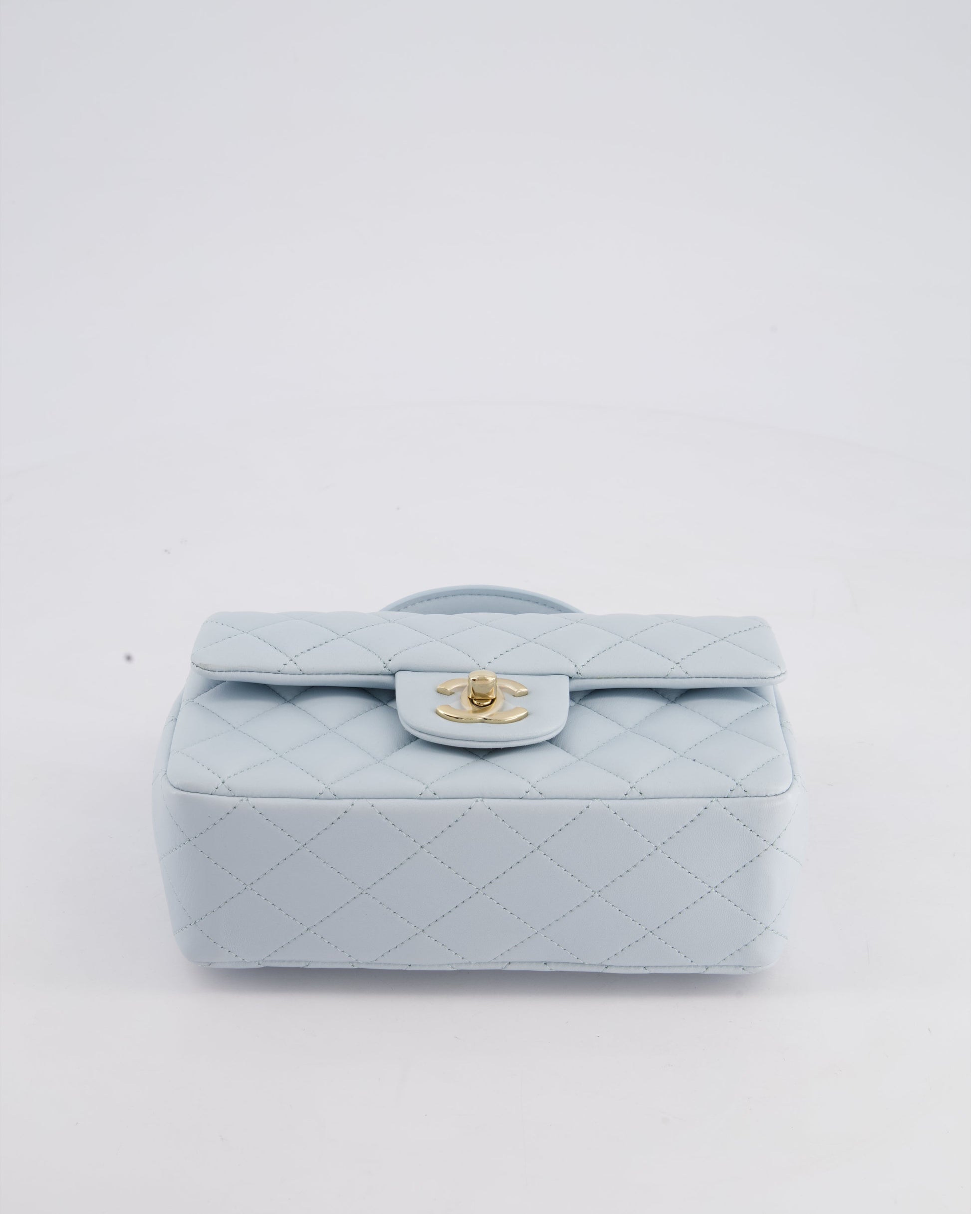 Chanel Baby Blue Mini Rectangular Top Handle Bag in Lambskin Leather with Champagne Gold Hardware