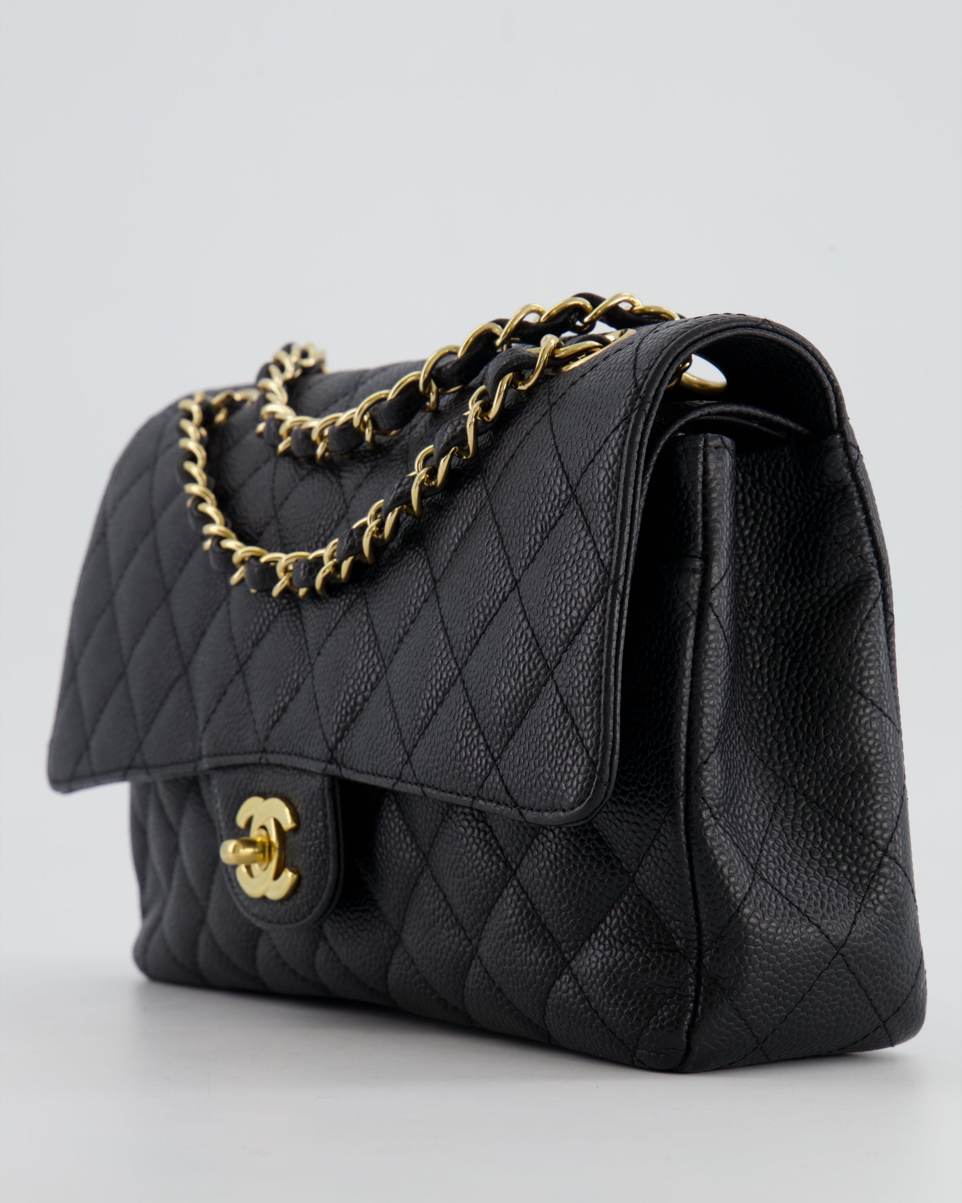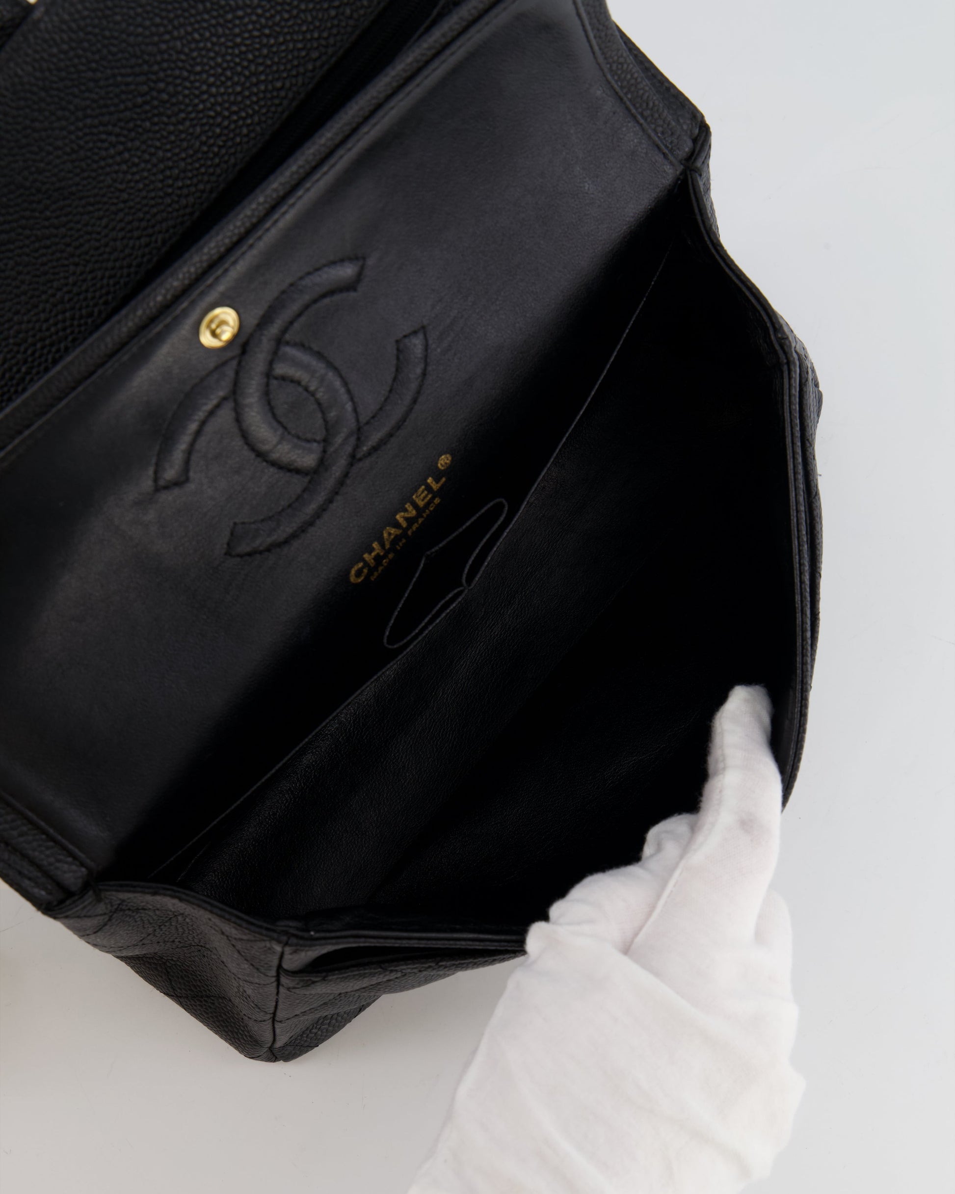 *HOT* Chanel Black Medium Classic Double Flap Bag in Caviar Leather with Gold Hardware