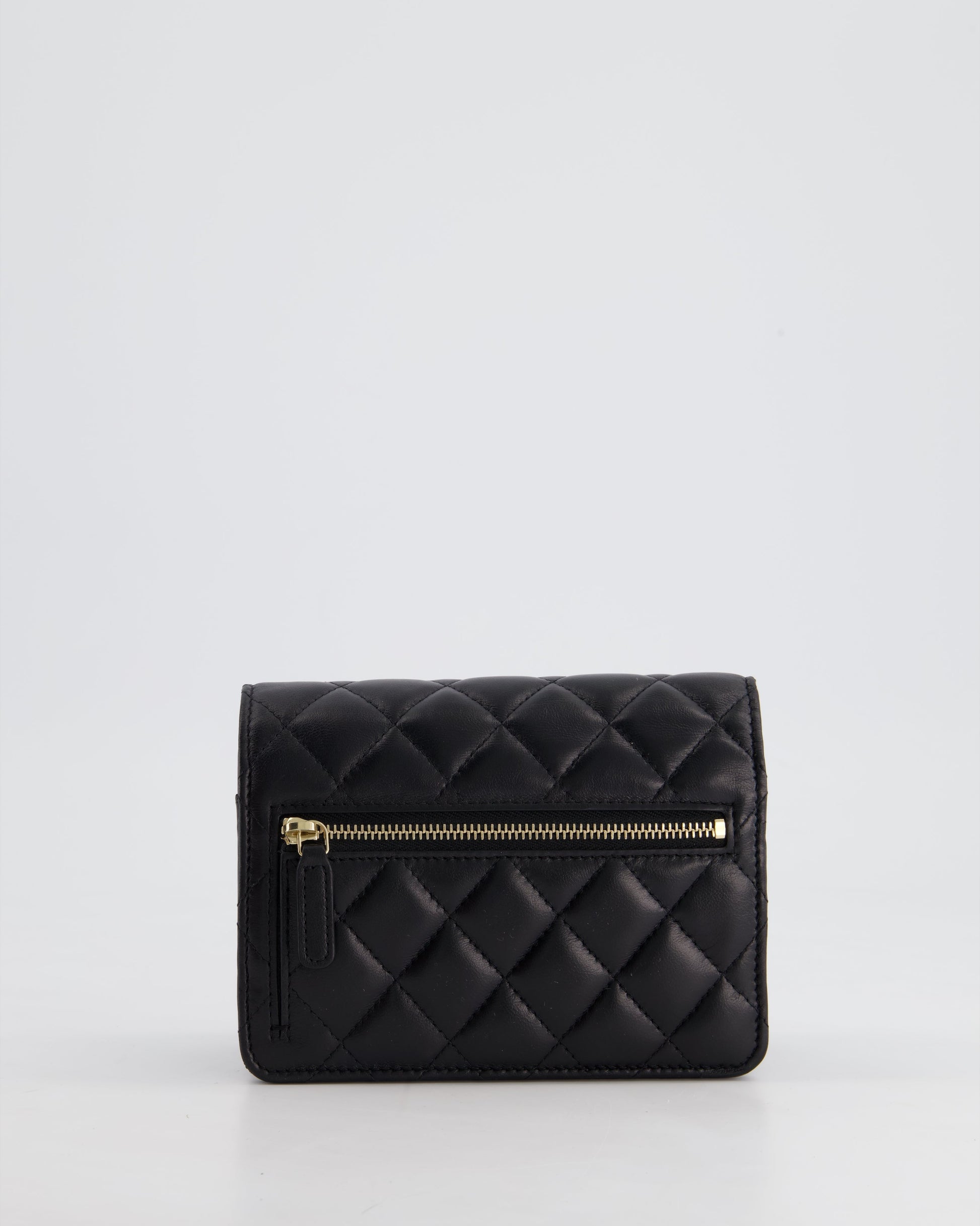 *HOT* Chanel Black Mini Seasonal Flap Bag In Lambskin Leather with Gold & Black Hardware