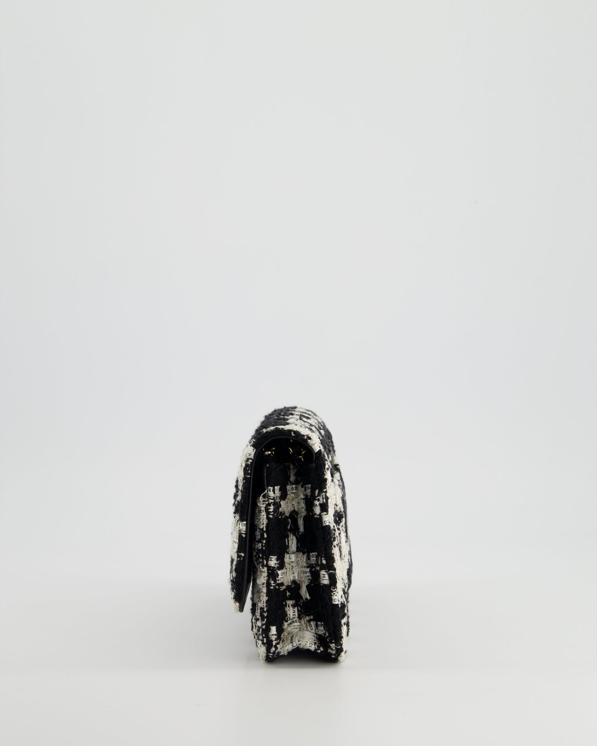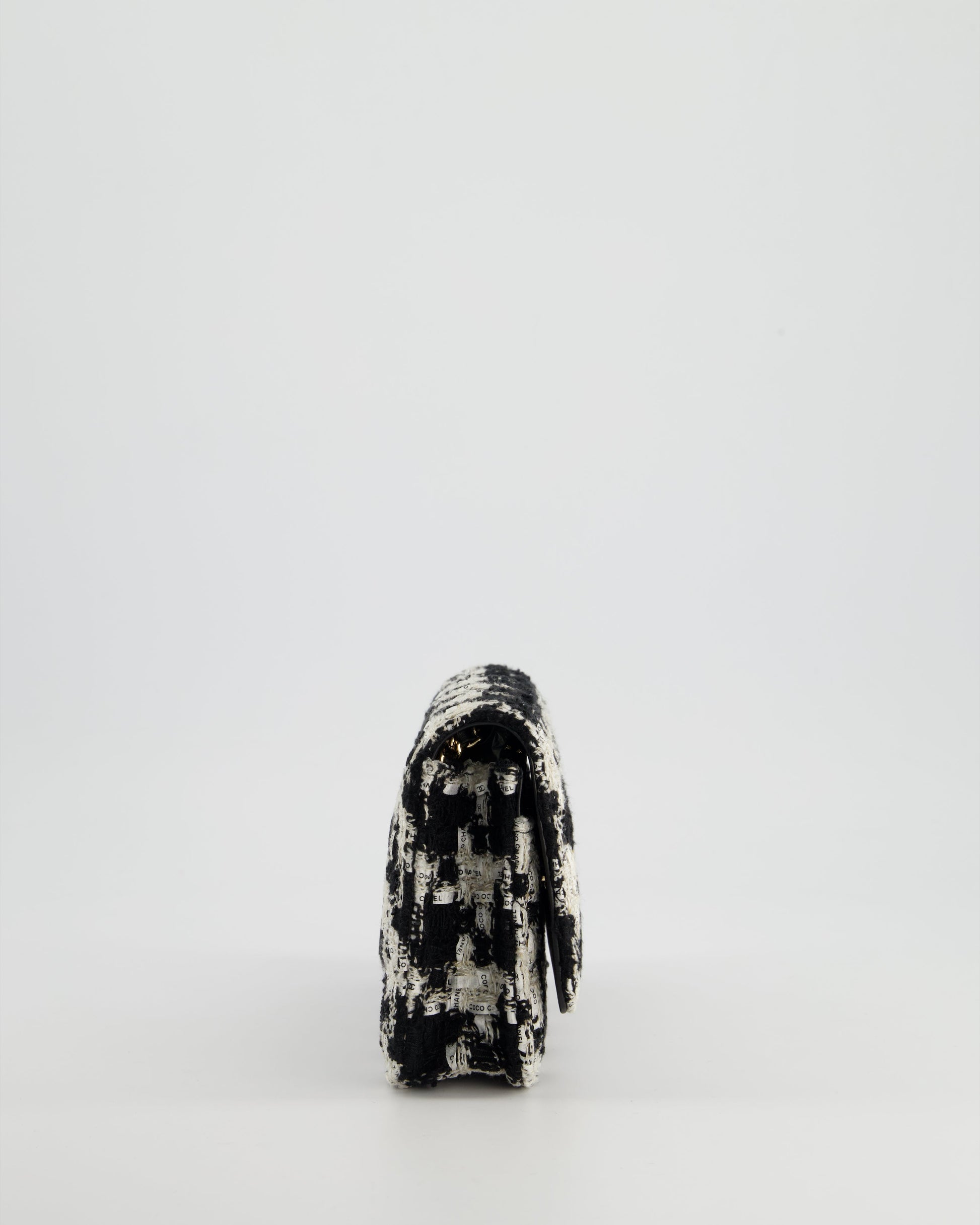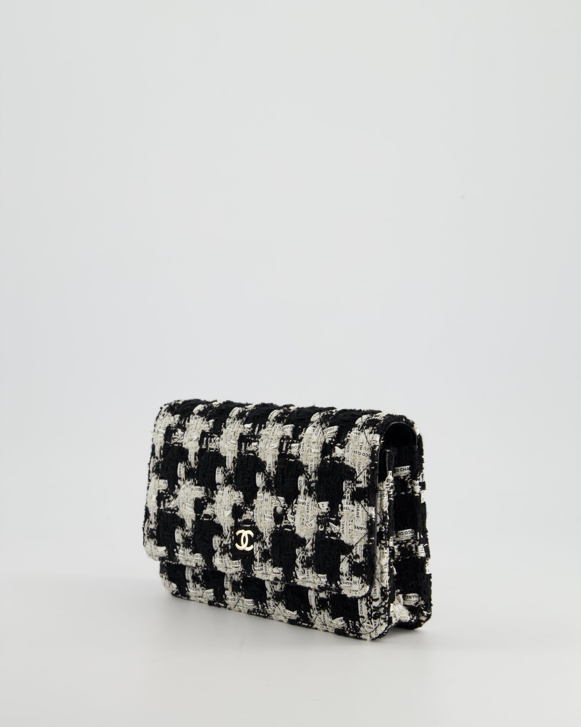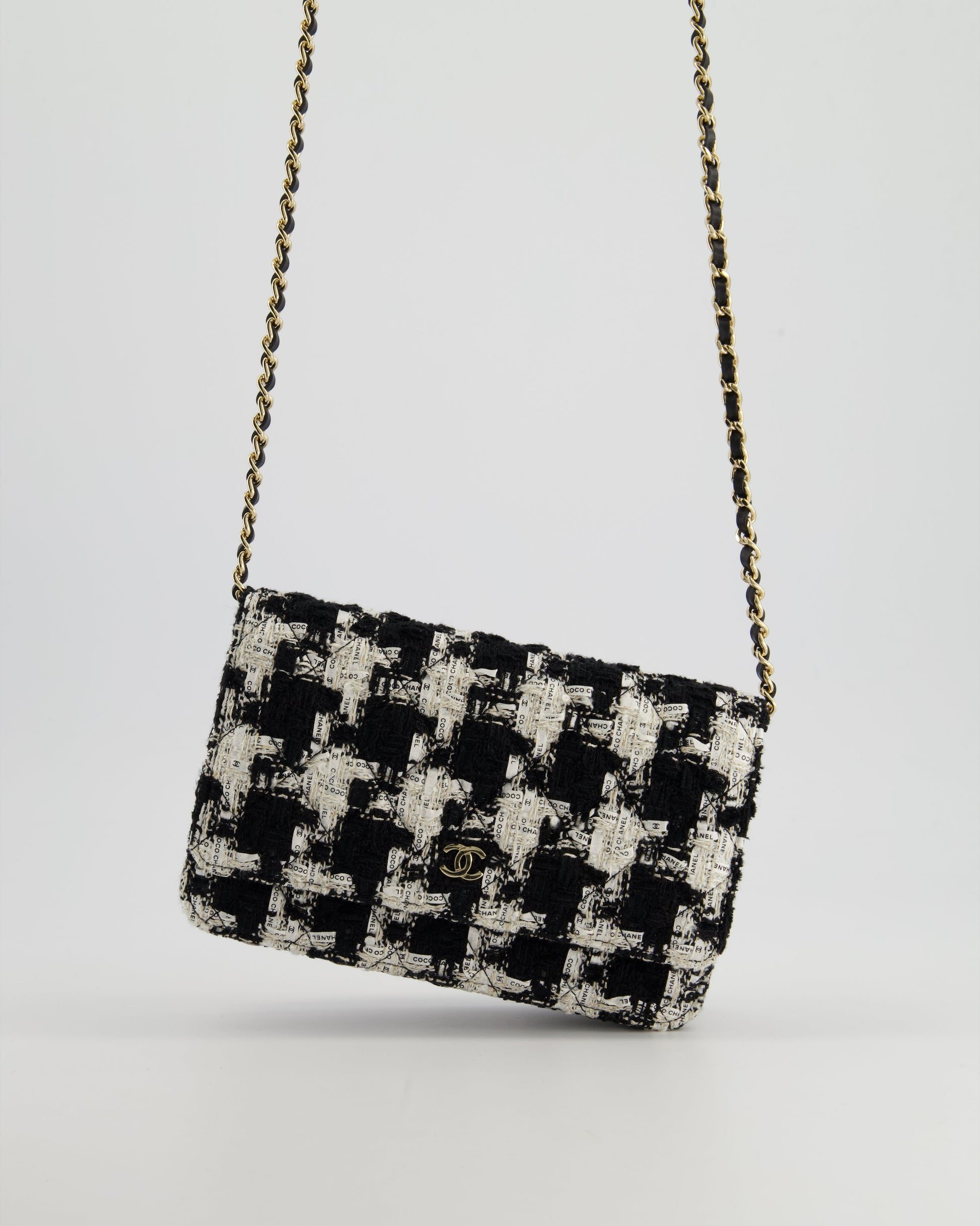 *HOT* Chanel Black & White Houndstooth Wallet on Chain Bag in Tweed with Champagne Gold Hardware