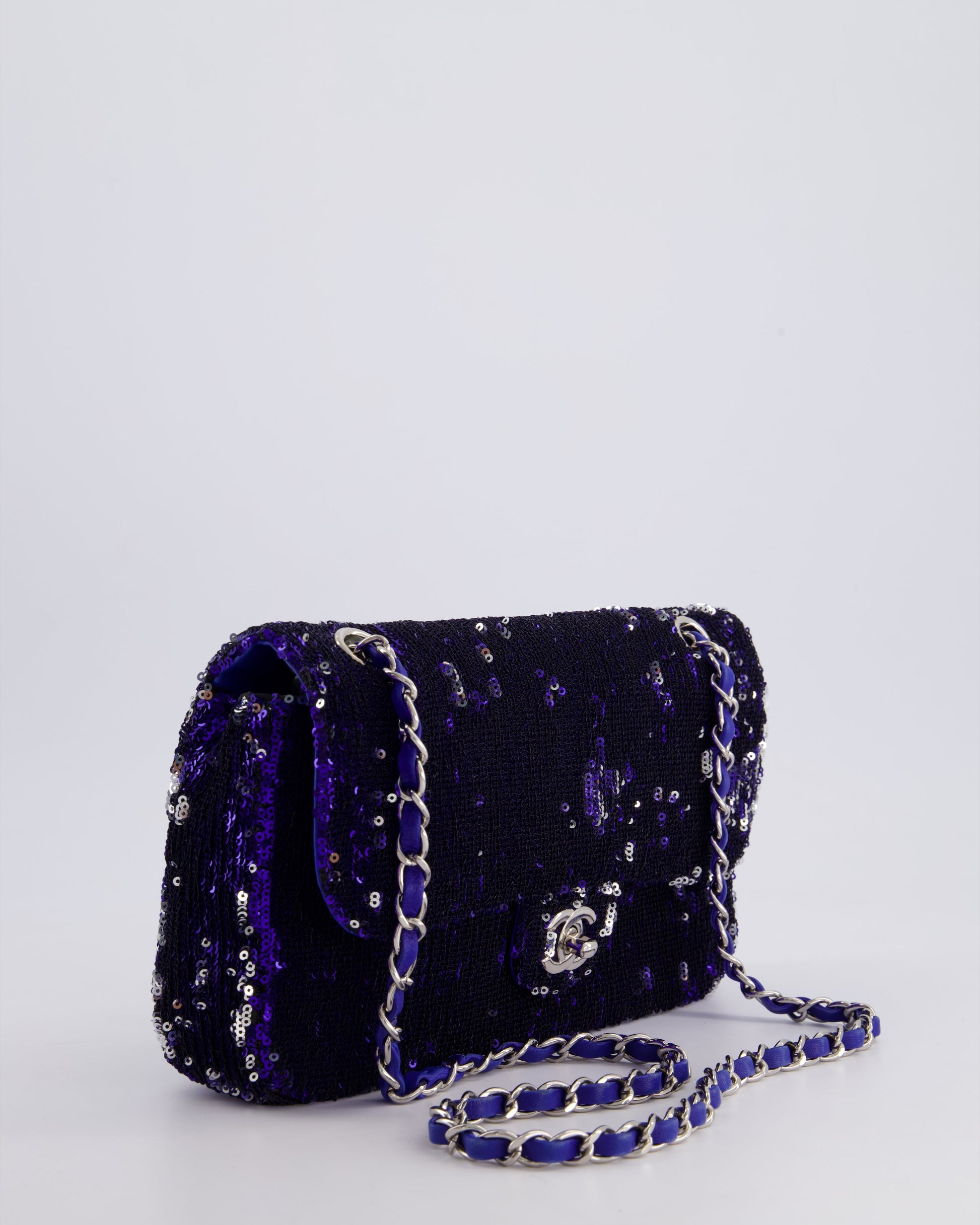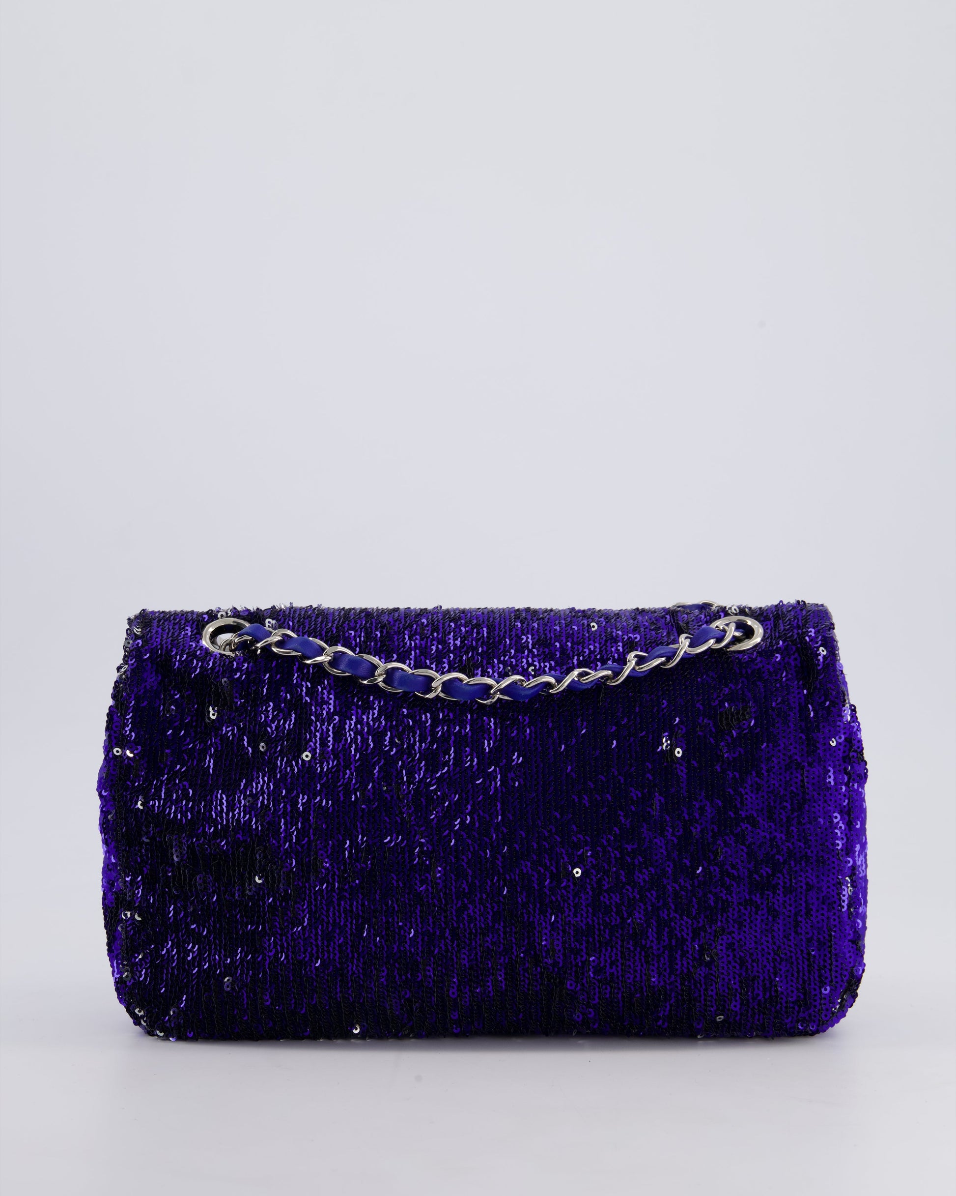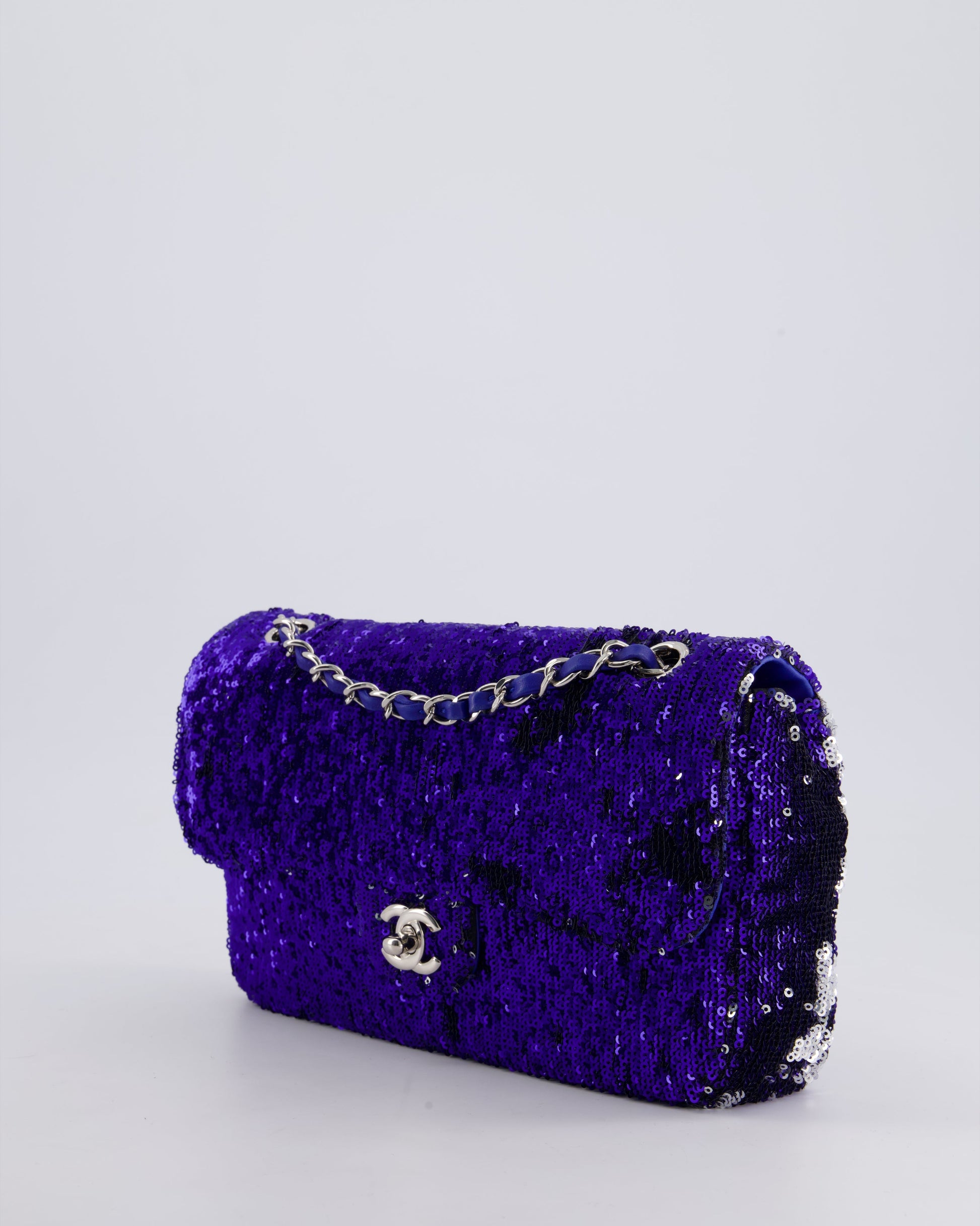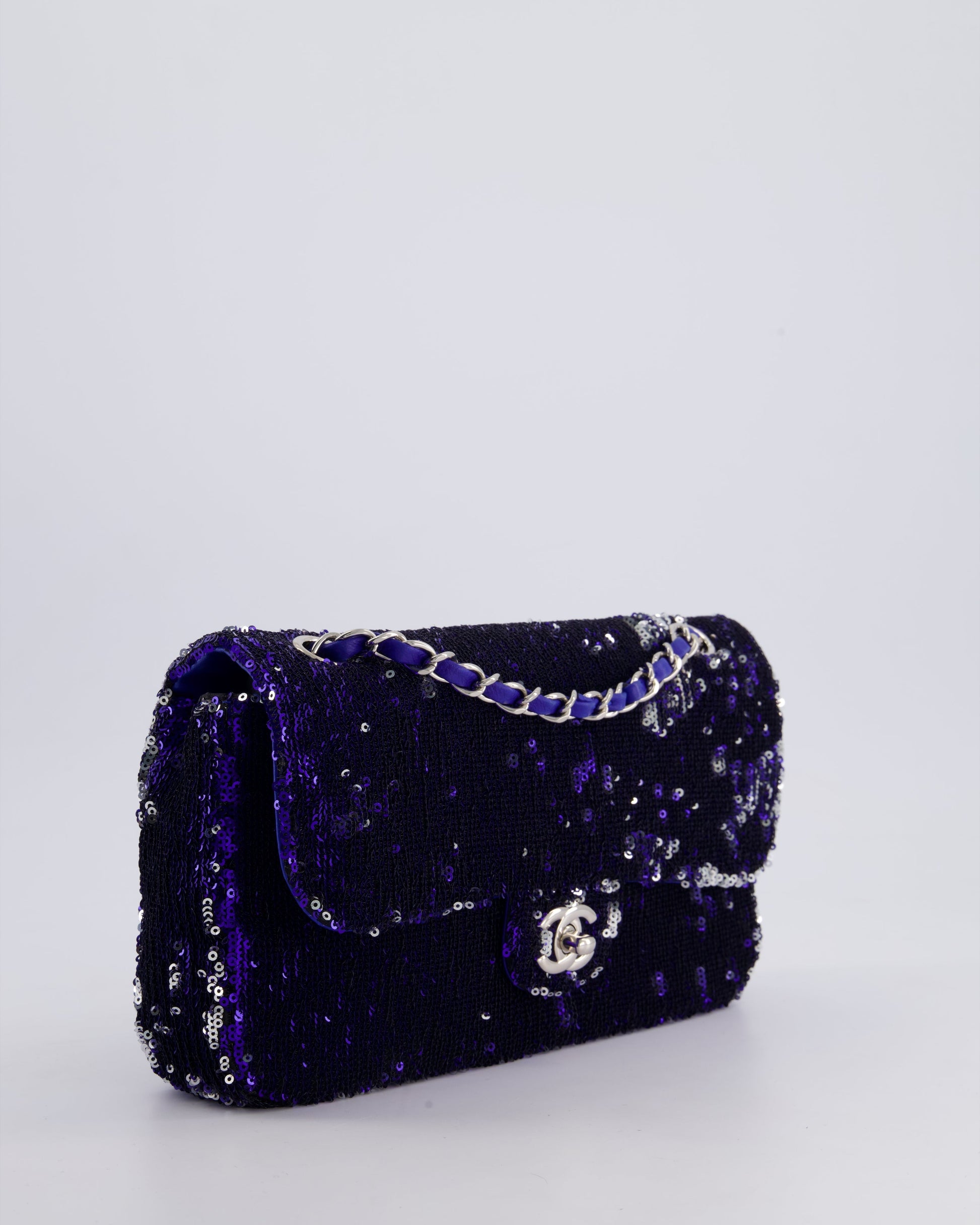 *HOT* Chanel Blue Sequin Medium Single Flap Bag with Silver Hardware