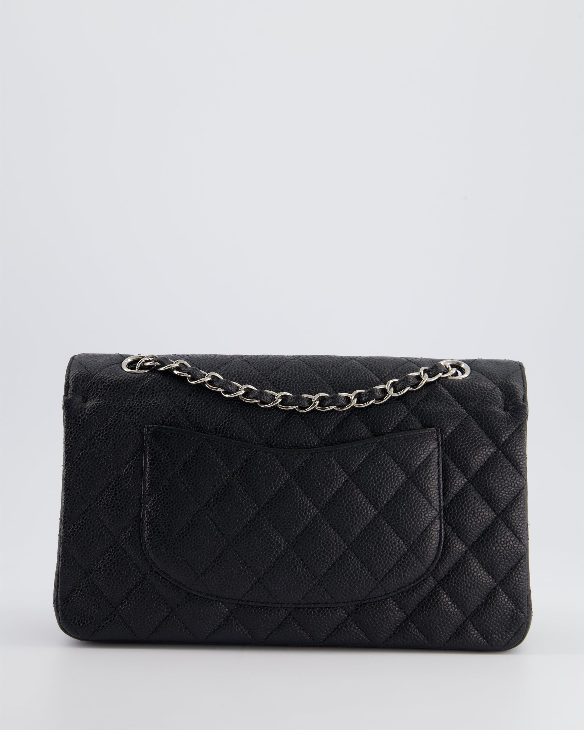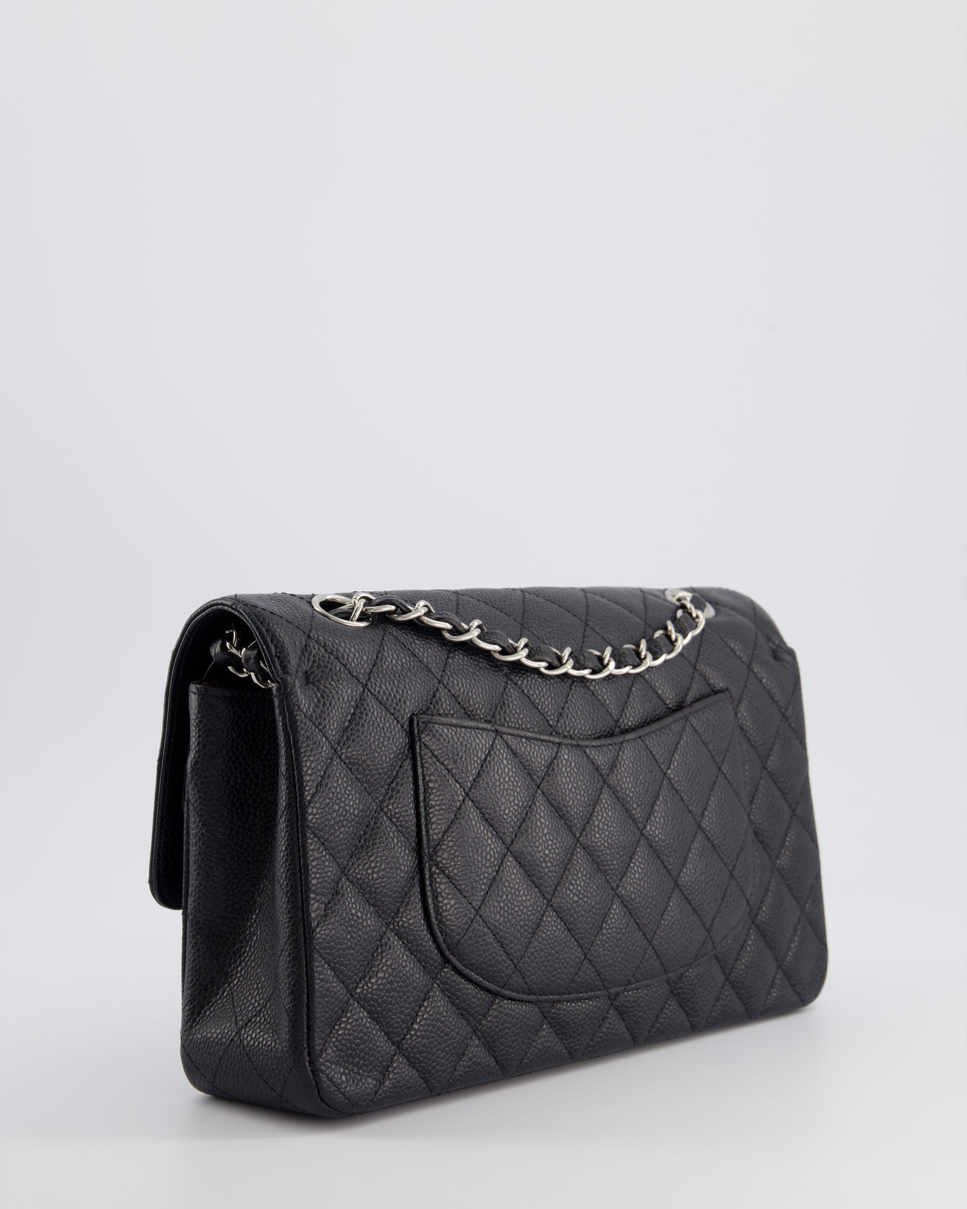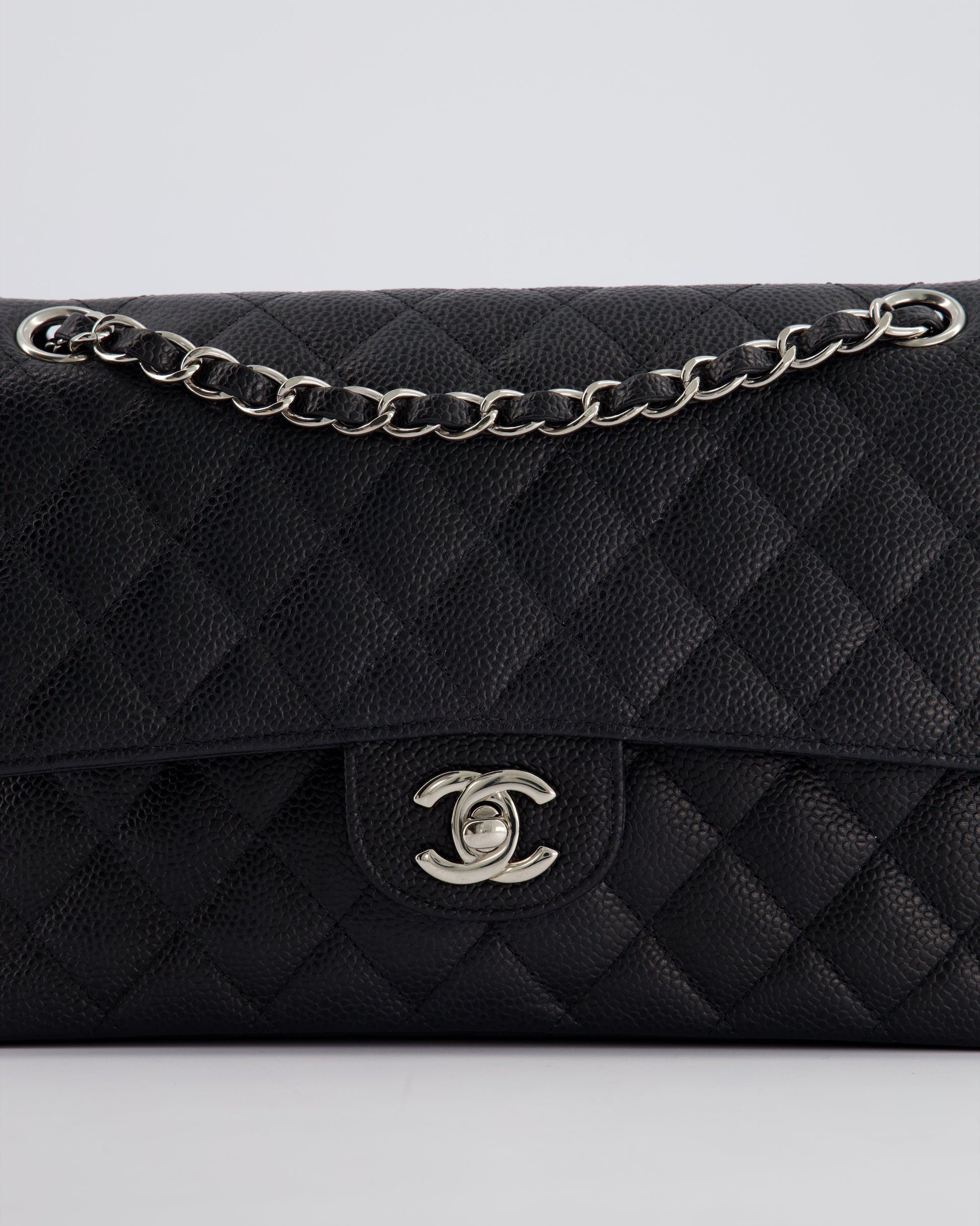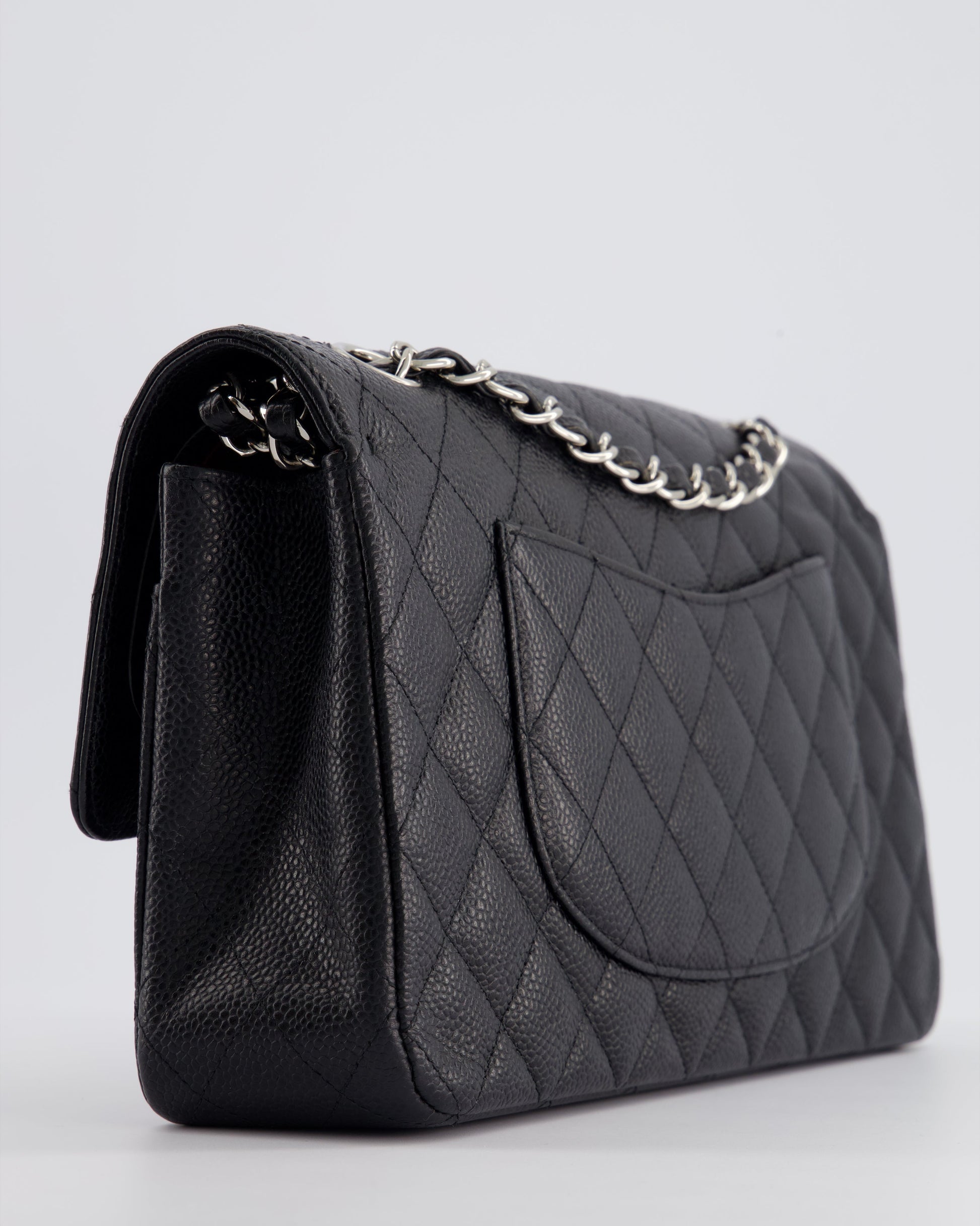 Chanel Medium Black Classic Double Flap Bag in Caviar Leather with Silver Hardware