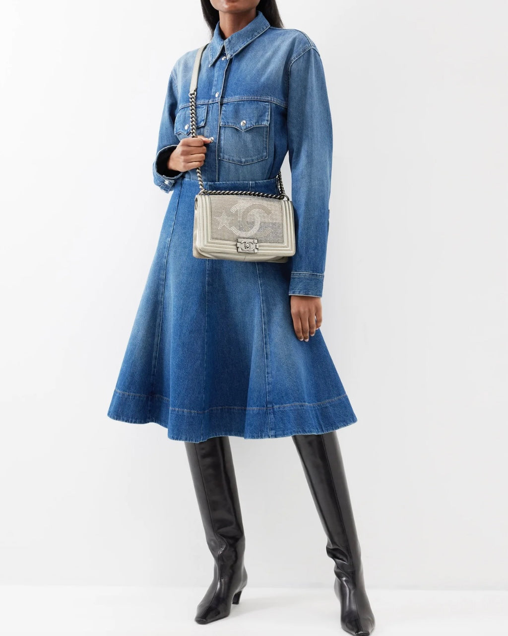 *HOT* Chanel Medium Boy Bag in Gold Metallic Sequin CC Star Print with Silver Hardware