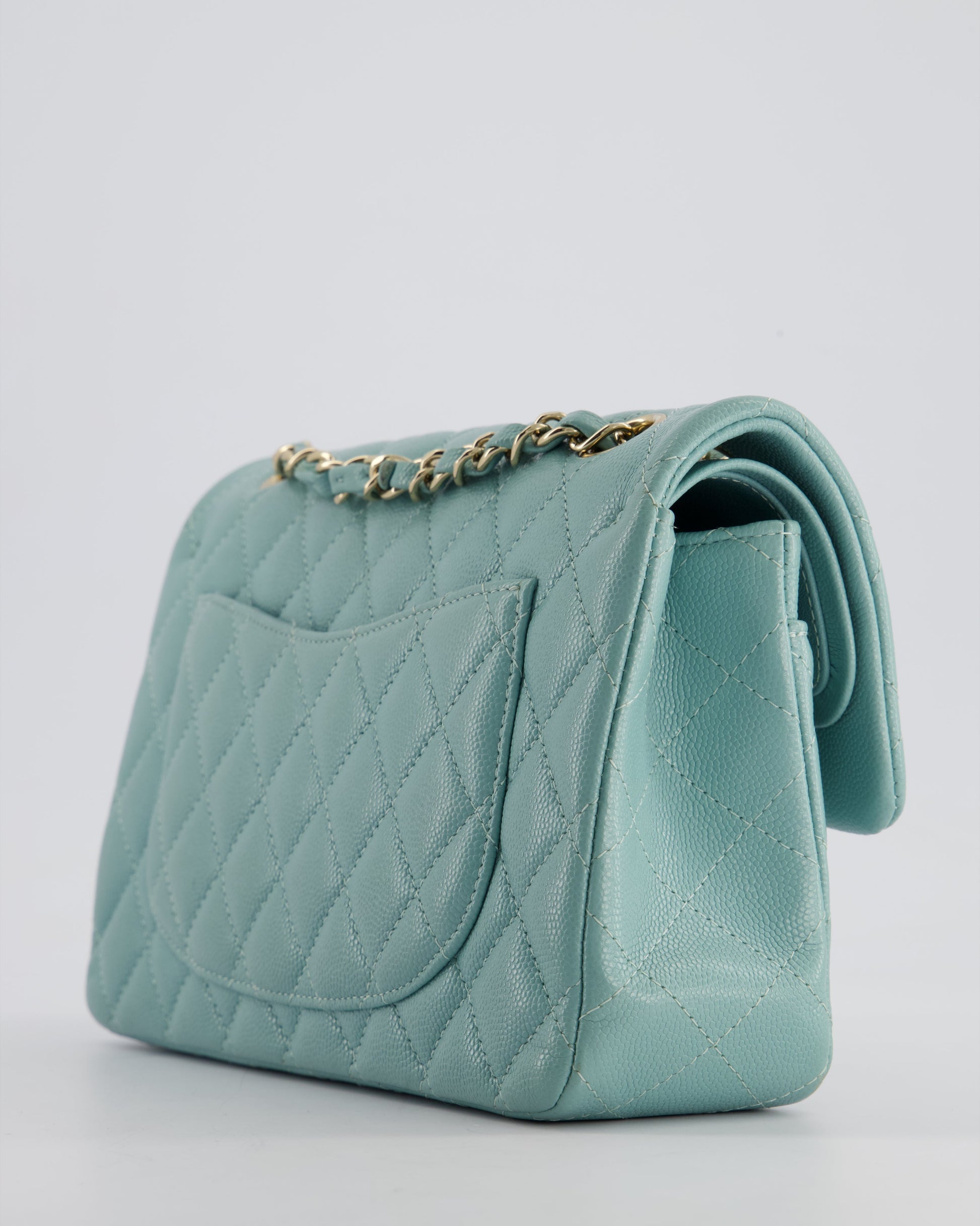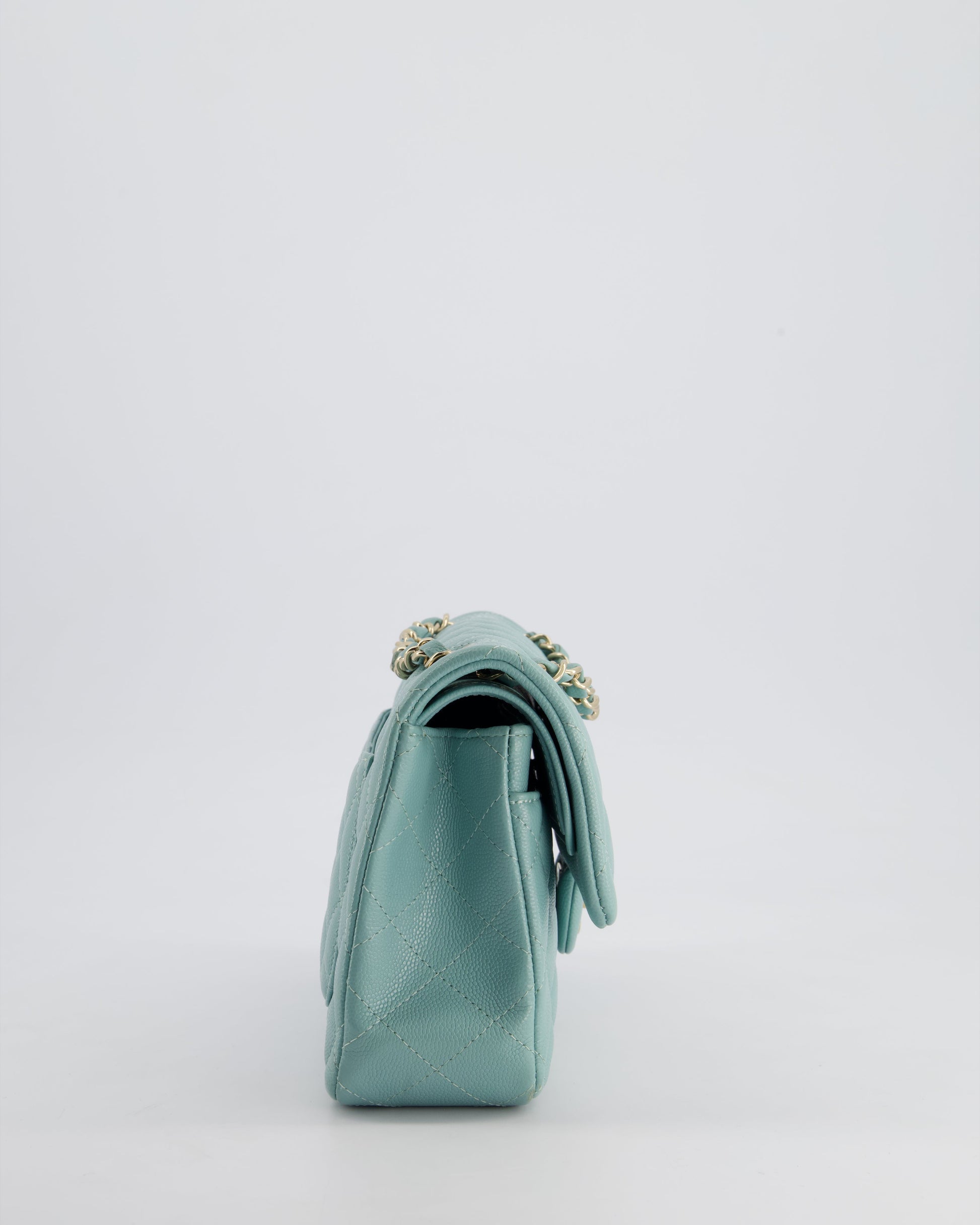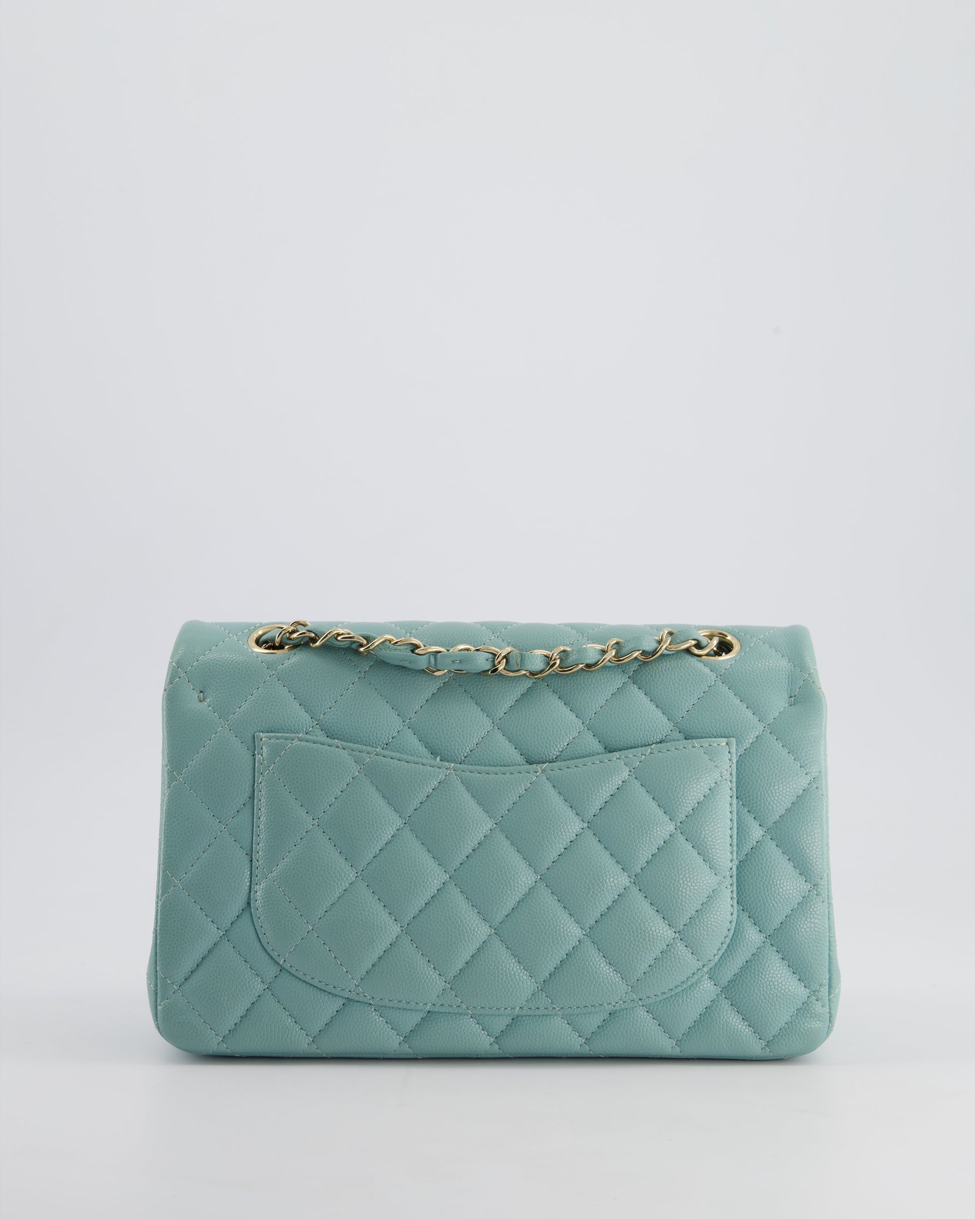 *HOT* Chanel Celeste Blue Small Classic Double Flap Bag in Caviar Leather with Champagne Gold Hardware