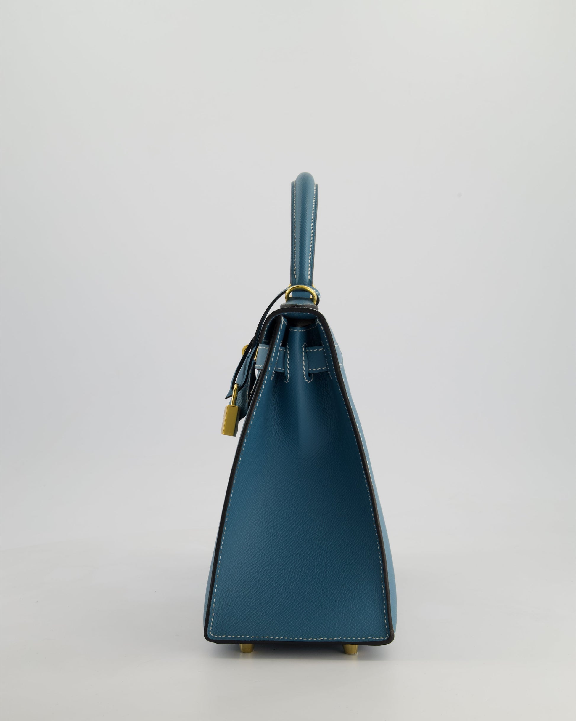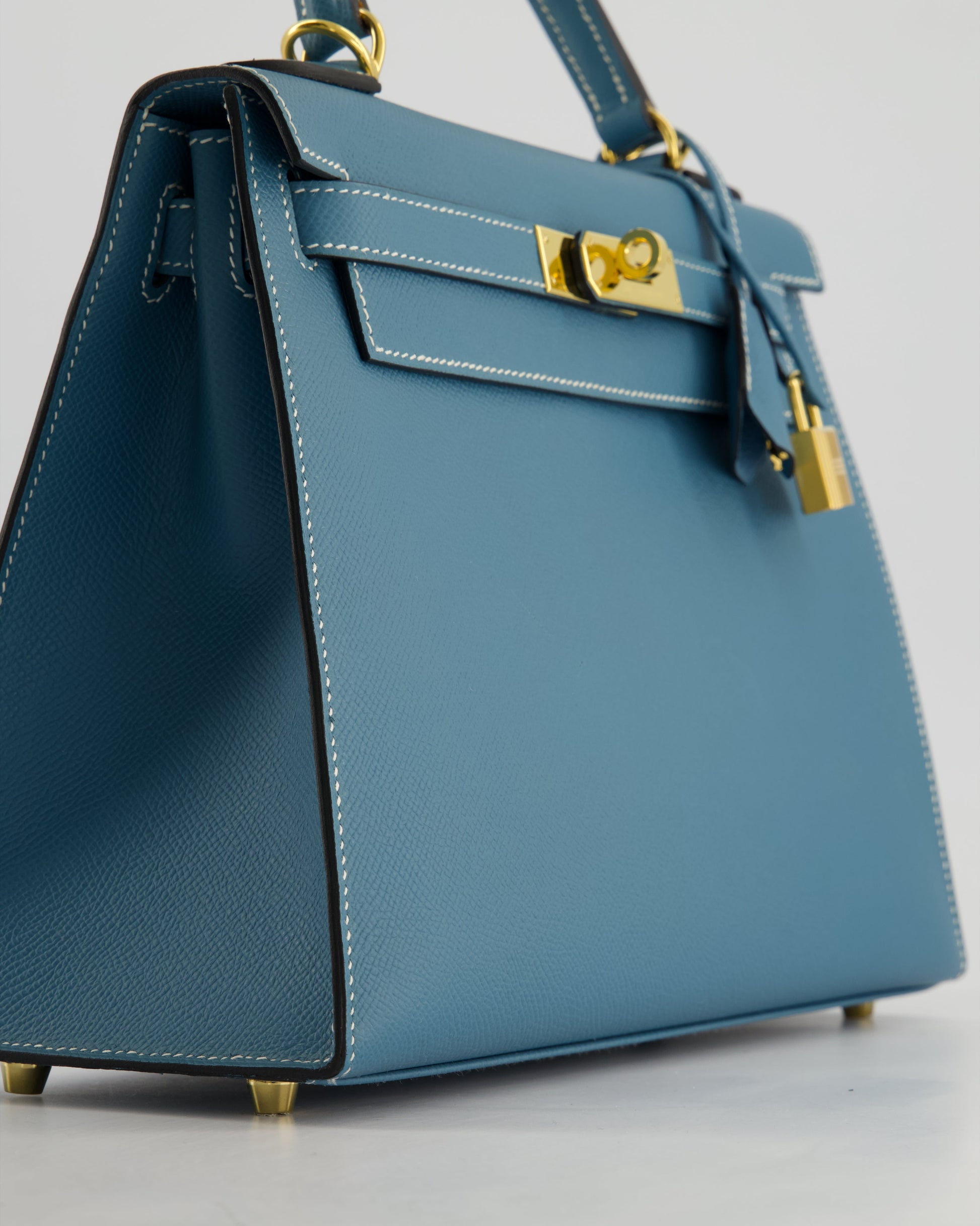 *HOT* Hermès Kelly 28cm Sellier Bag in Blue Jean Epsom Leather with Gold Hardware