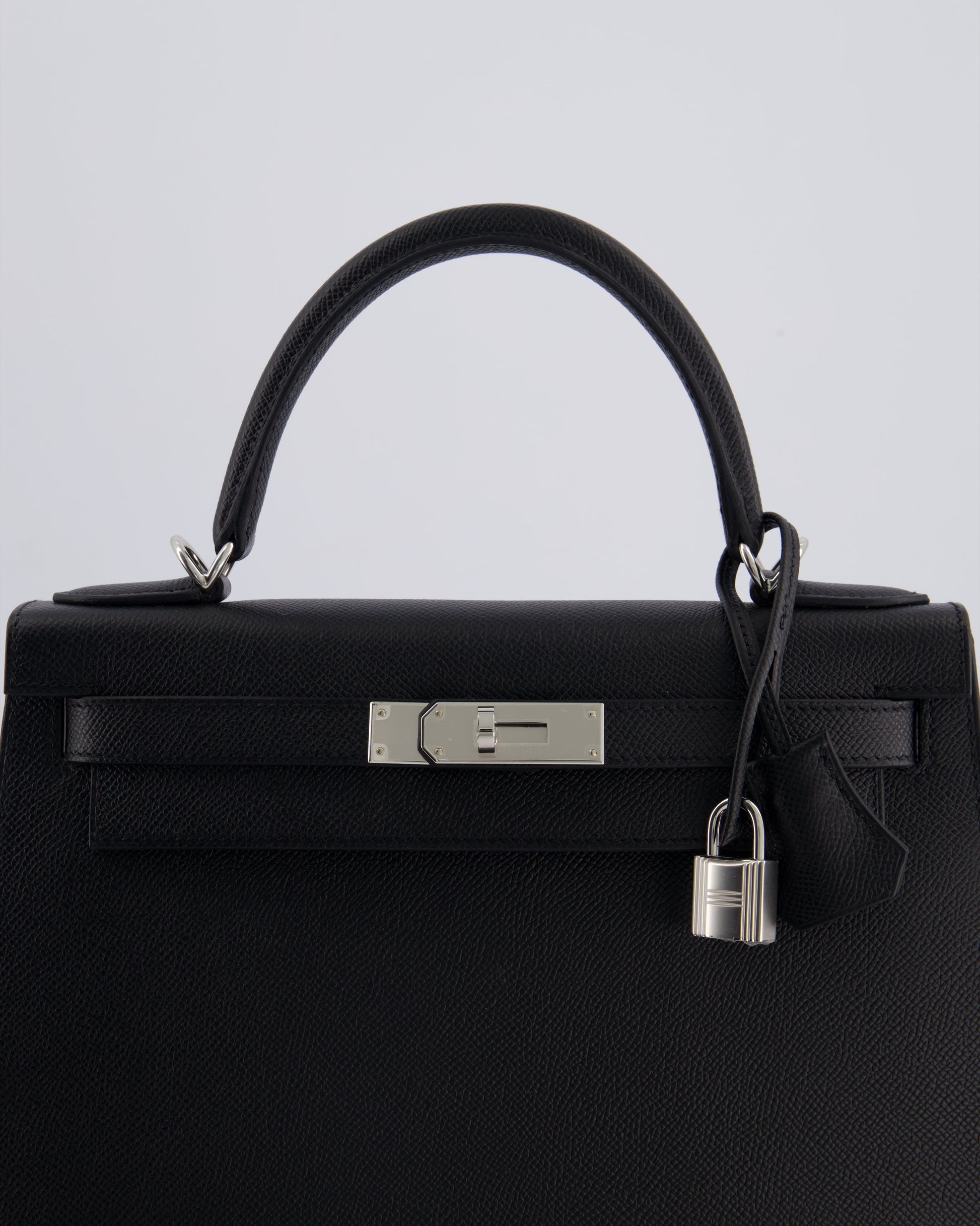 *HOT* Hermès Kelly Sellier 28cm Bag in Noir Epsom Leather with Palladium Hardware