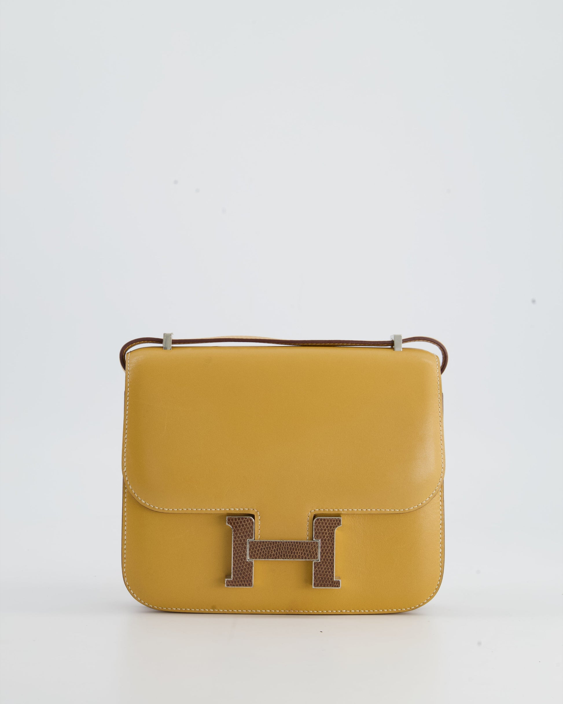 *FIRE PRICE* Hermès Mini Constance Bag 18cm in Paille Swift Leather with Palladium and Lizard Hardware