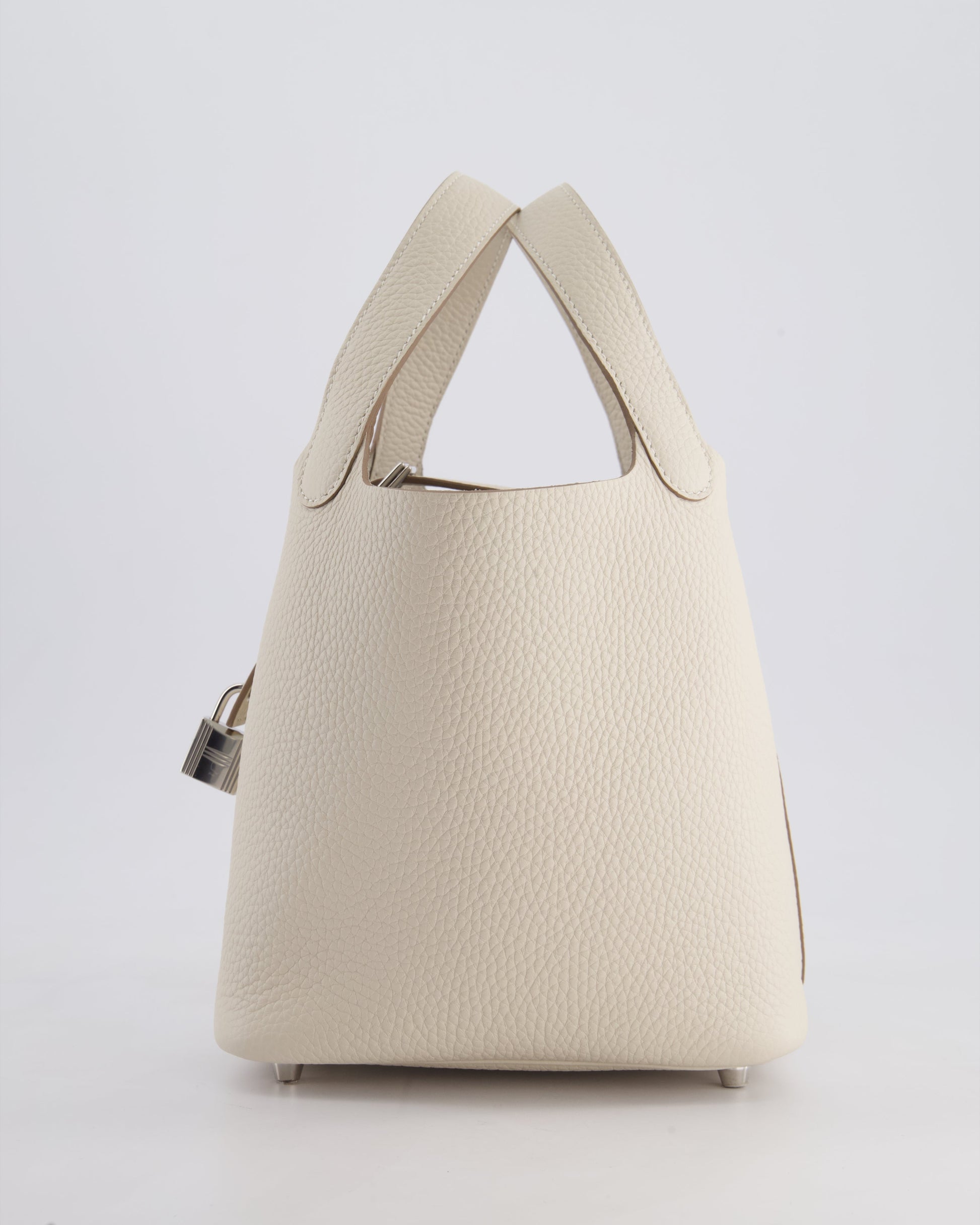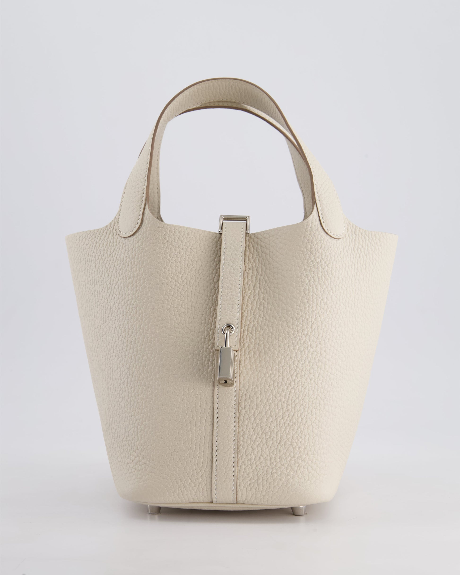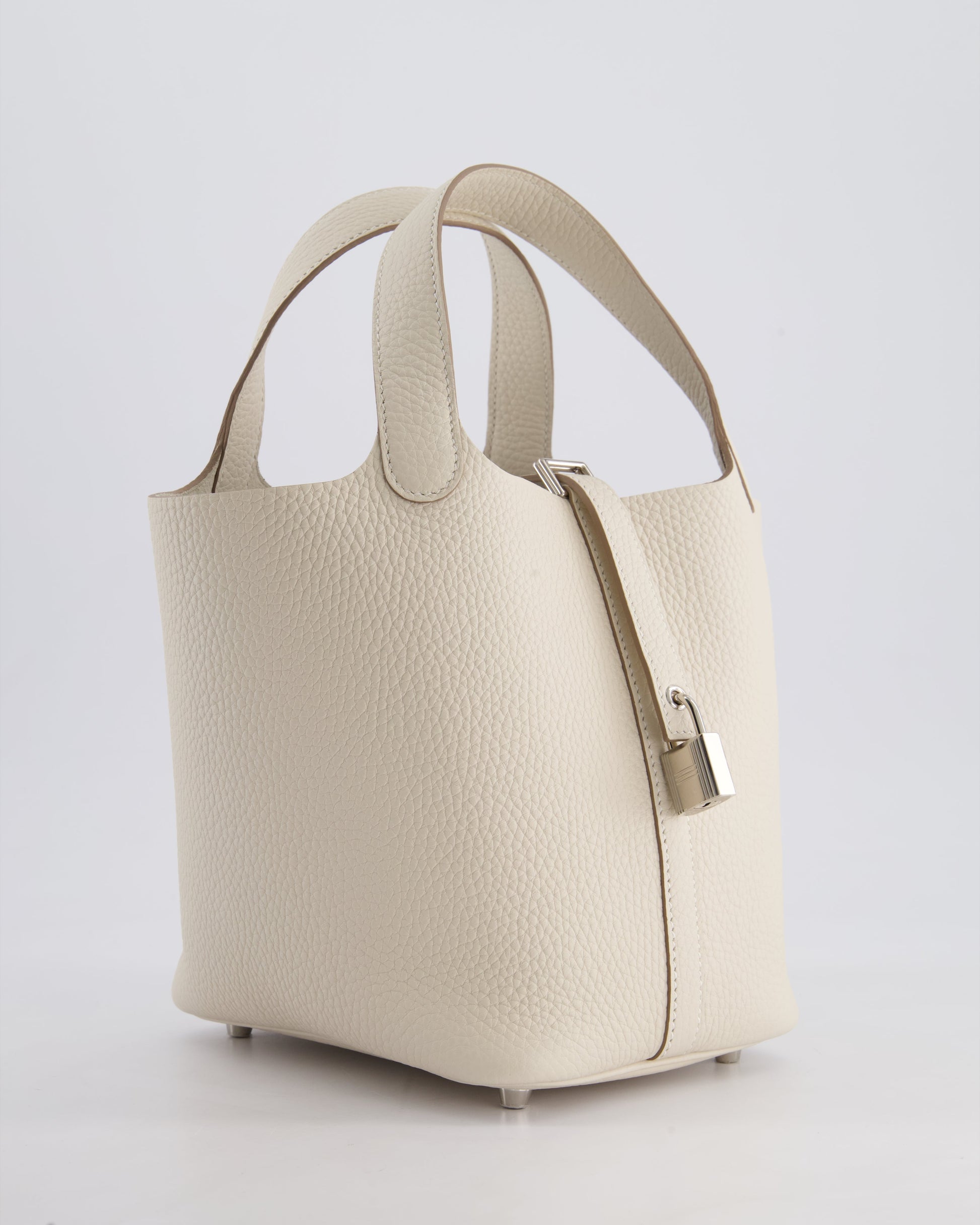 *HOT* Hermès Picotin Lock Bag 18cm in Craie Clemence Leather with Palladium Hardware