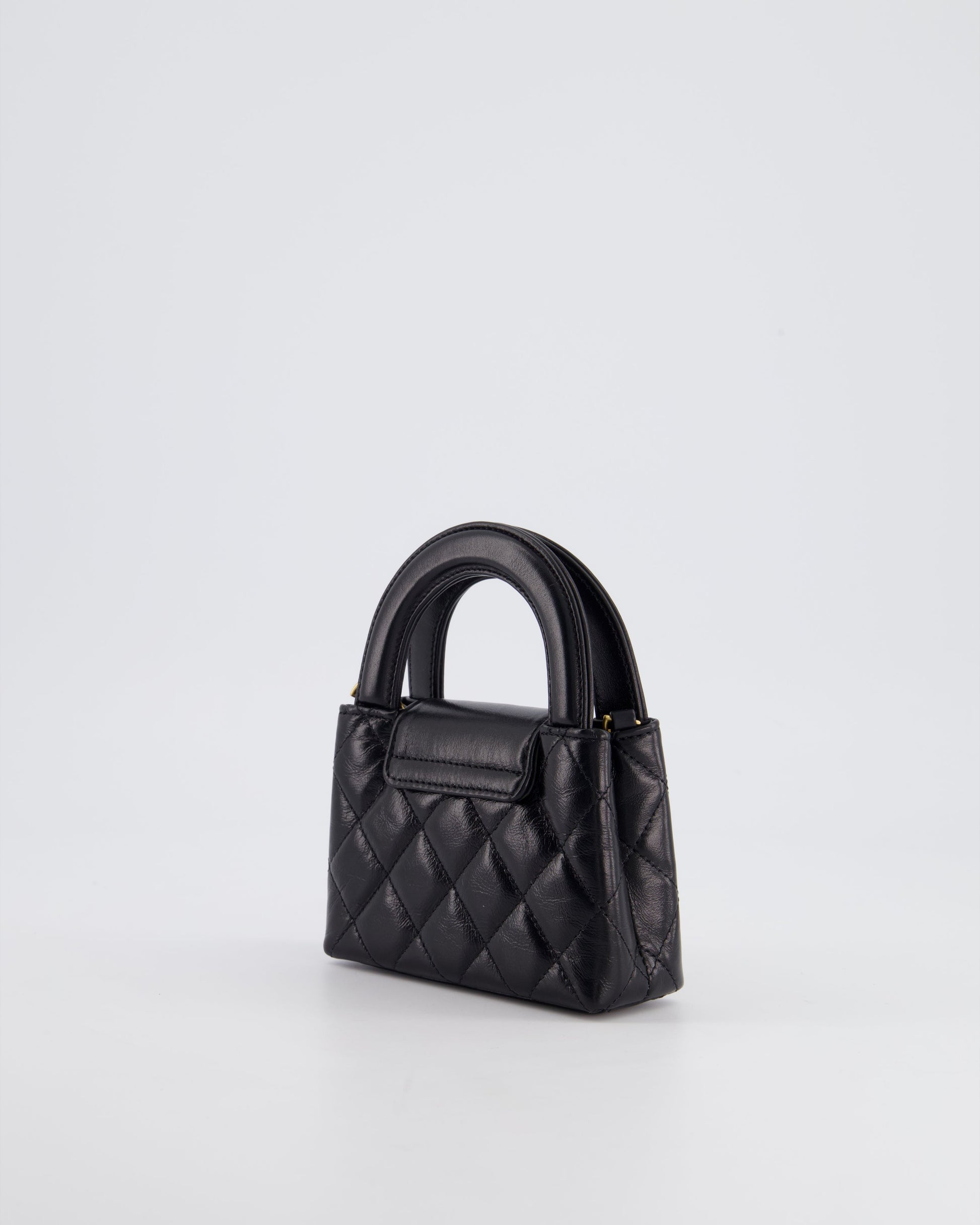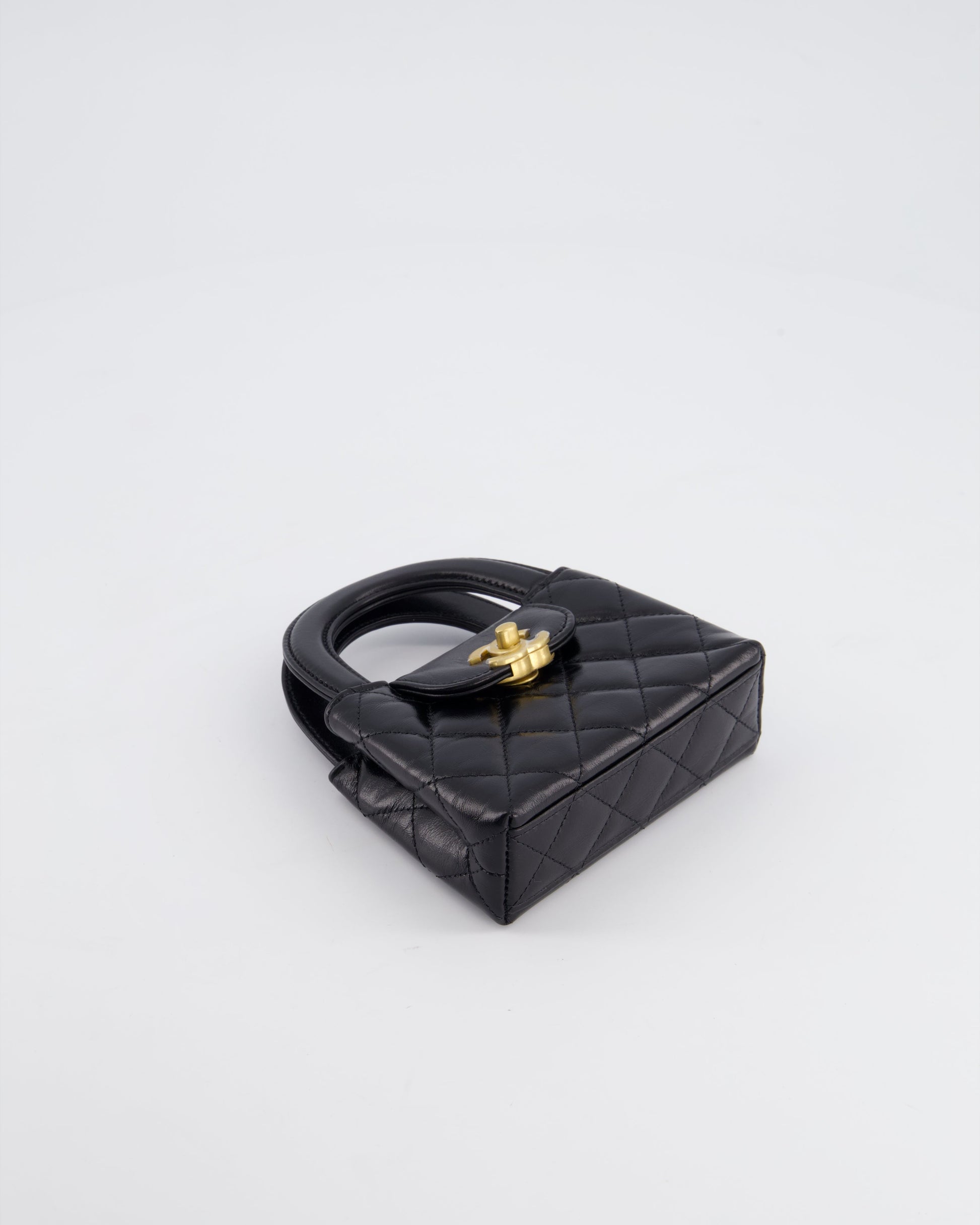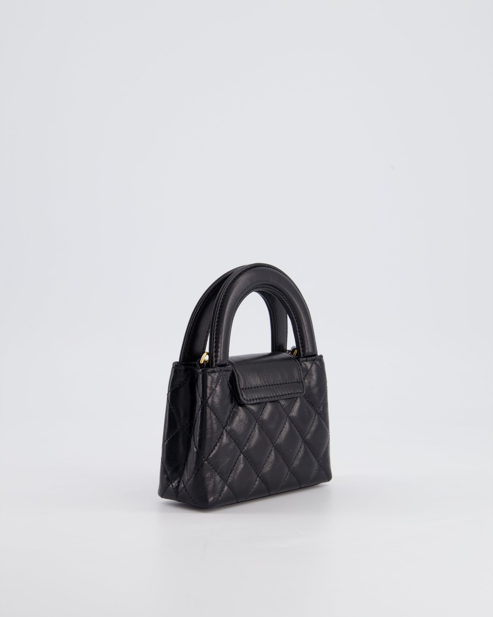 *HOT & RARE* Chanel Black Nano Kelly Shopping Bag in Calfskin Leather with Brushed Antique Gold Hardware