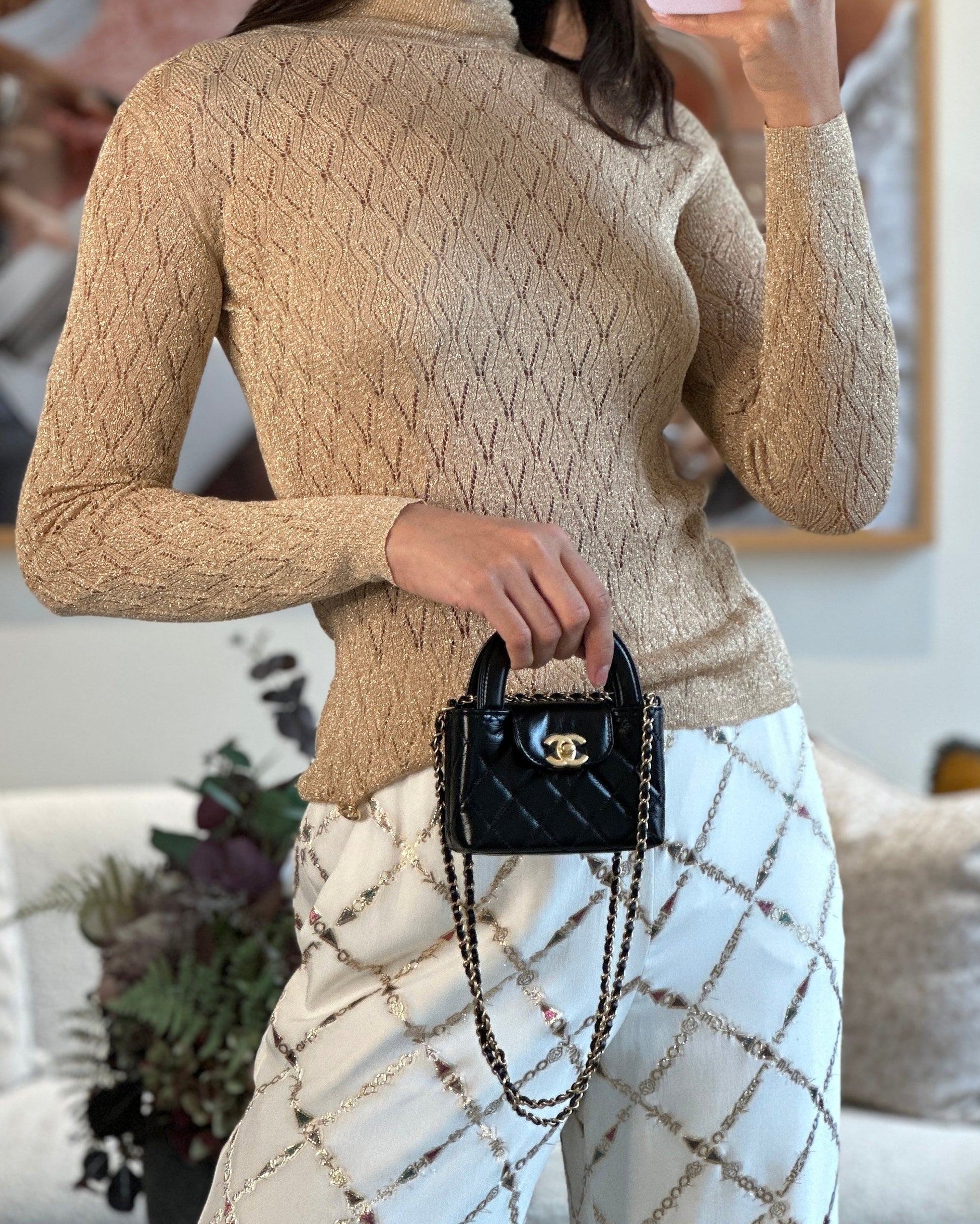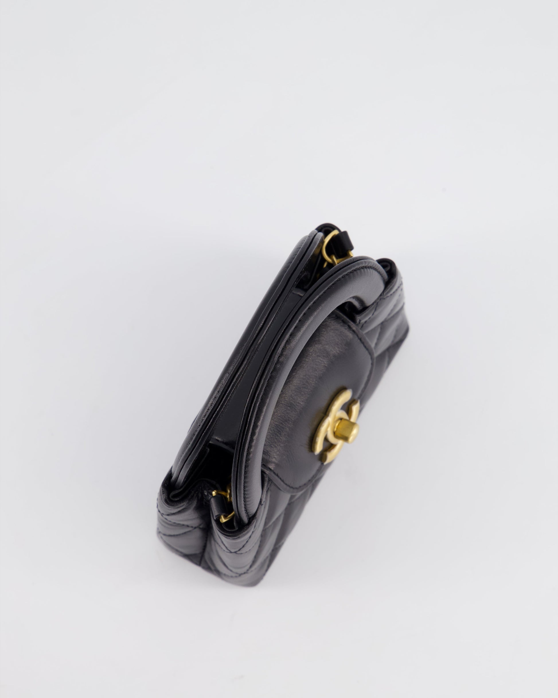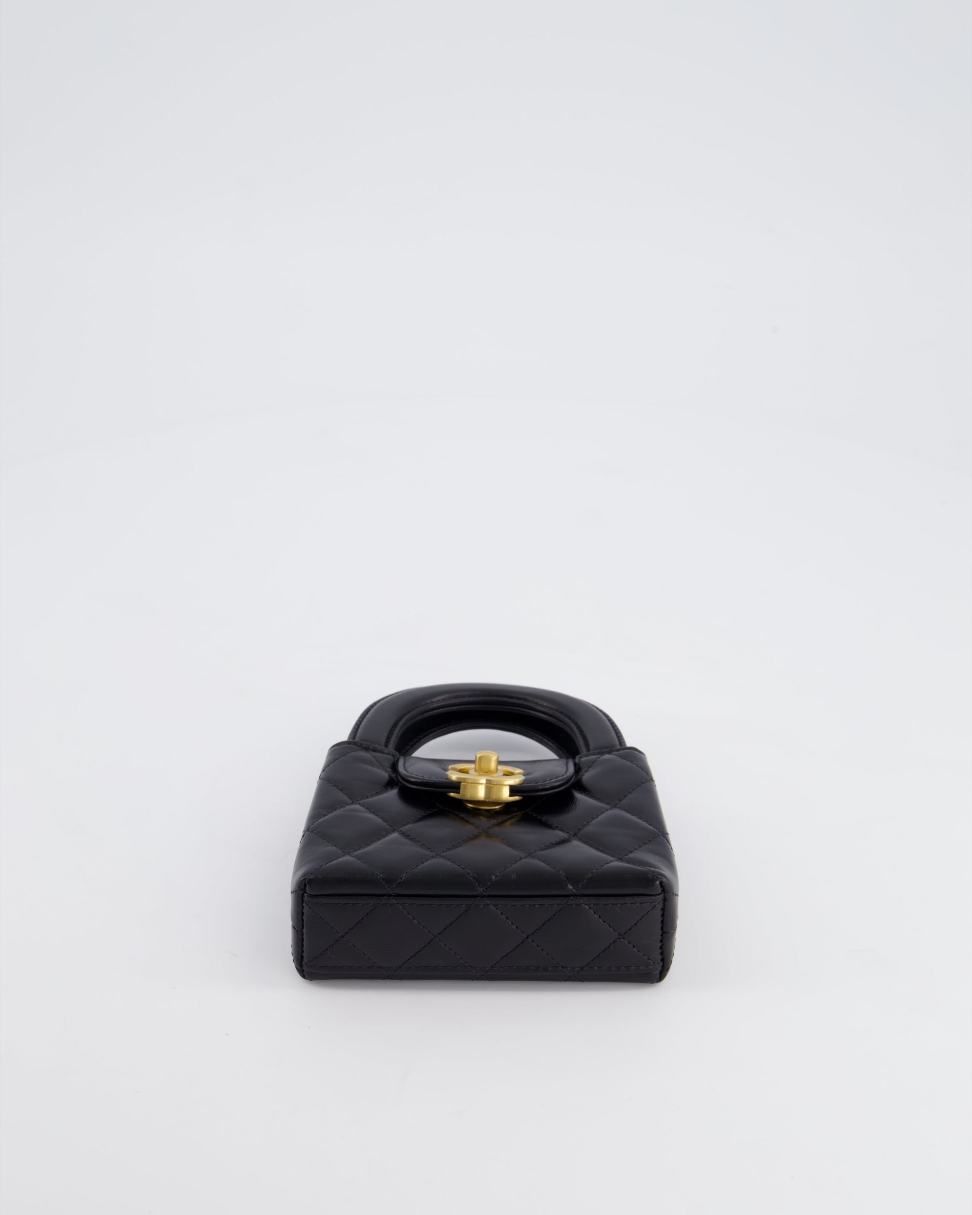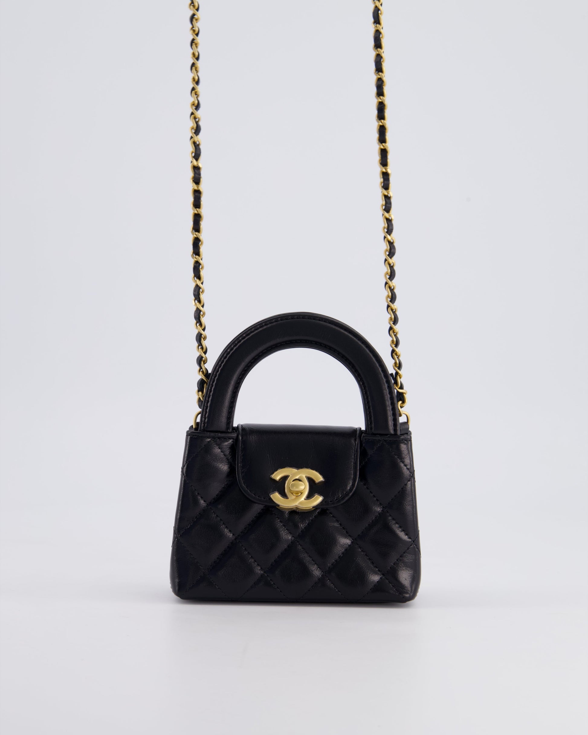 *HOT & RARE* Chanel Black Nano Kelly Shopping Bag in Calfskin Leather with Brushed Antique Gold Hardware