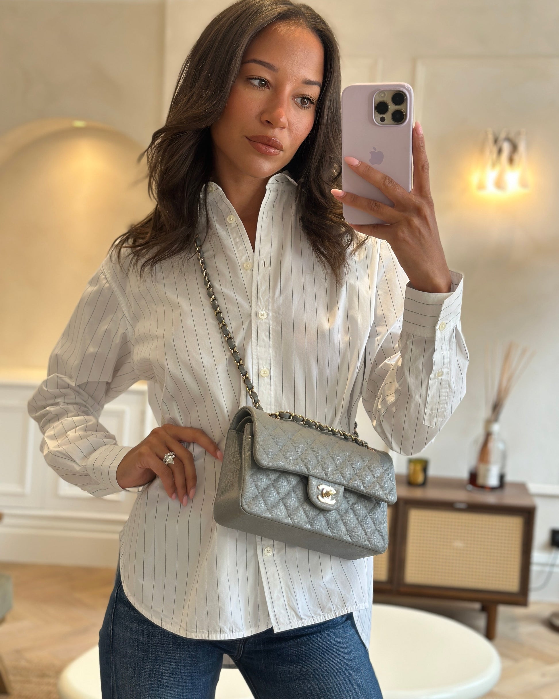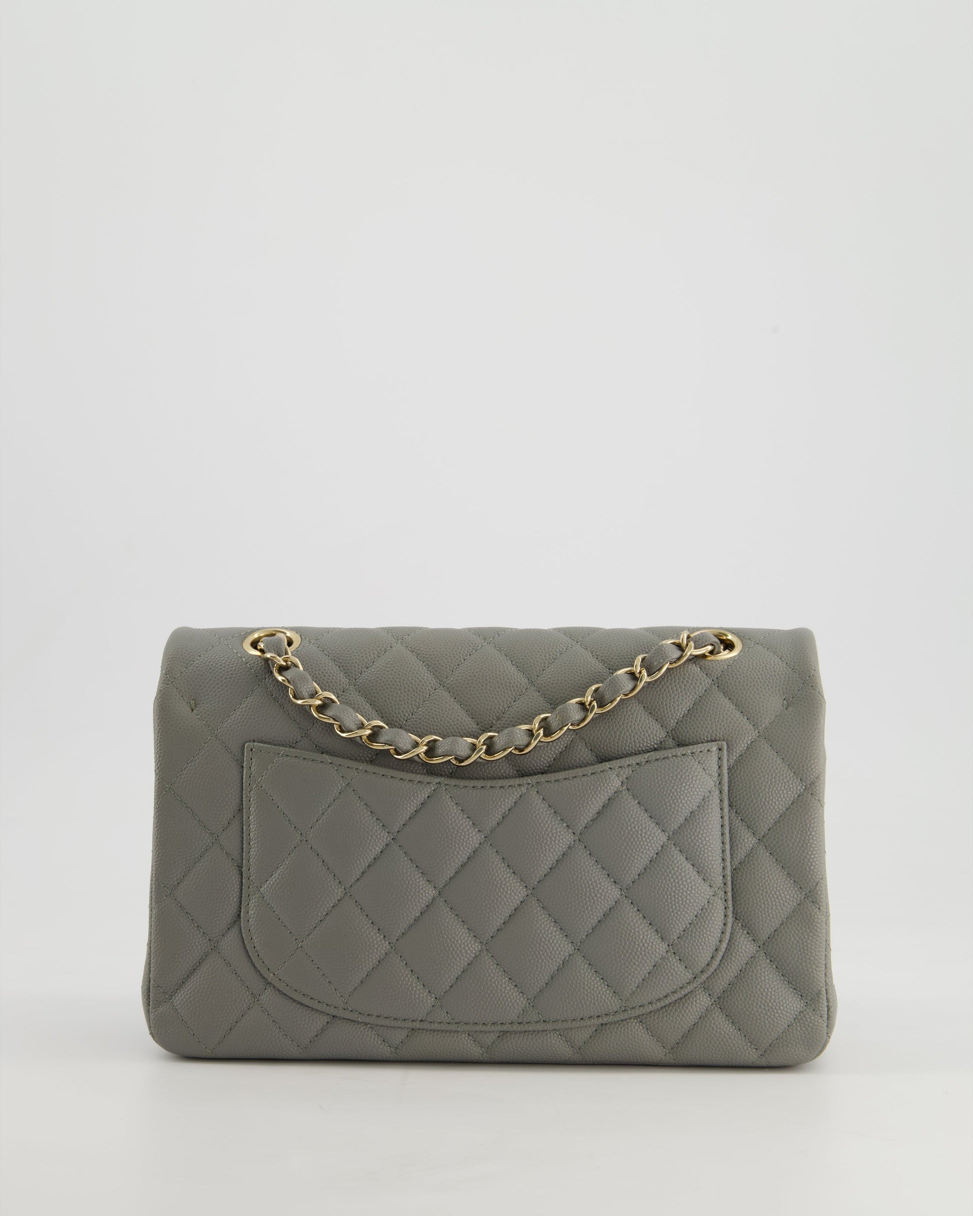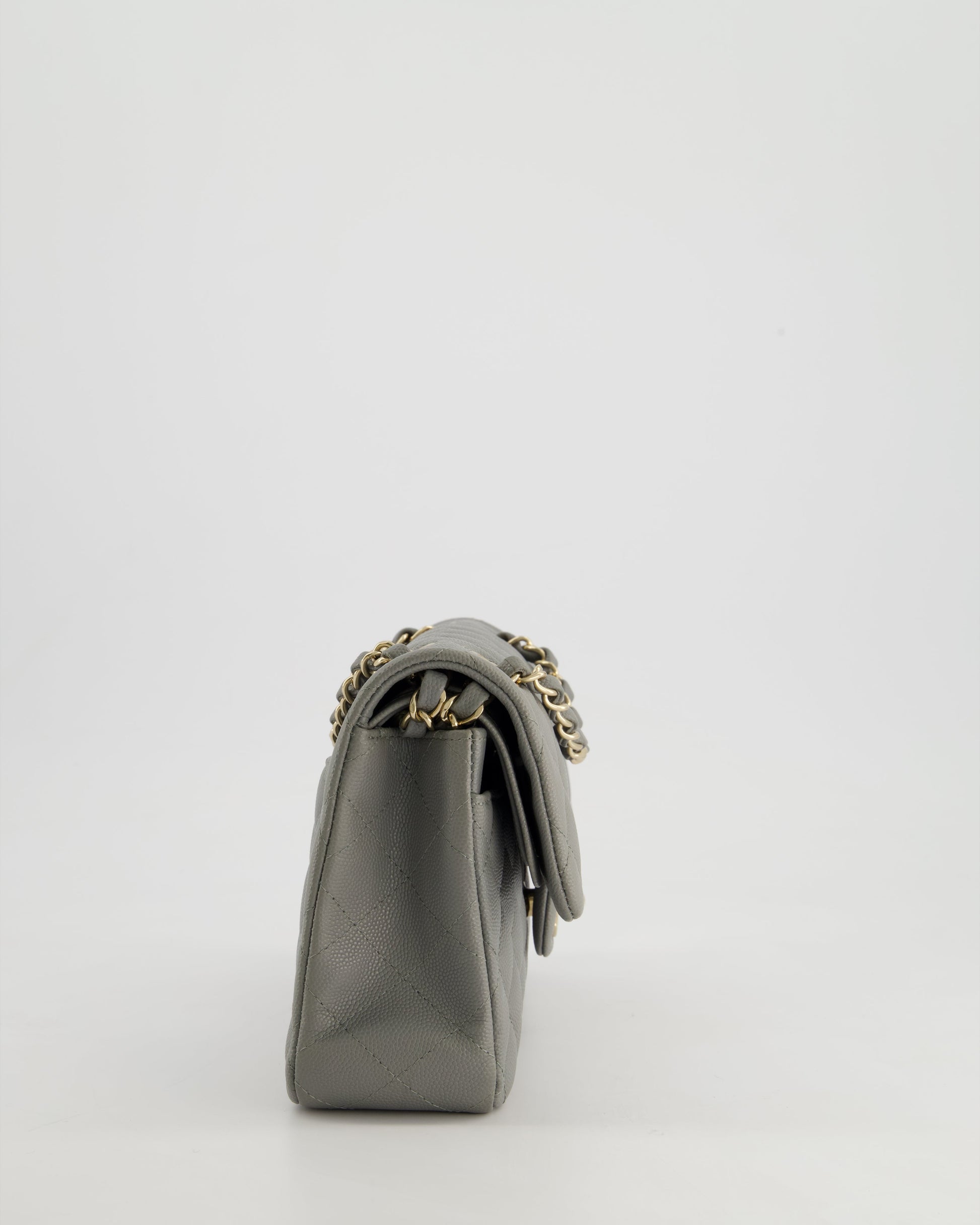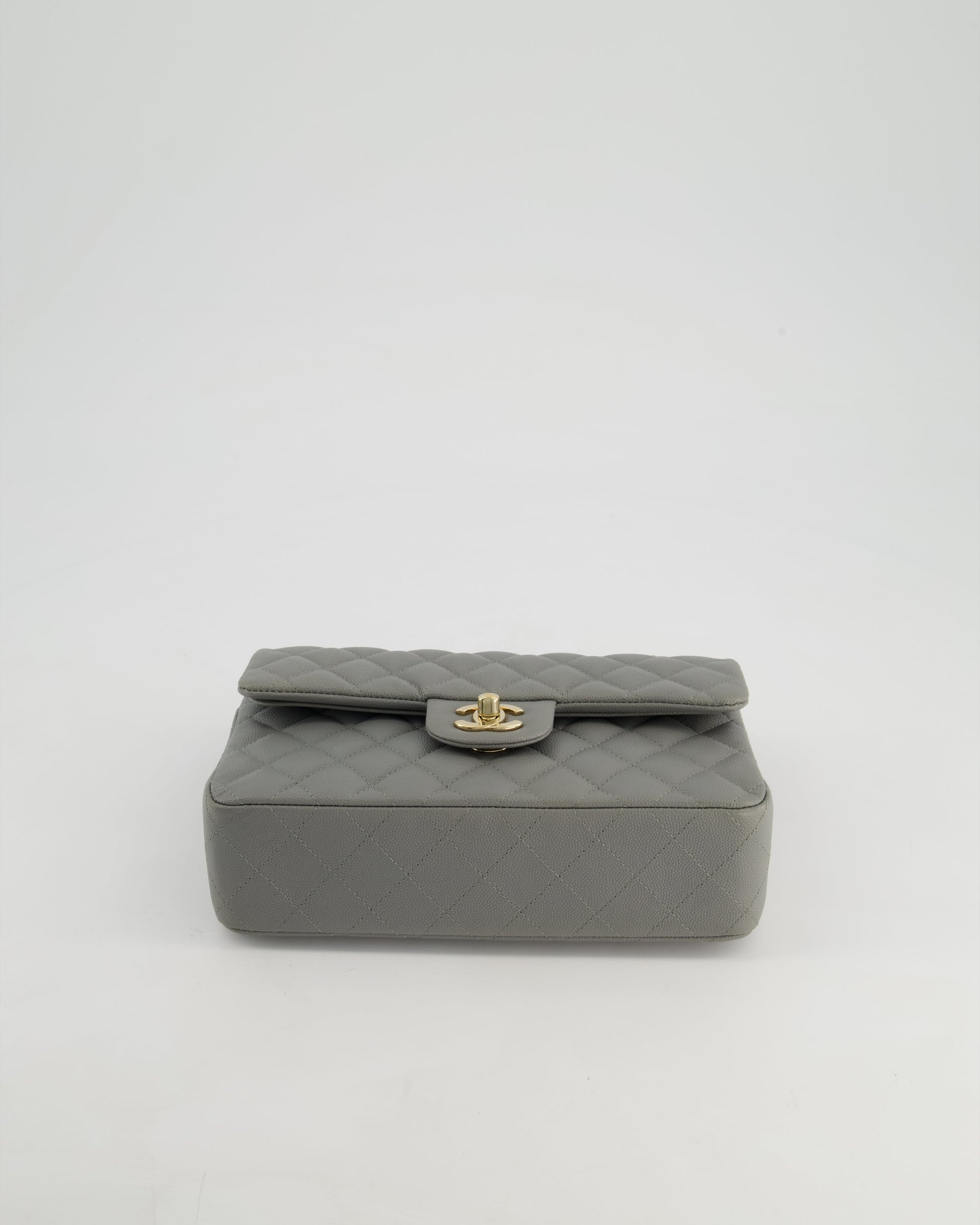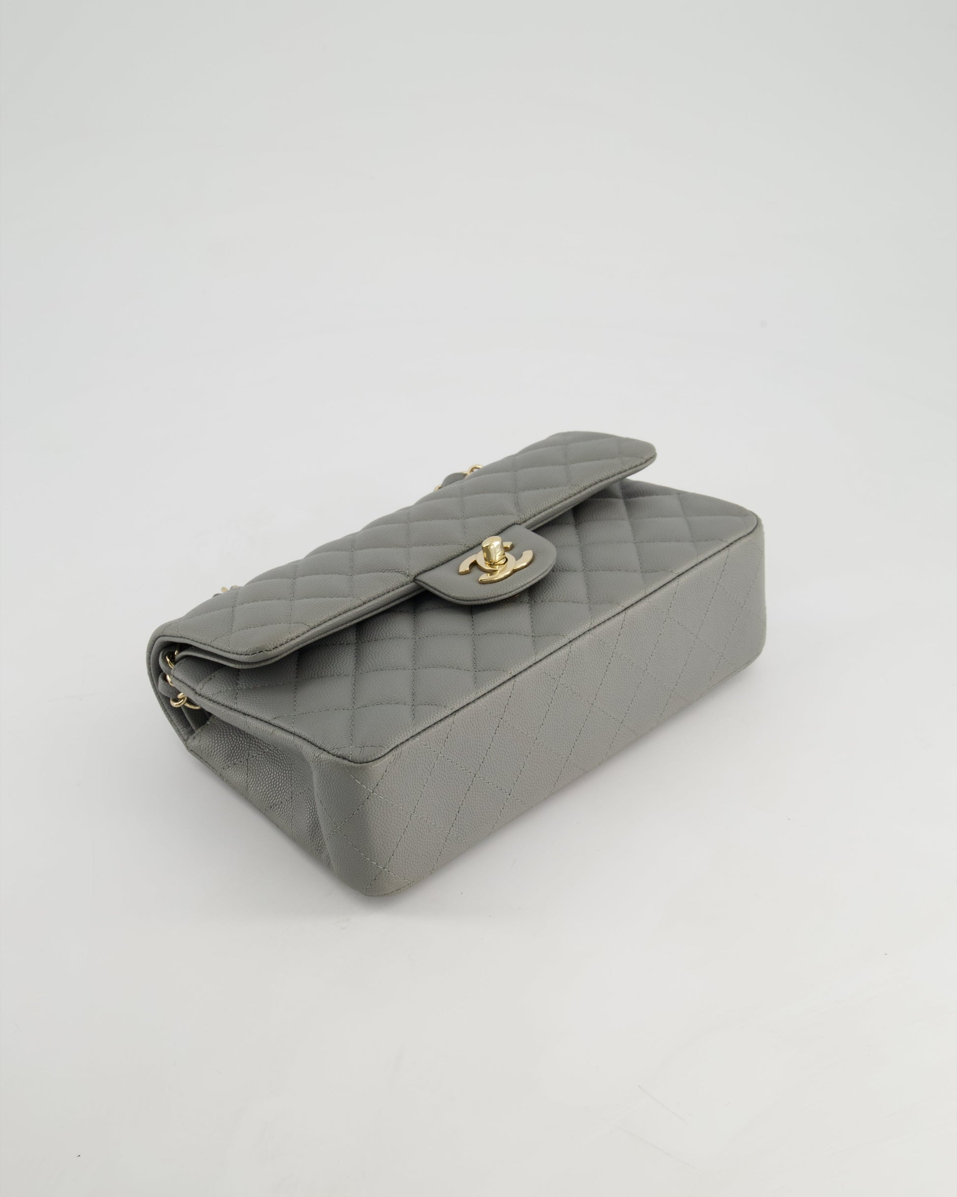 *HOT & RARE* Chanel Stone Grey Small Classic Double Flap Bag in Caviar Leather with Champagne Gold Hardware